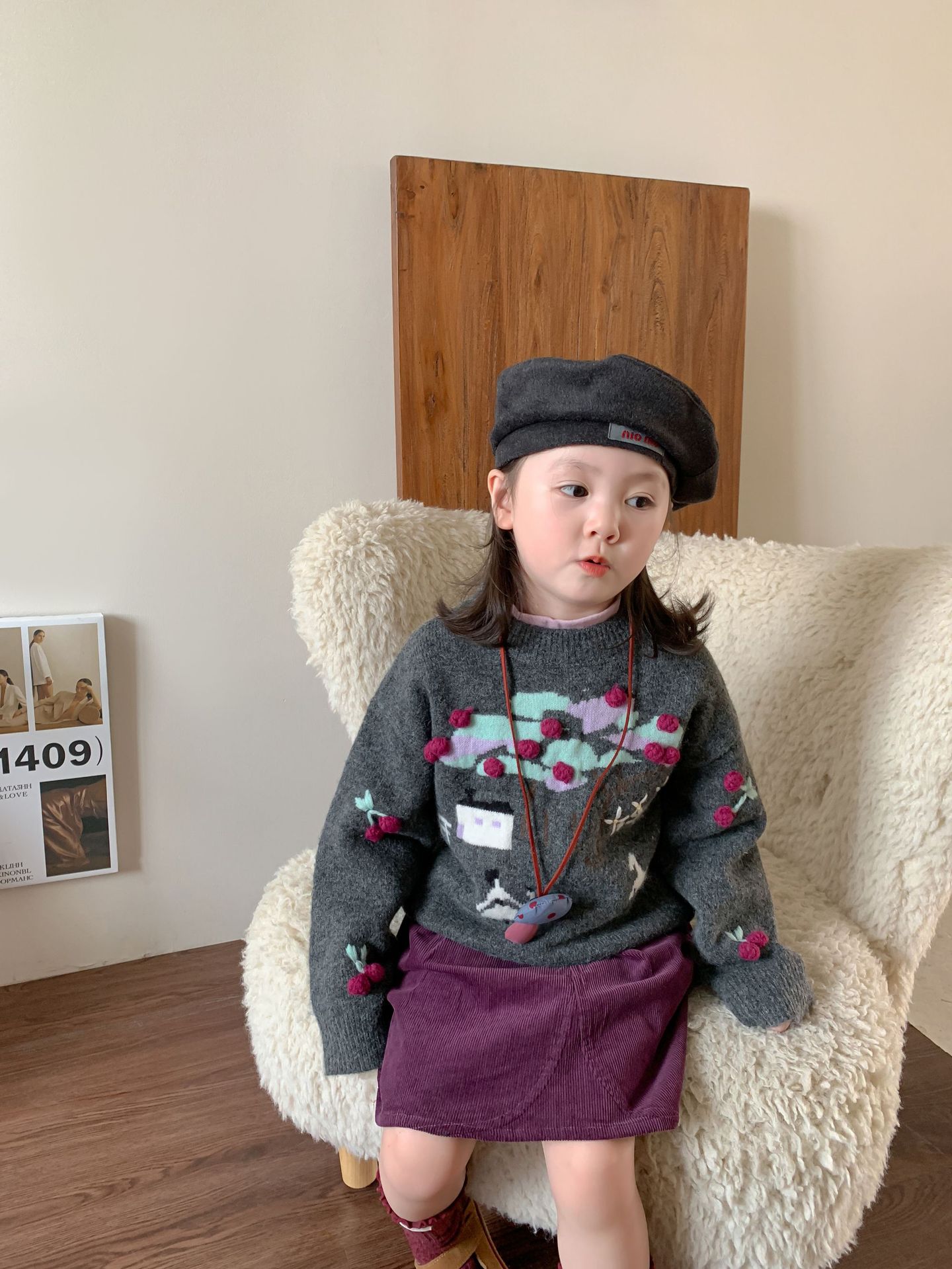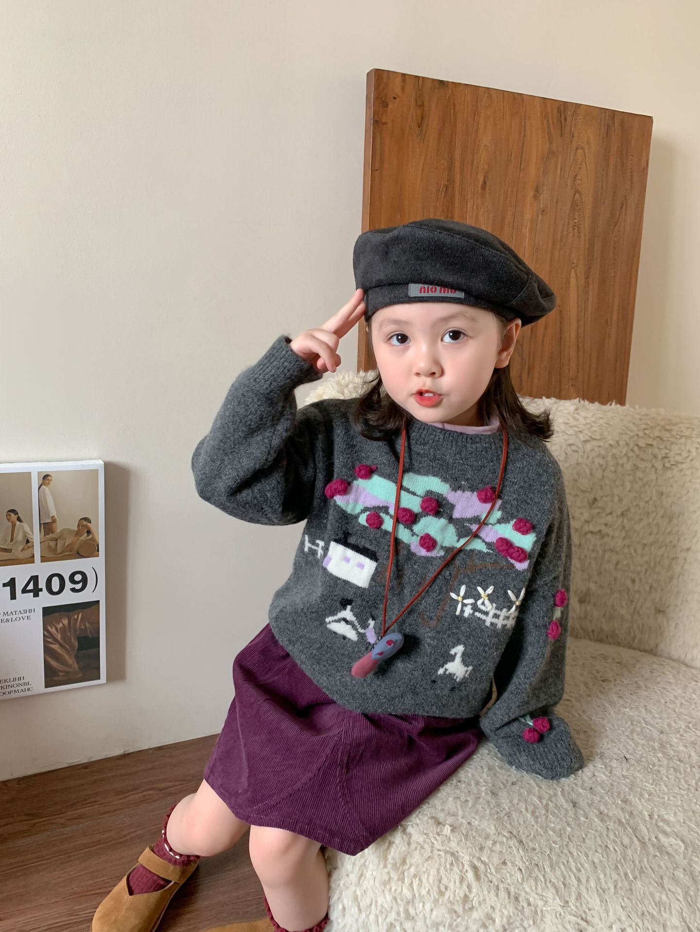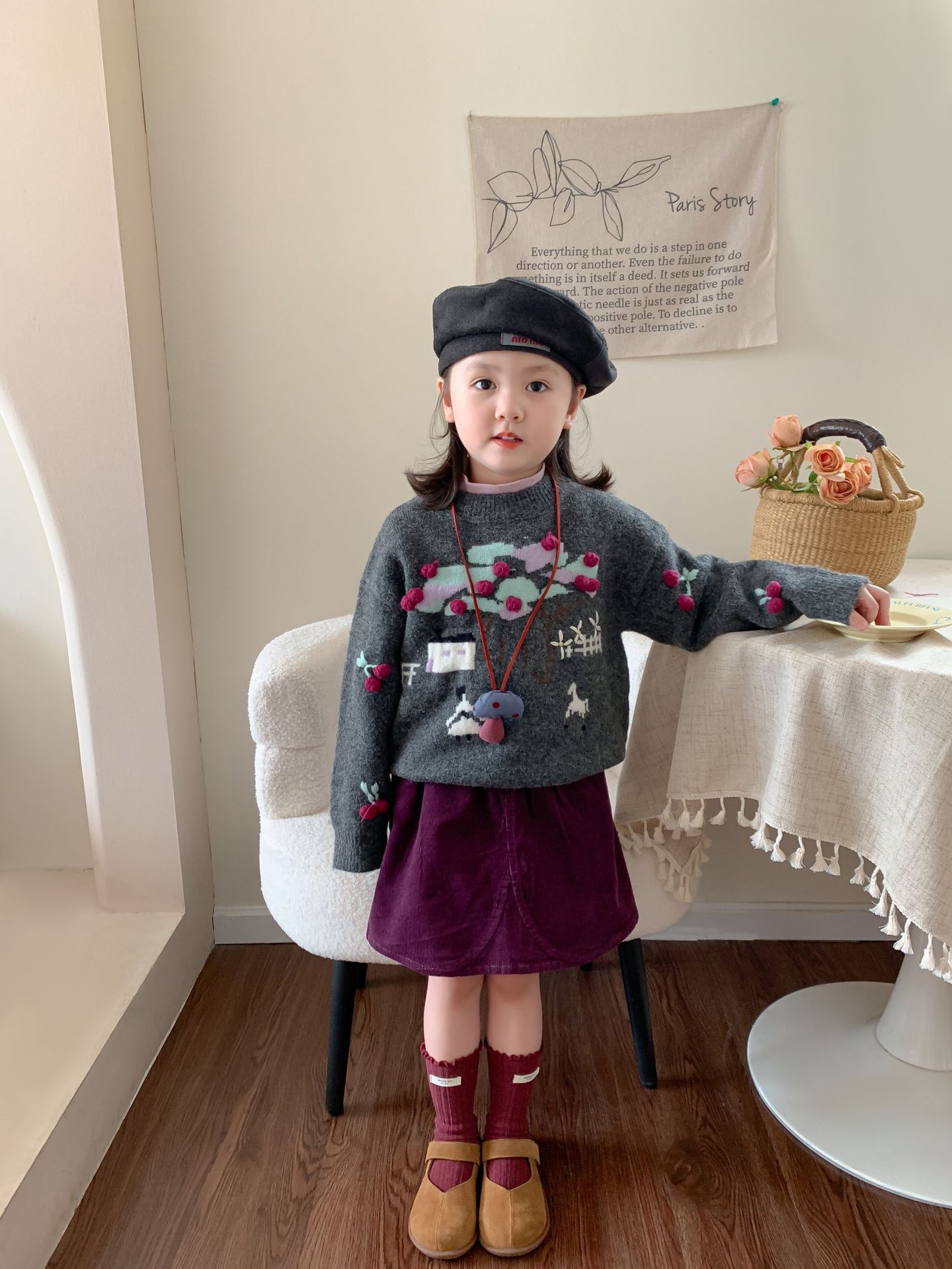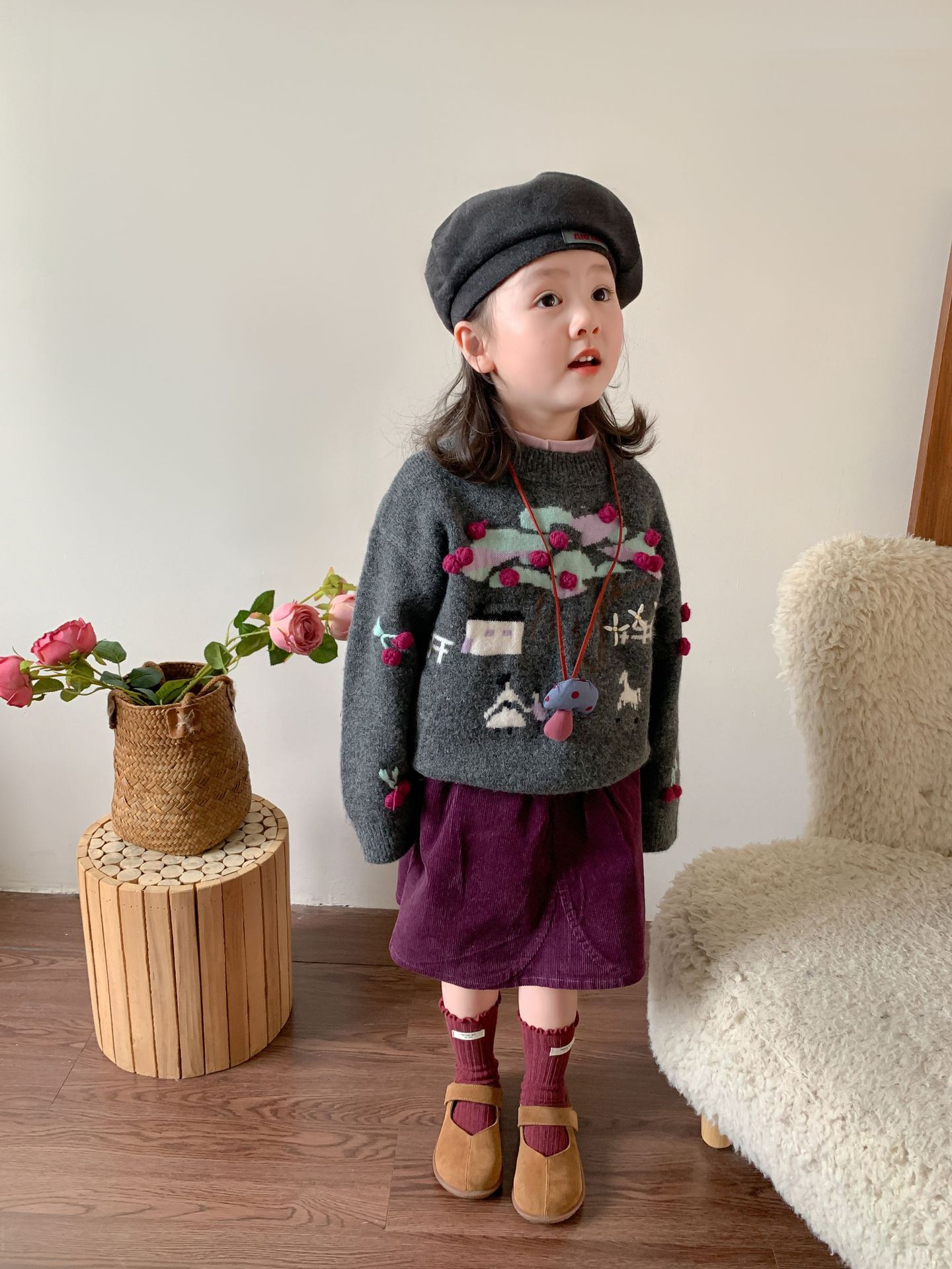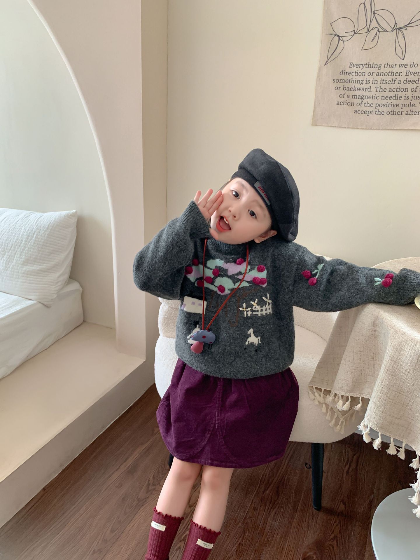 维木童装女童毛衣套装2024秋冬新款儿童韩版针织上衣裙子宝宝衣服