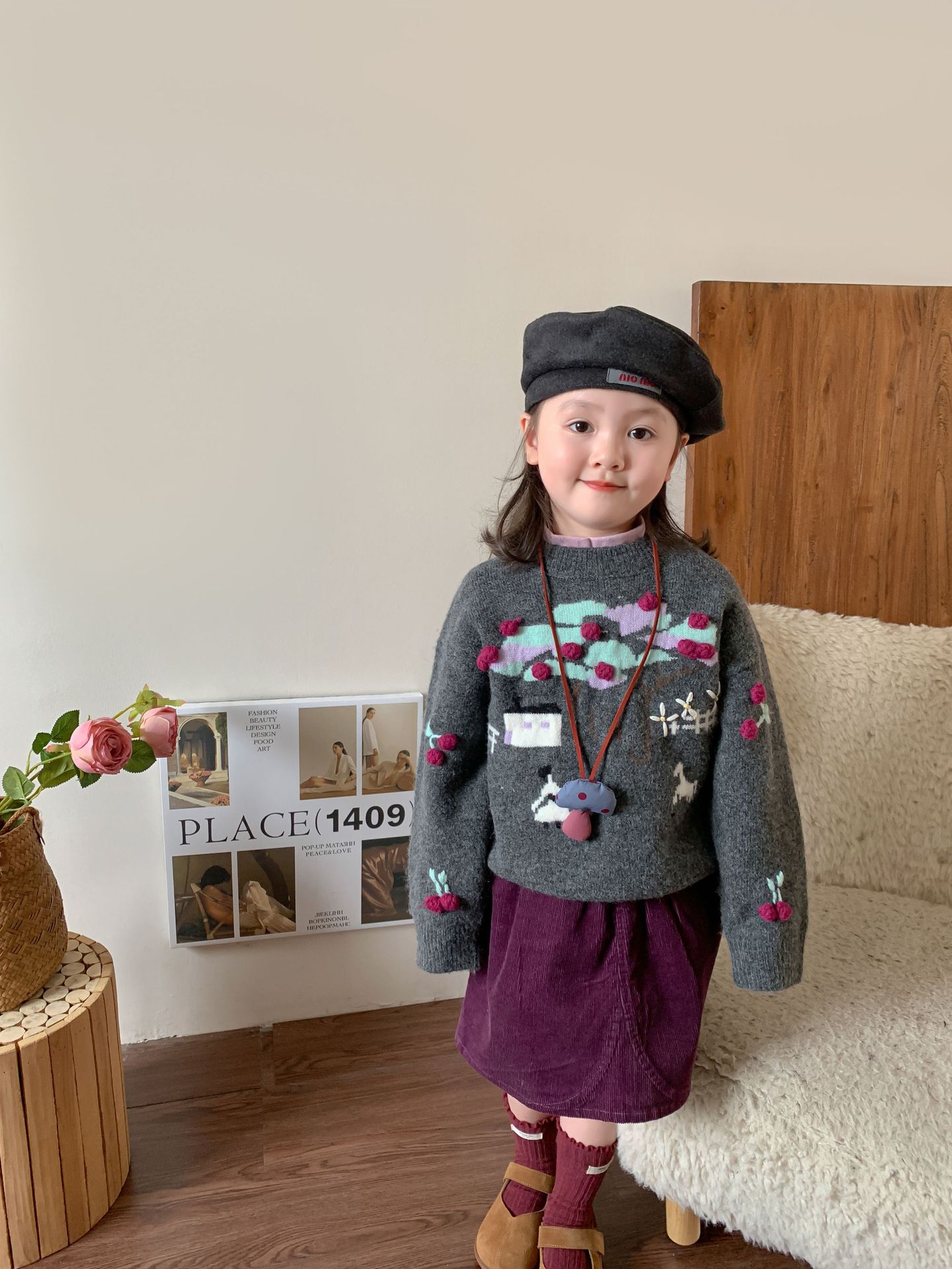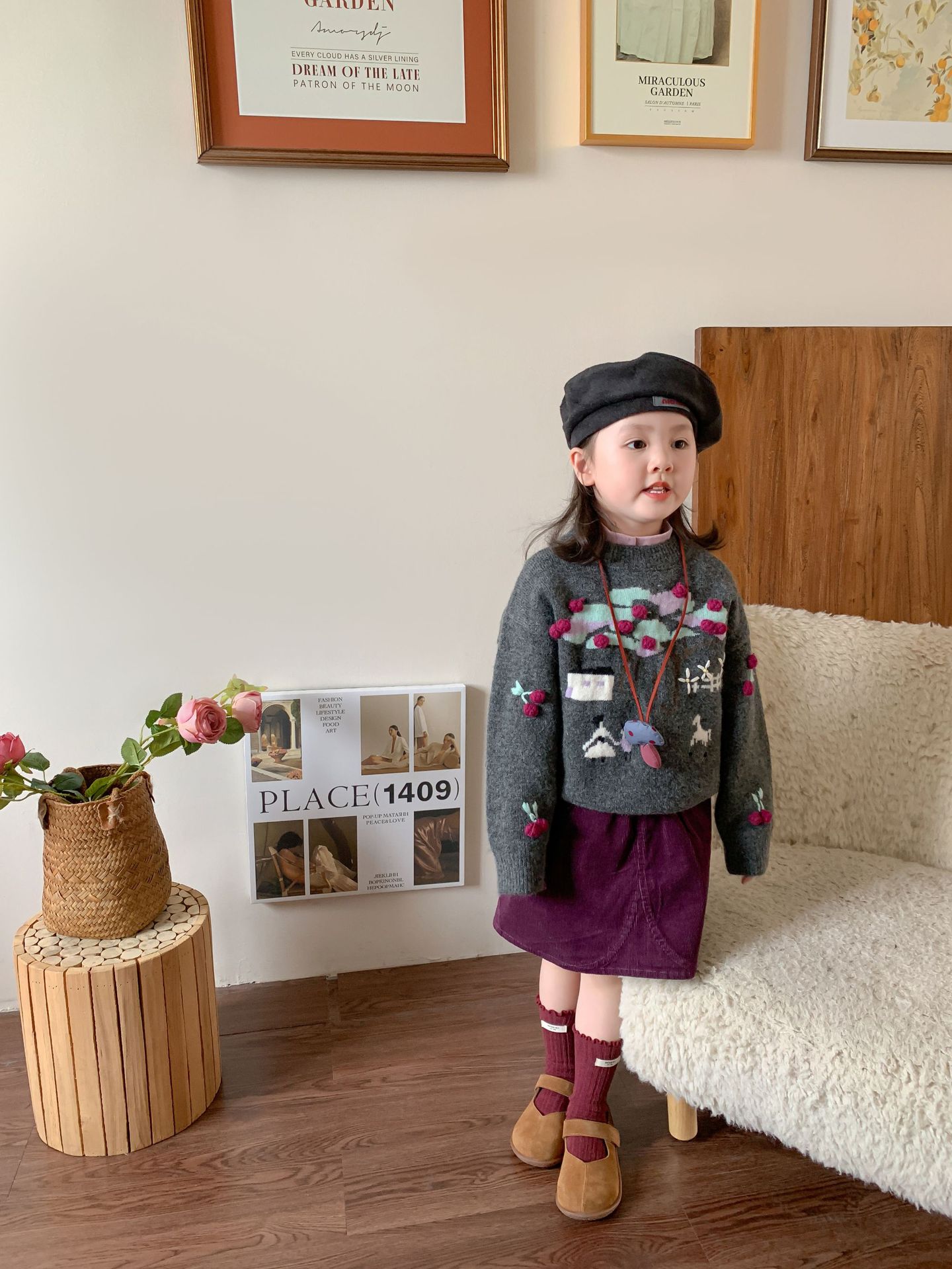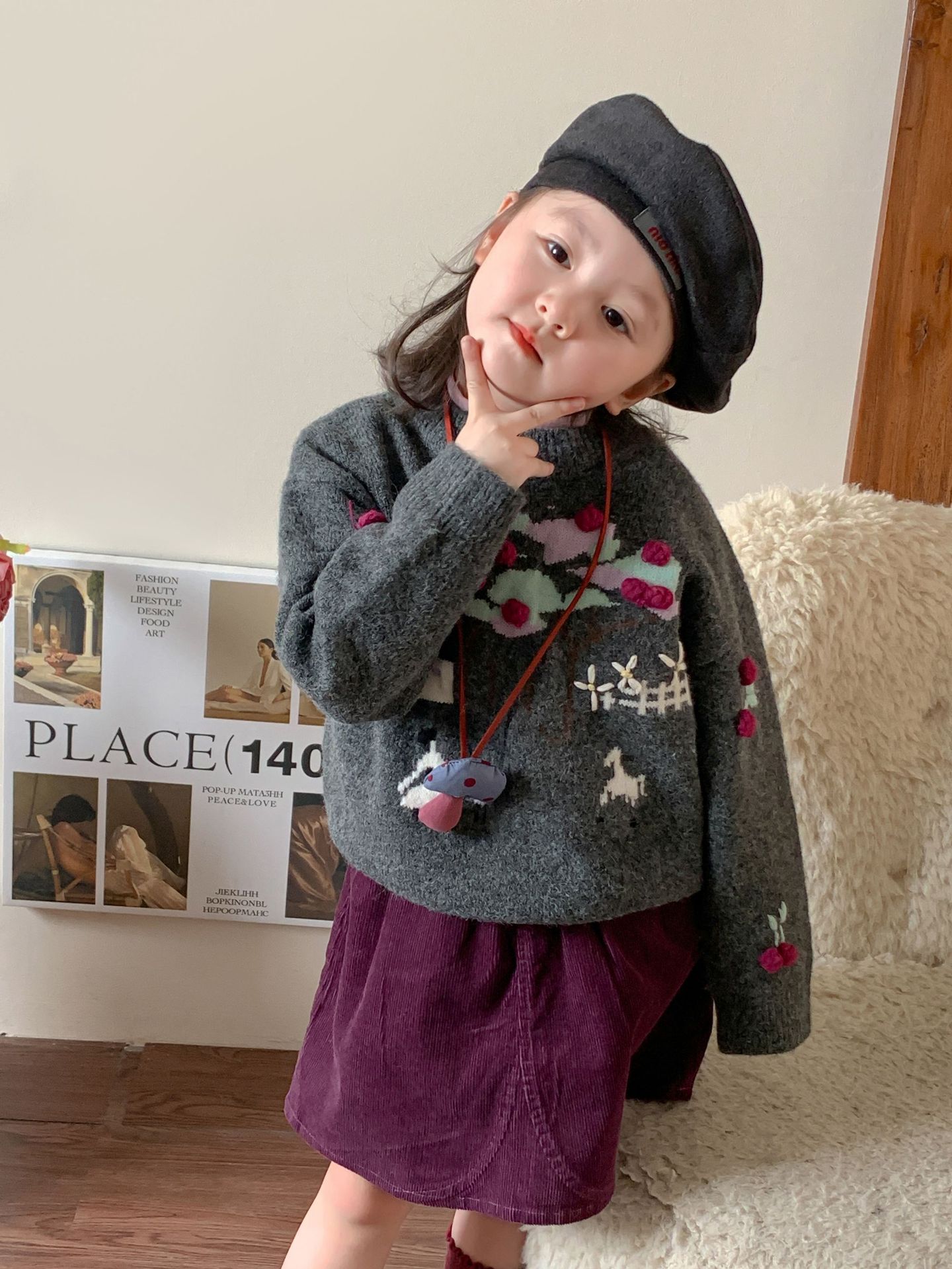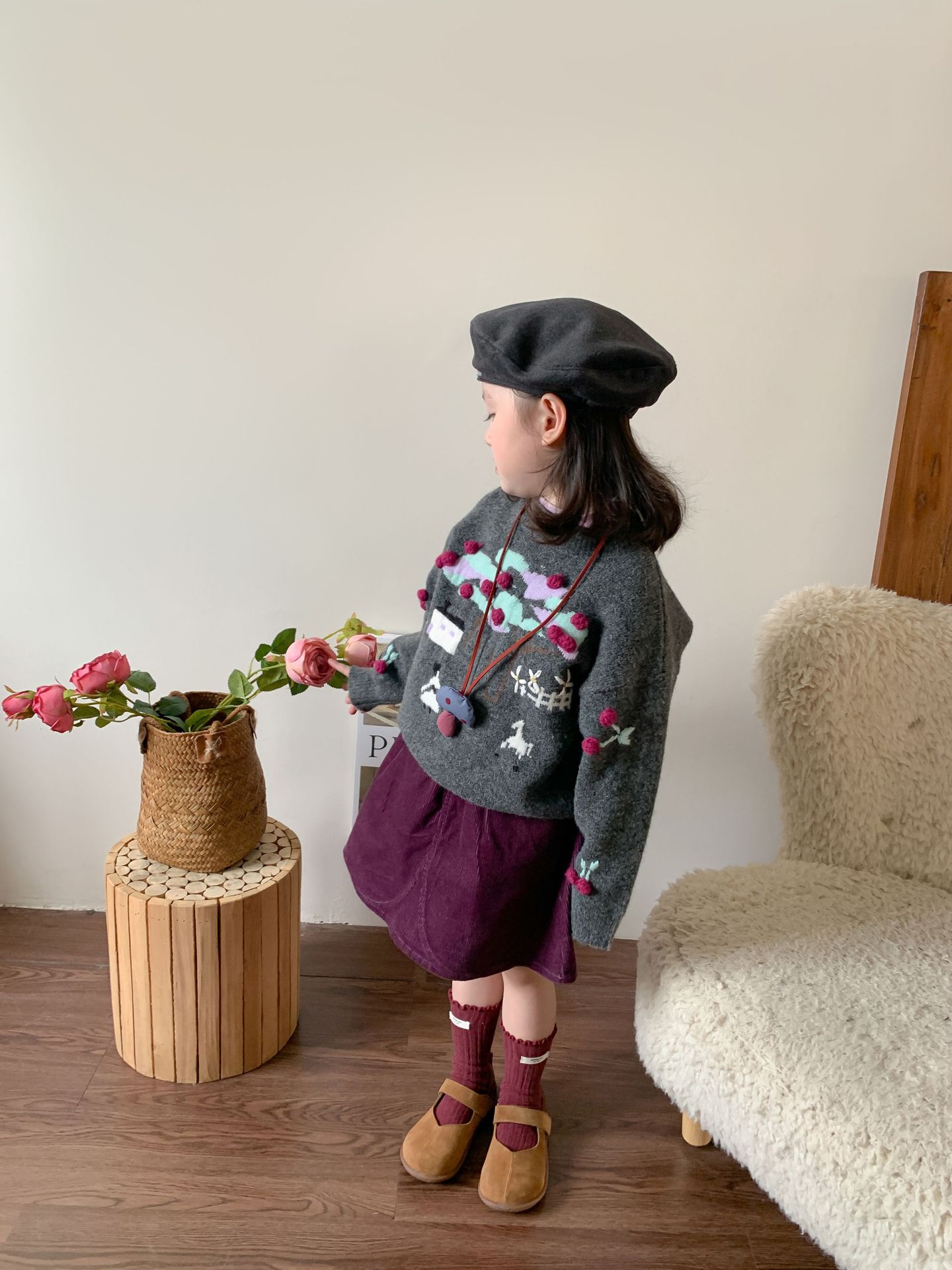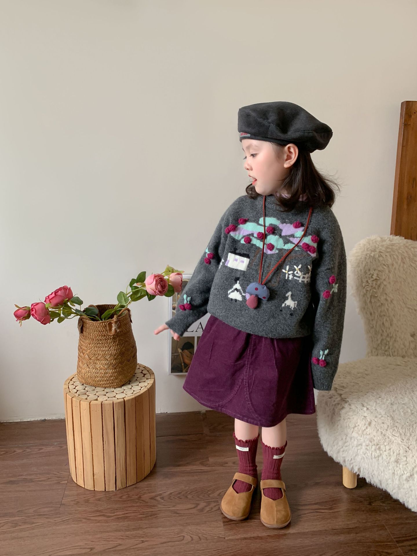 维木童装女童毛衣套装2024秋冬新款儿童韩版针织上衣裙子宝宝衣服