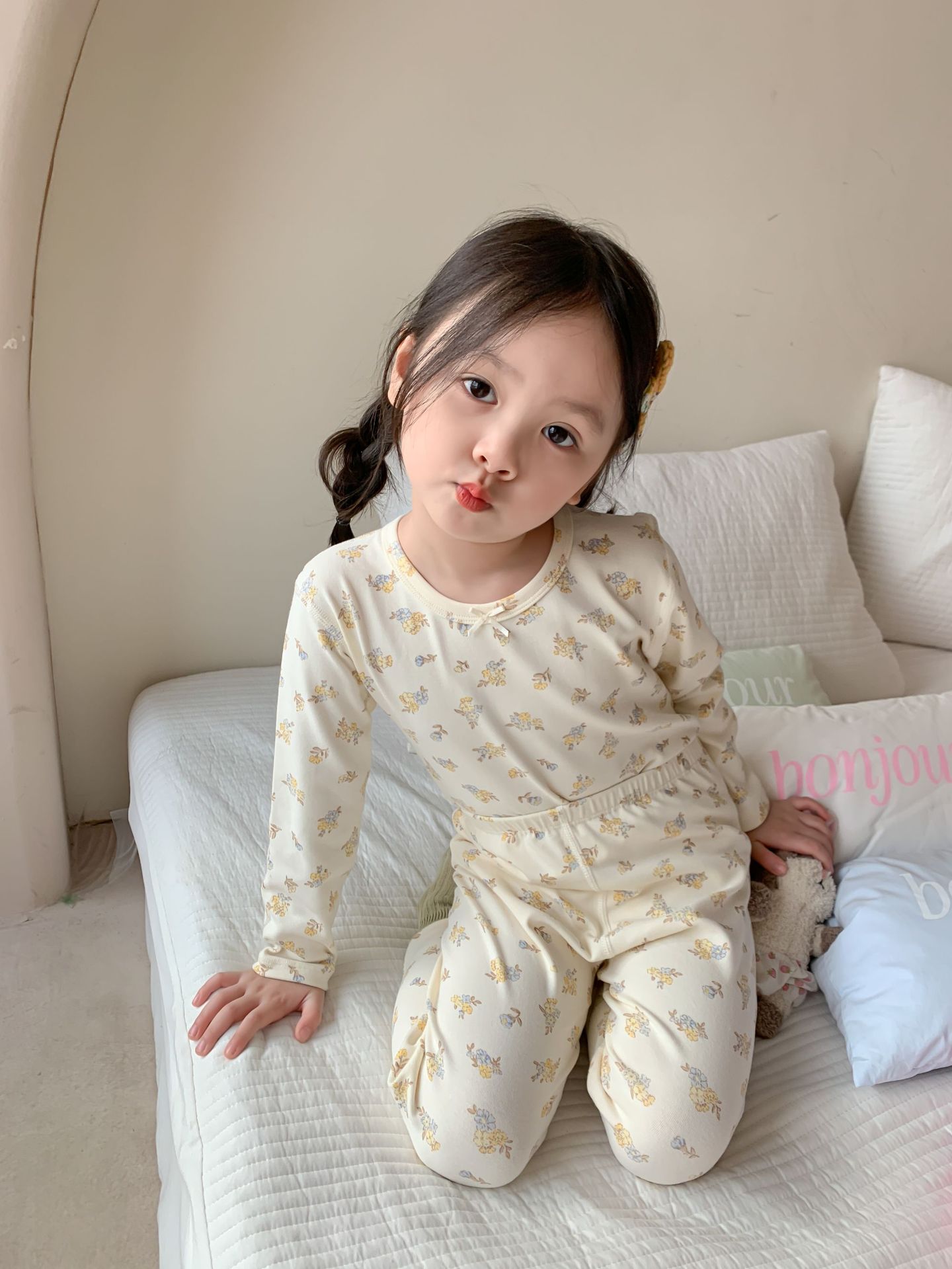 维木童装女童家居服套装2024秋冬新款儿童韩版秋衣睡衣女宝宝衣服