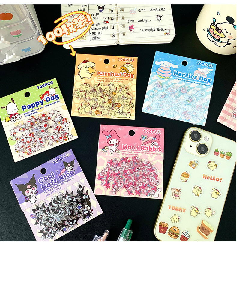 卡通日式玉桂狗透明防水pet贴纸包diy手账日记装饰素材贴卡通动物