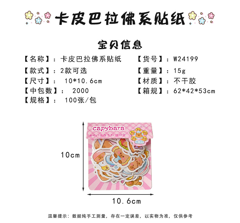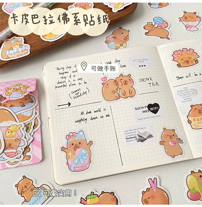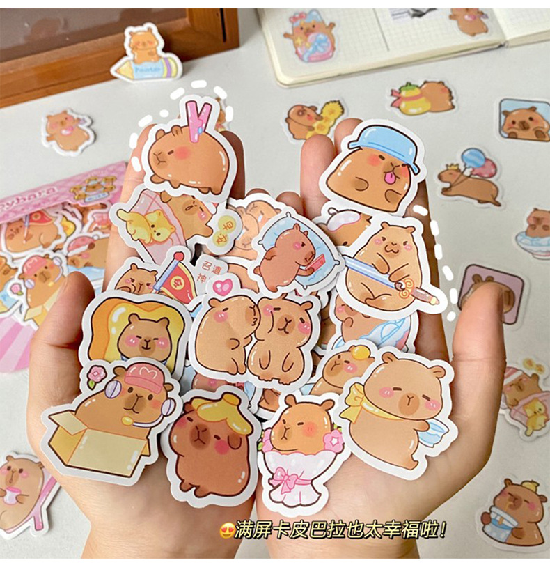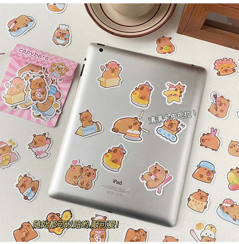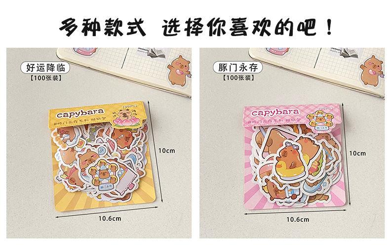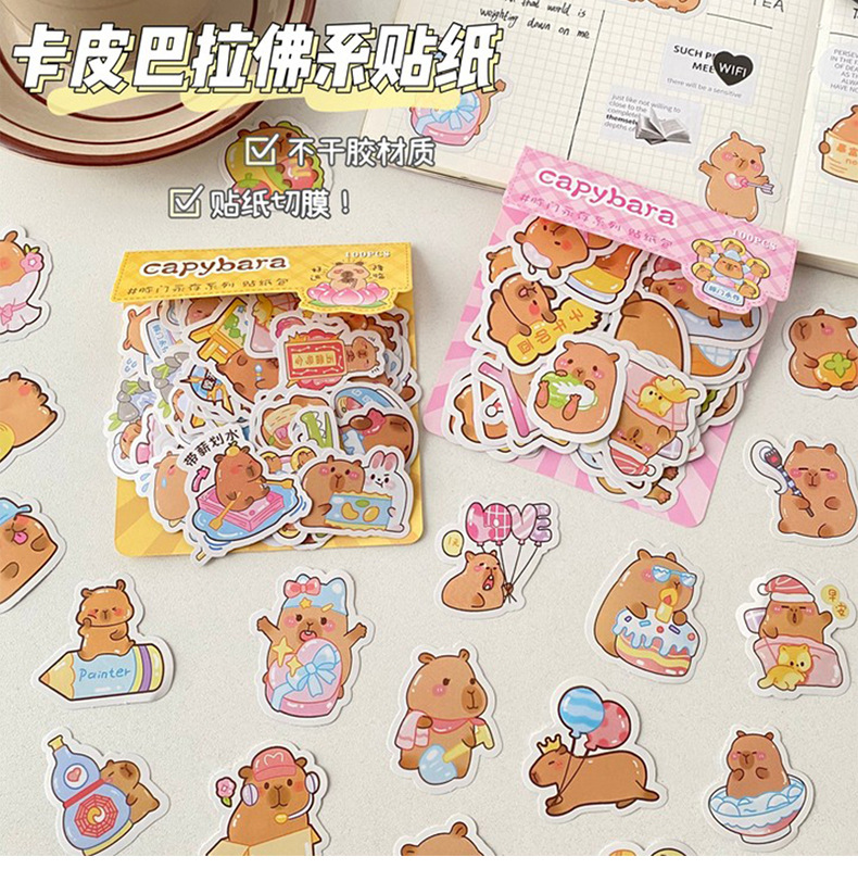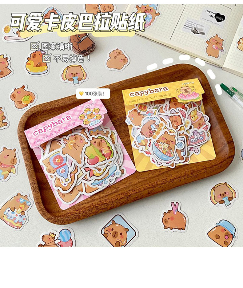 可爱卡皮巴拉贴纸100张小学生儿童diy手帐装饰文具卡通贴纸包批发
