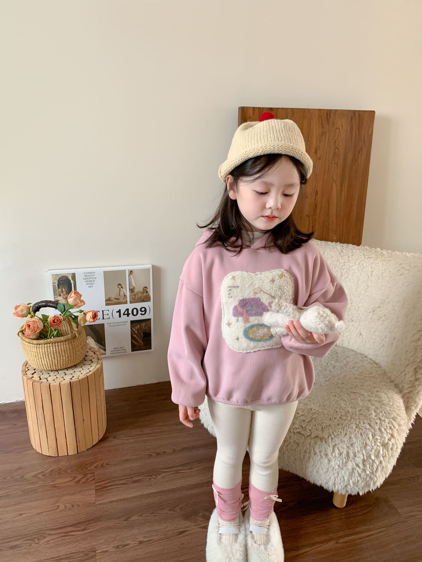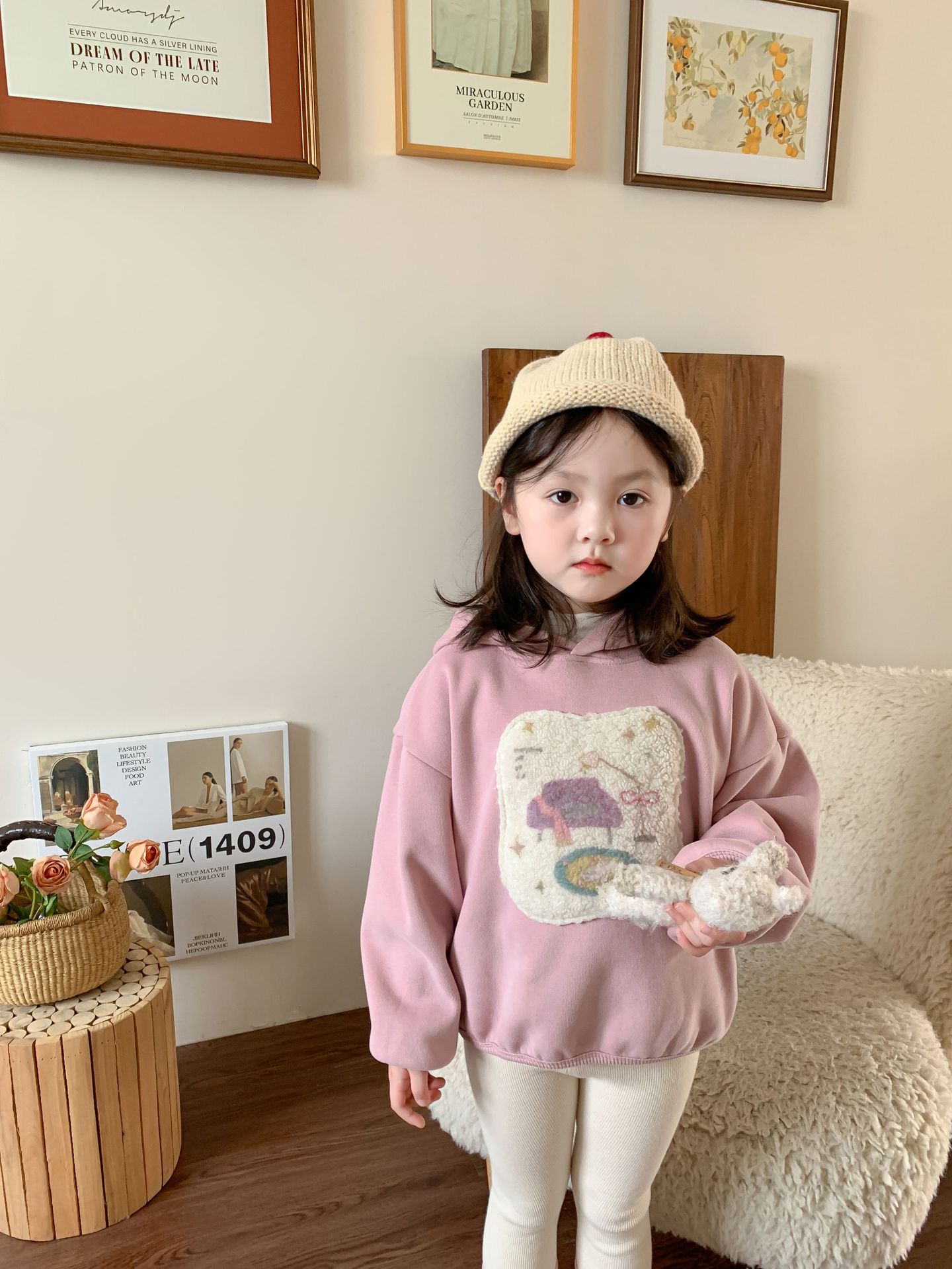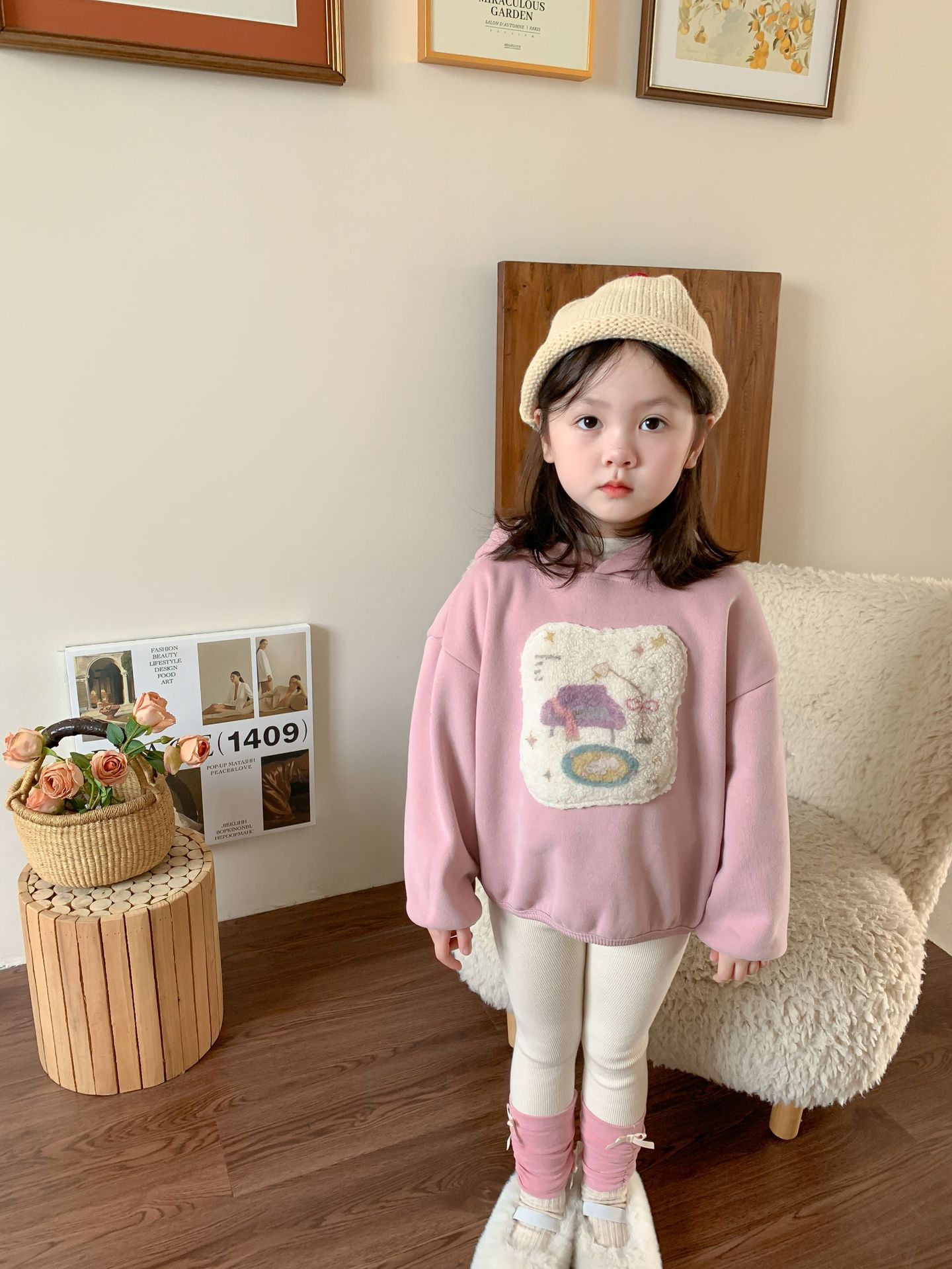 维木童装女童加绒卫衣2024秋冬新款儿童韩版卡通休闲上衣宝宝衣服