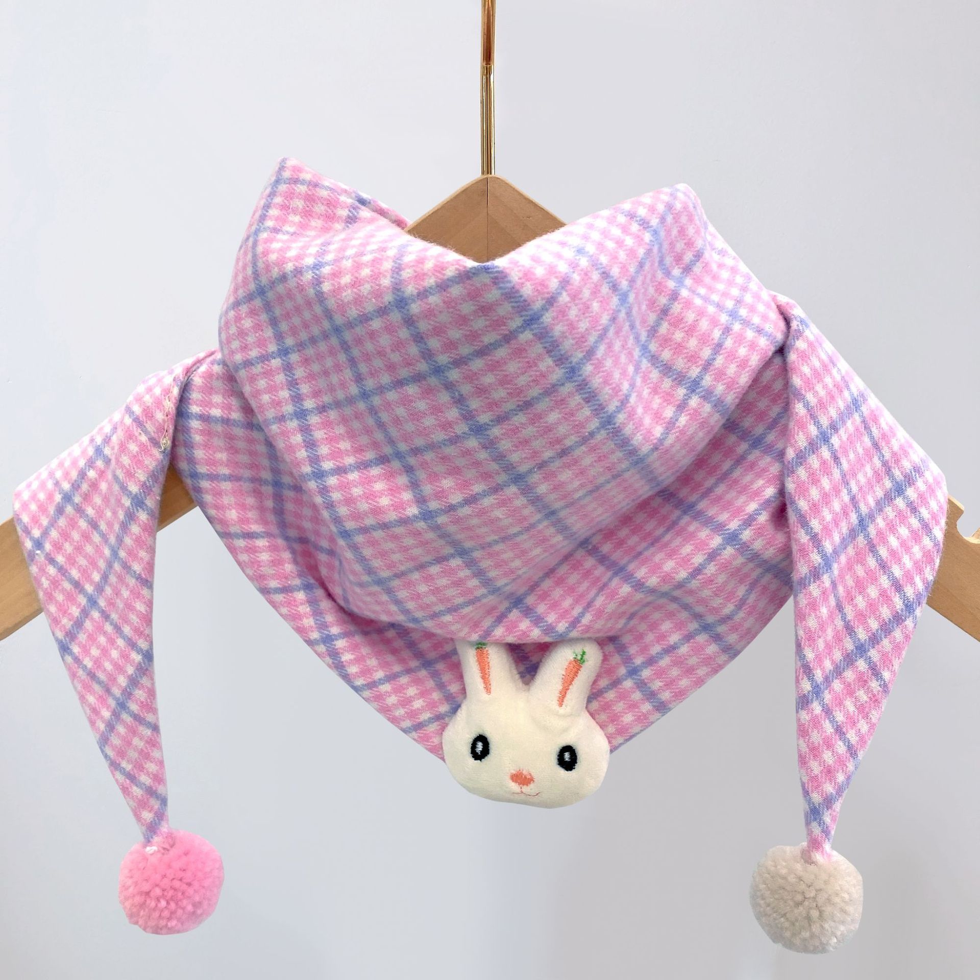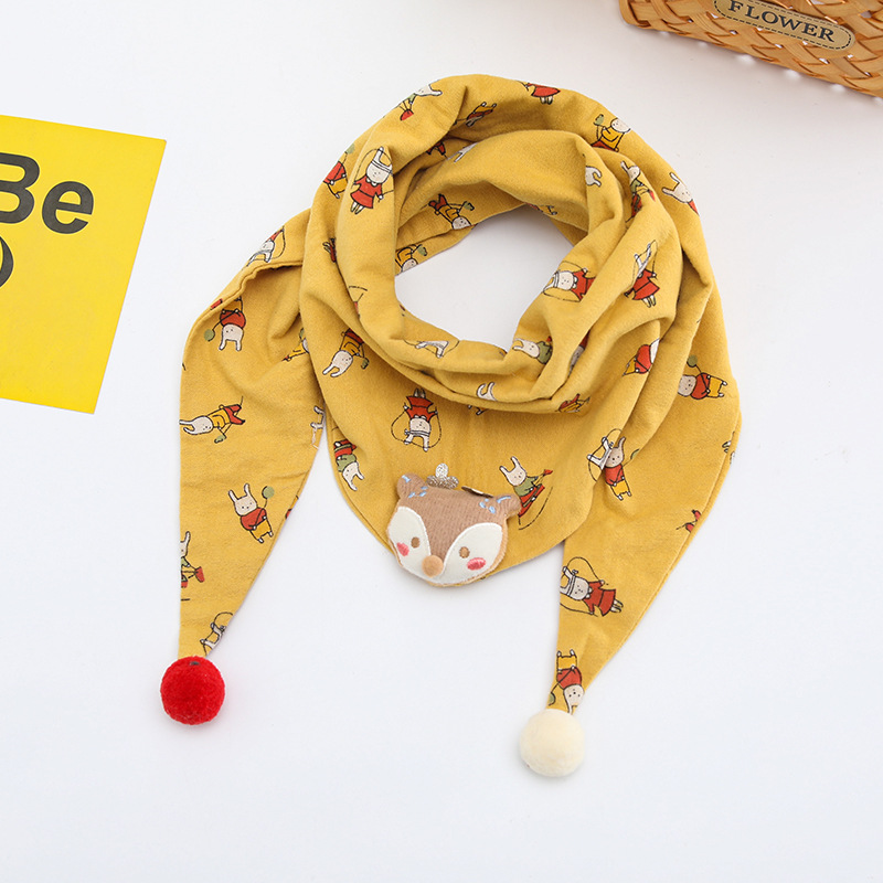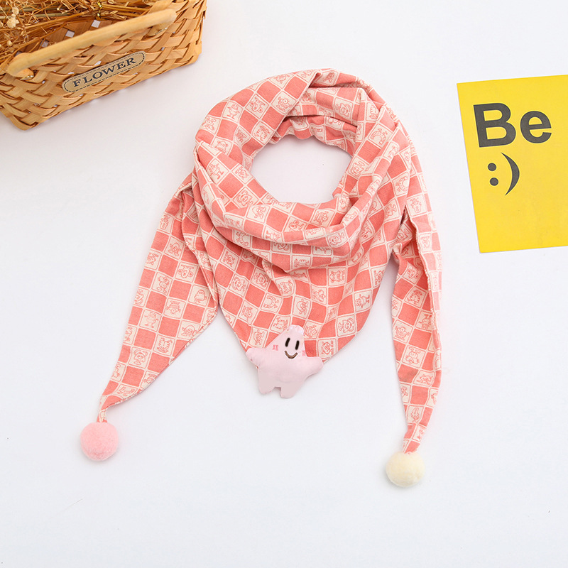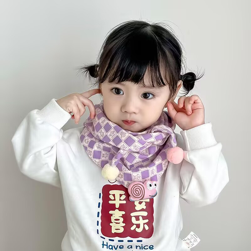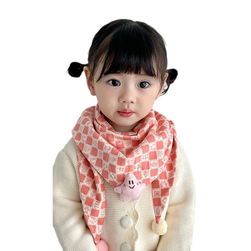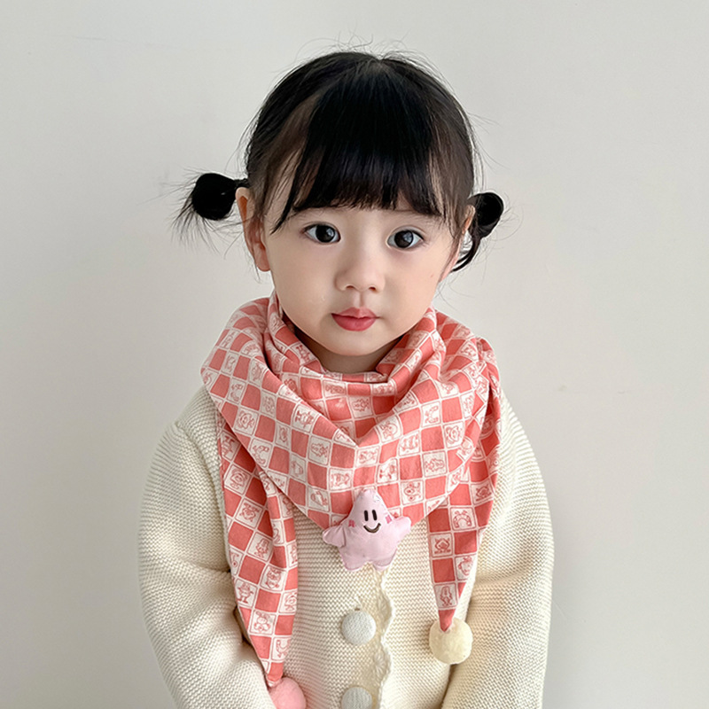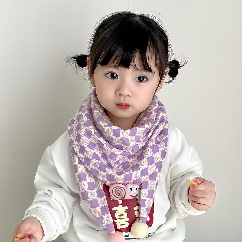 韩版卡通儿童围巾秋冬新款男女童撞色三角巾百搭宝宝格子围脖潮