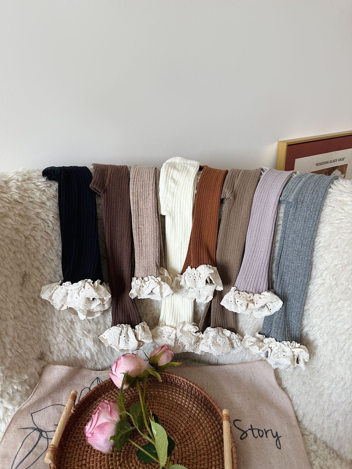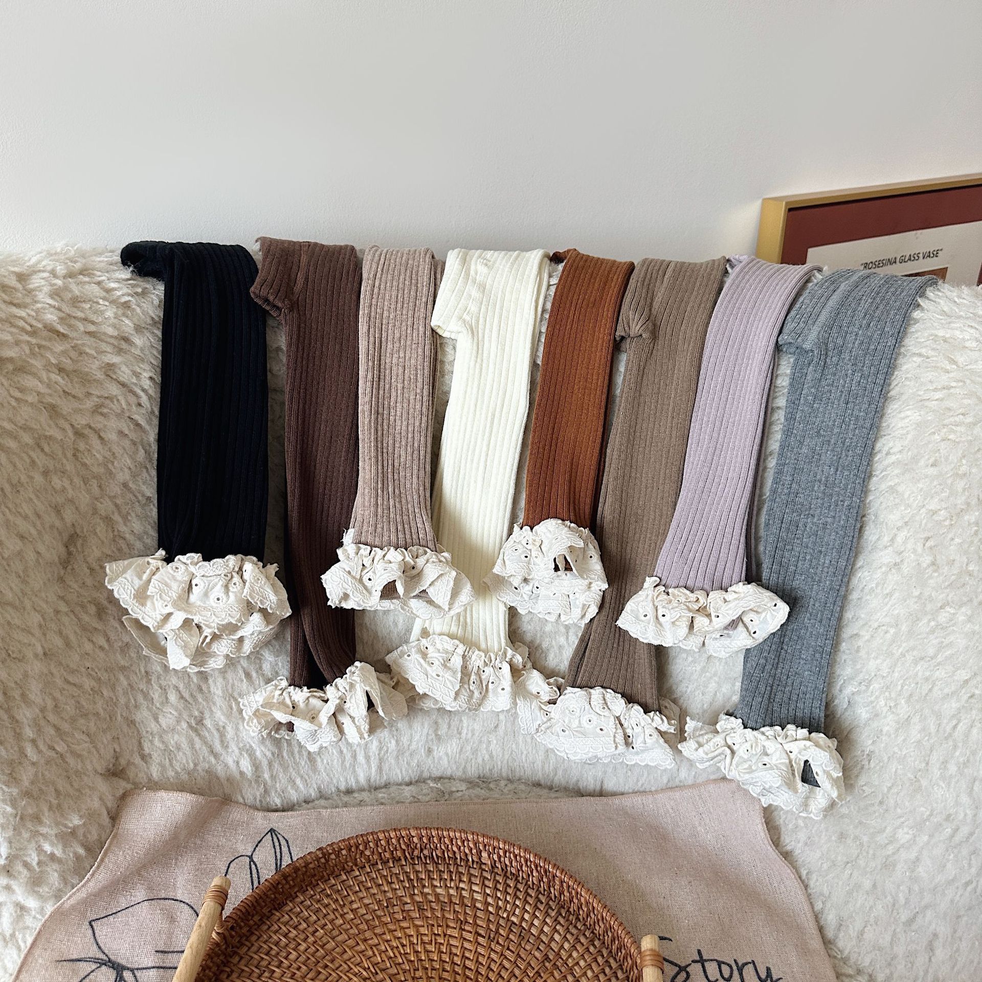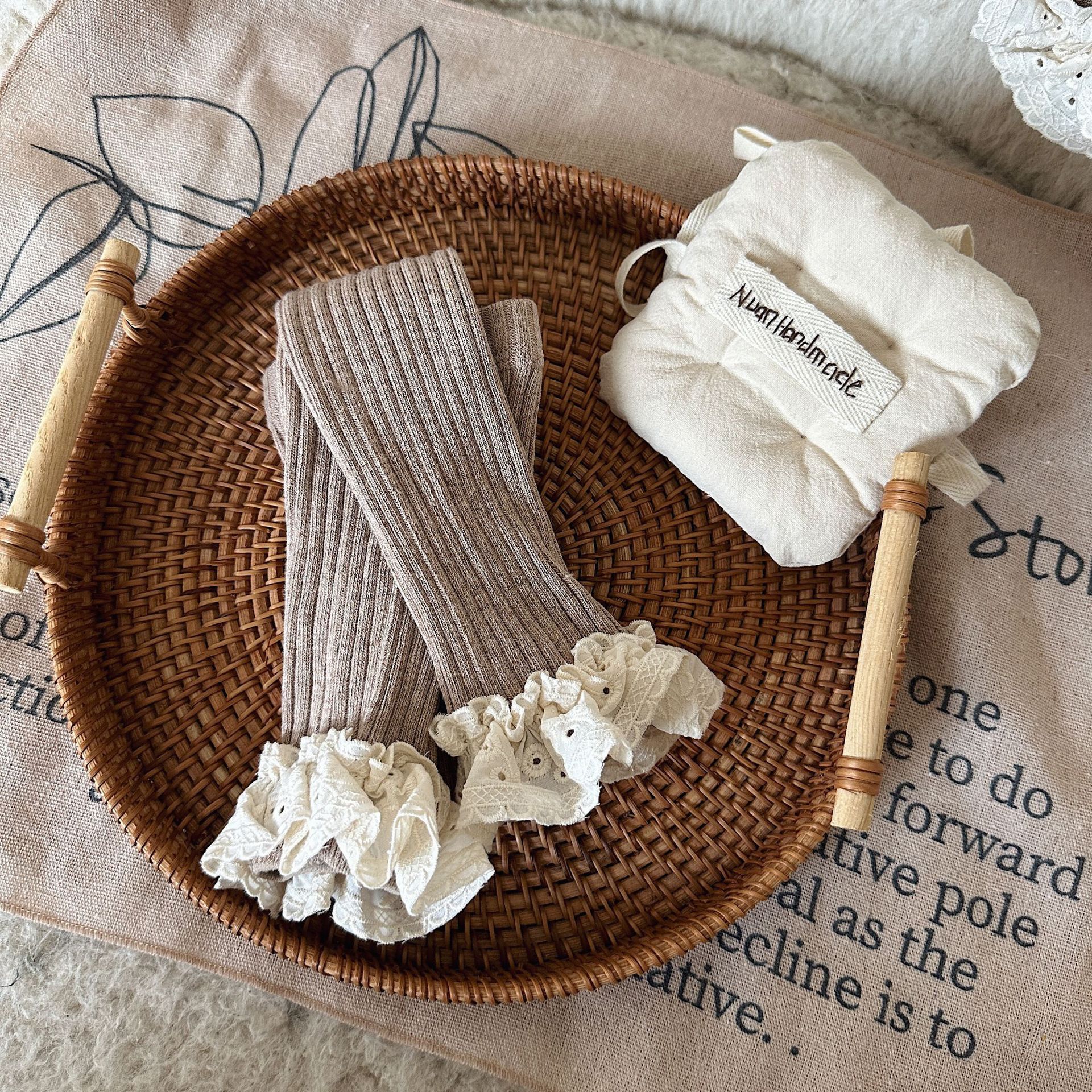 维木童装女童连裤袜2024秋季新款儿童韩版坑条花边打底裤宝宝袜子