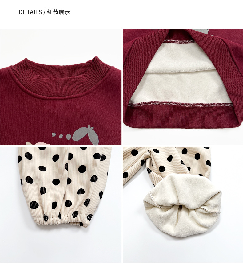 维木童装女童加绒卫衣套装2024秋冬新款儿童韩版上衣裤子宝宝衣服