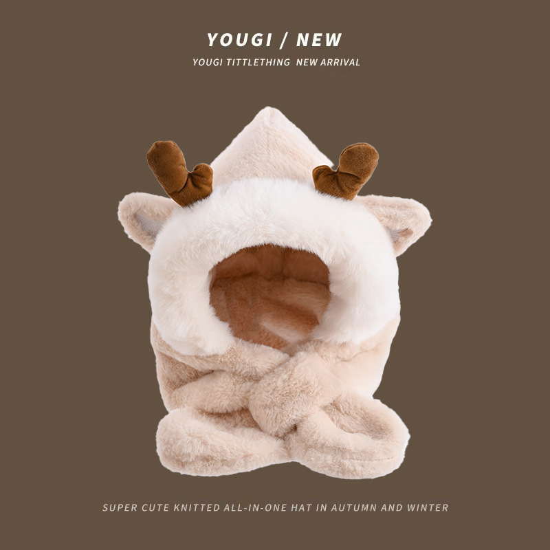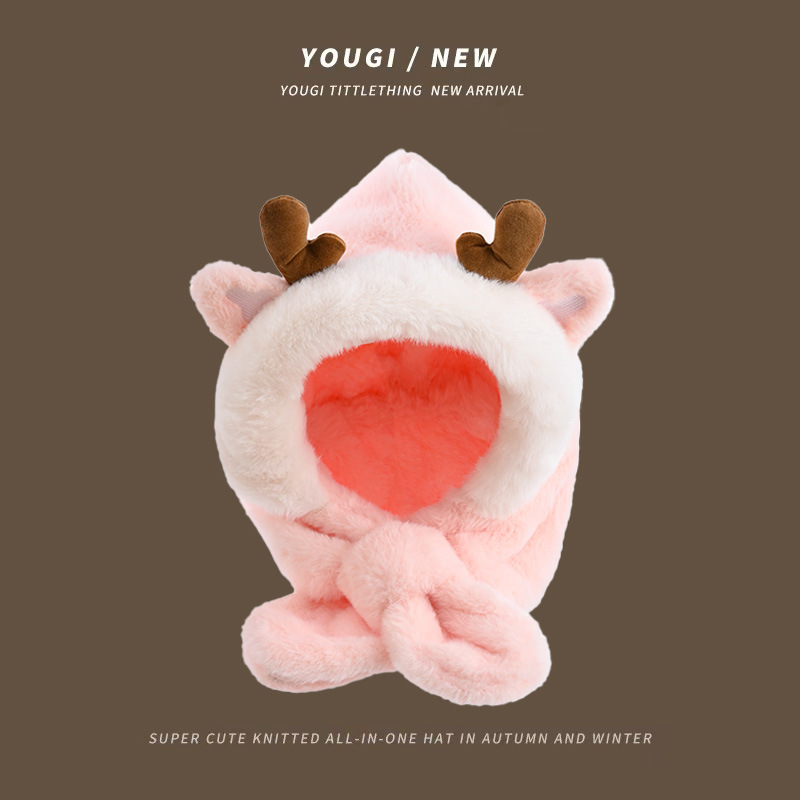 儿童一体帽女秋冬可爱小兔儿童帽子保暖宝宝围巾小孩护耳帽套头帽