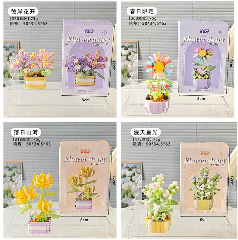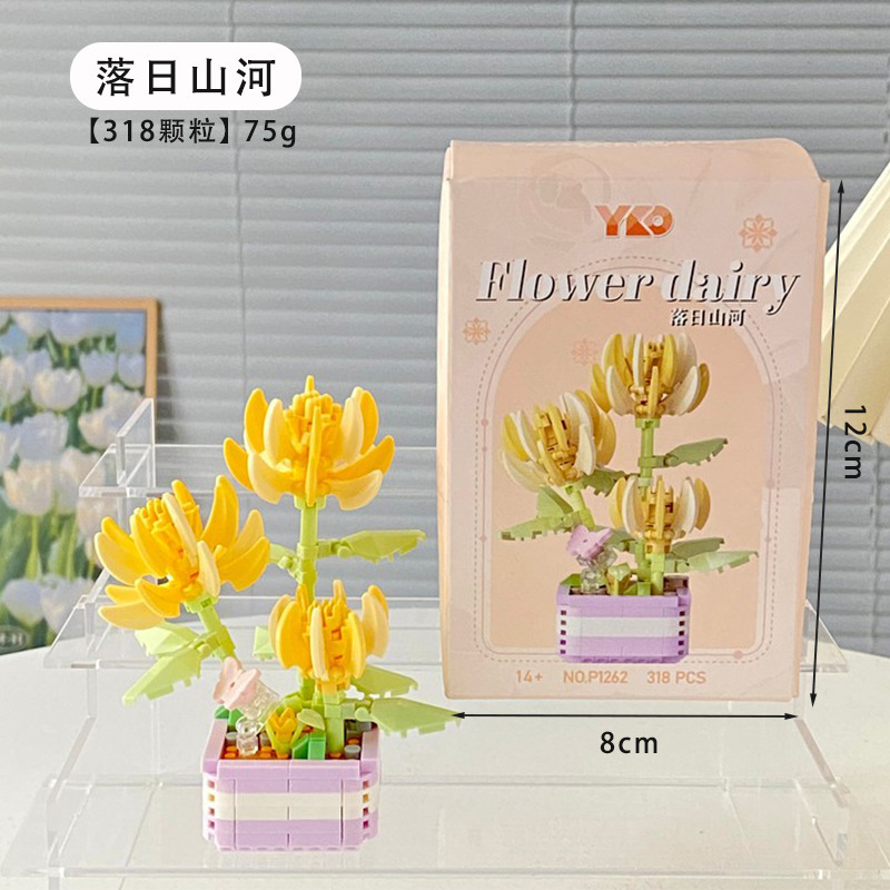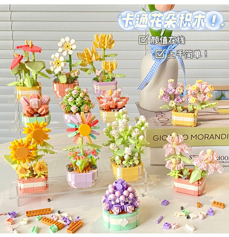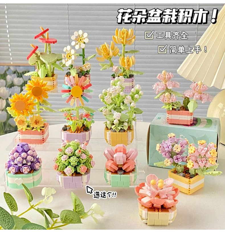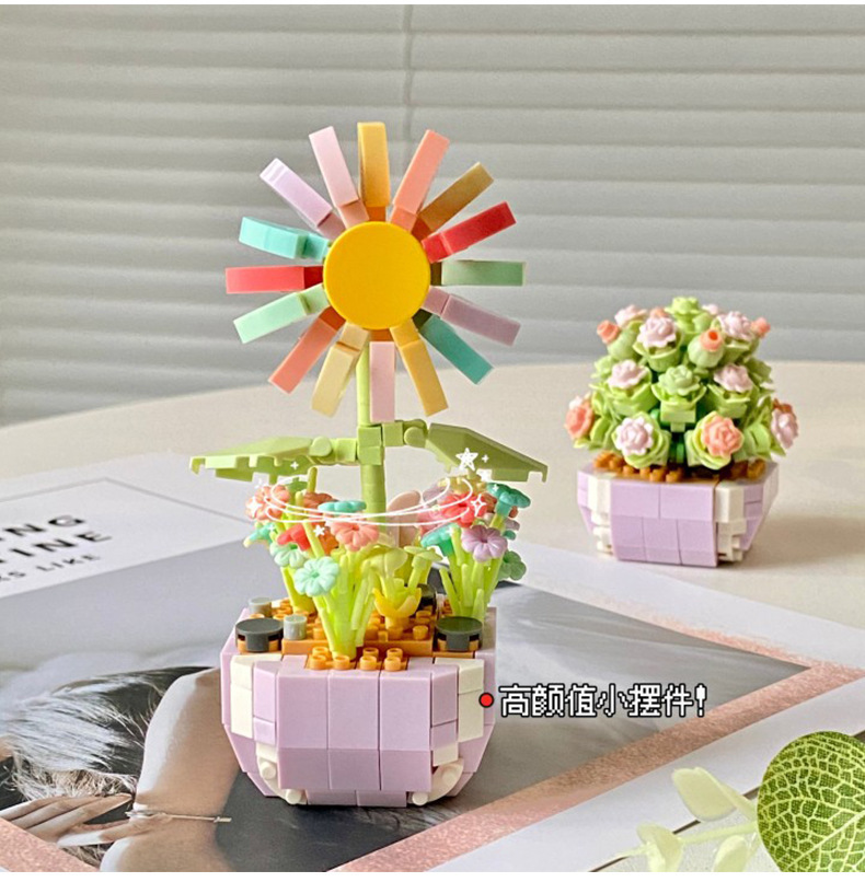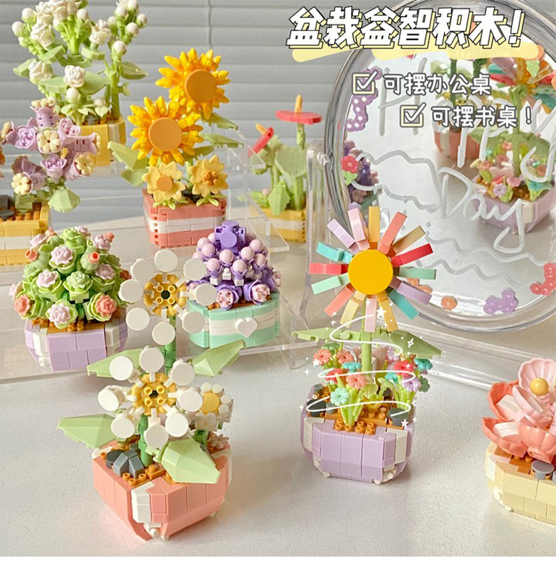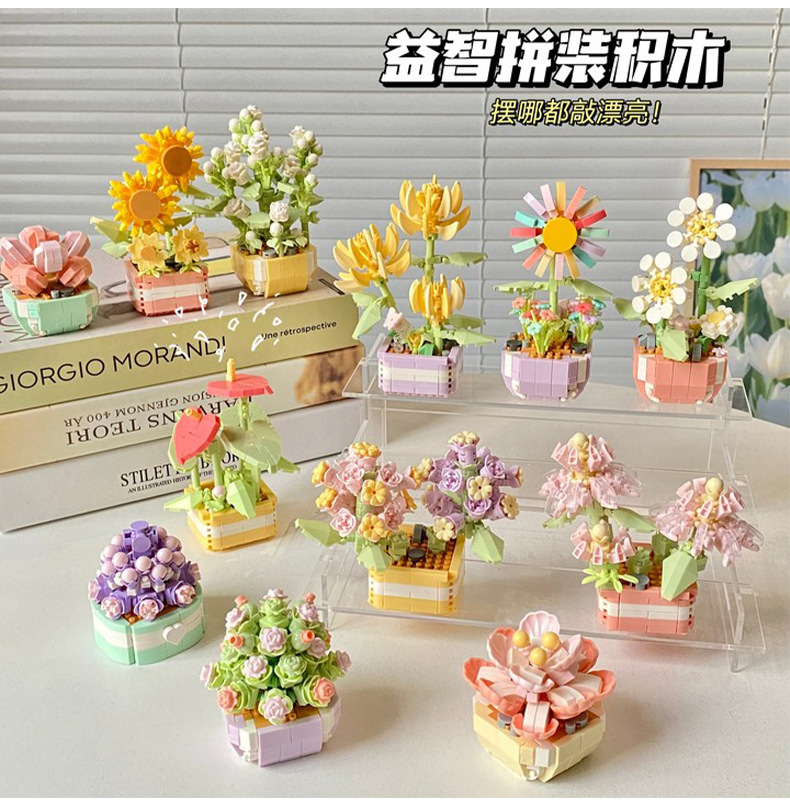 创意微颗粒植物盆栽积木 多肉花束积木拼装摆件益智玩具手工礼物