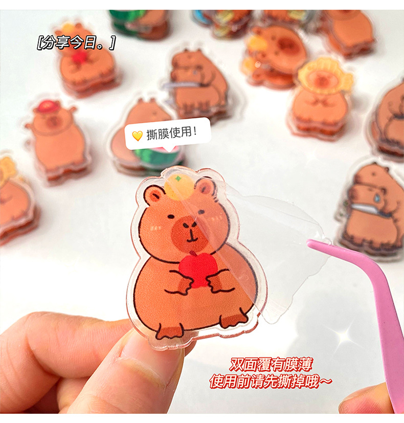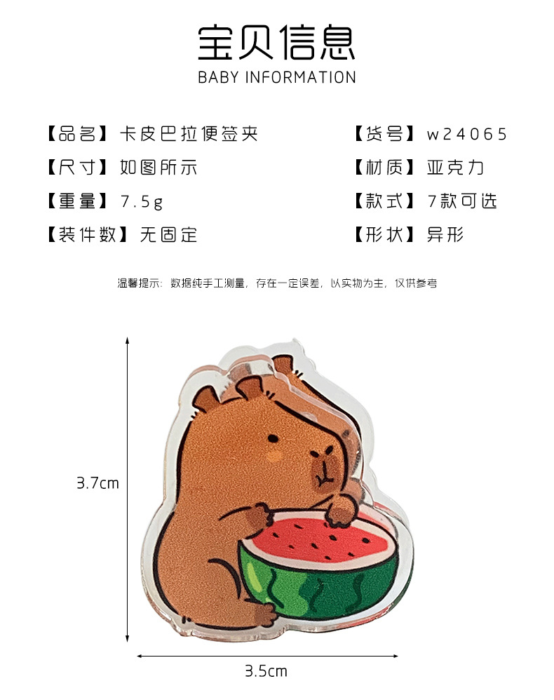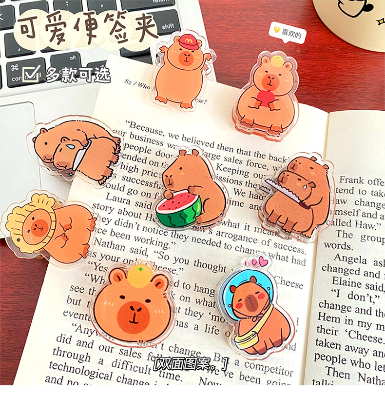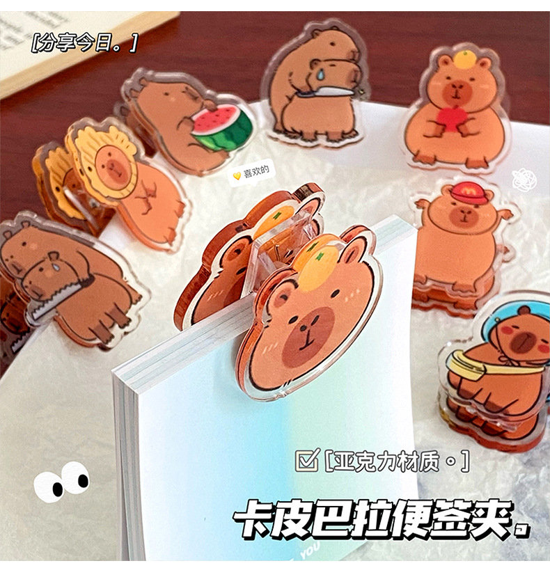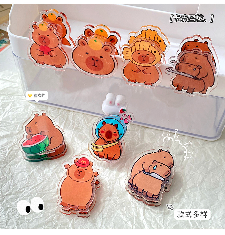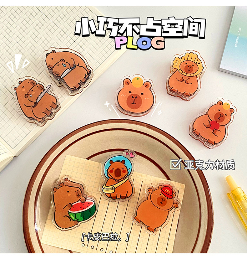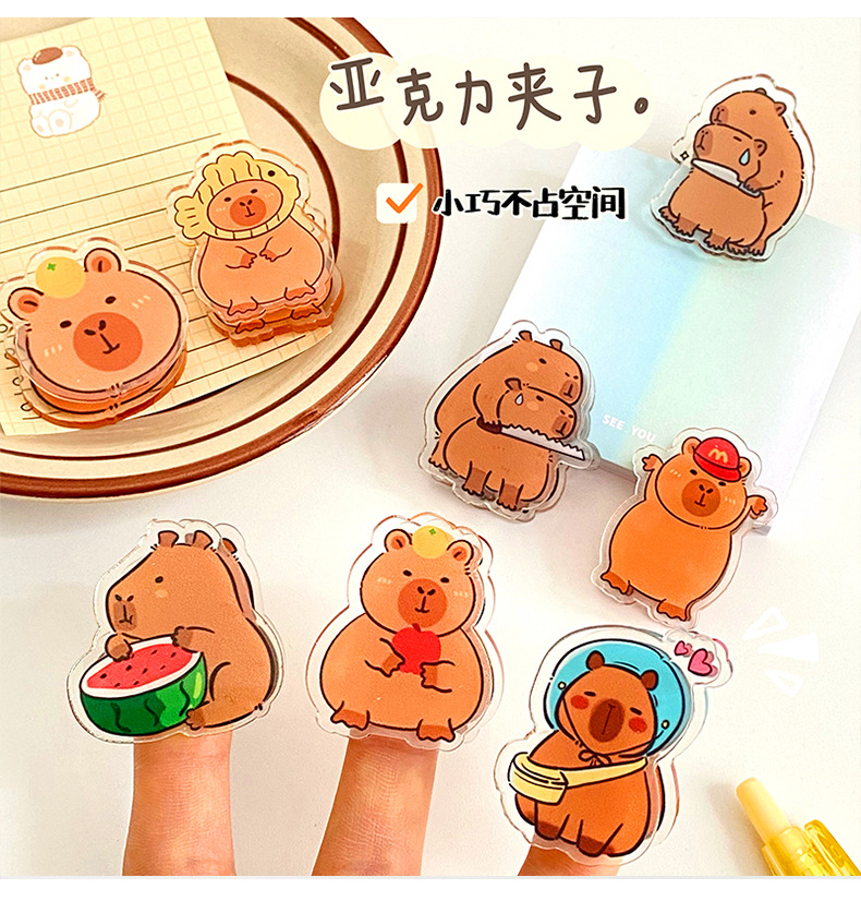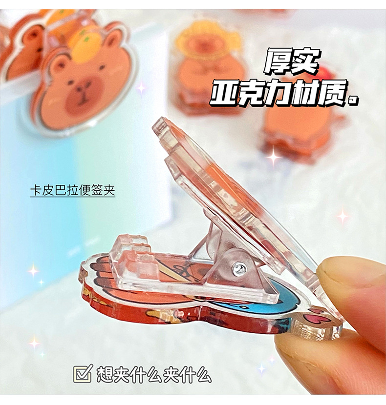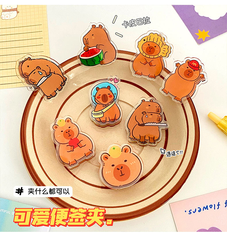 新款卡通亚克力夹子可爱卡皮巴拉便签夹学生儿童diy手帐夹批发
