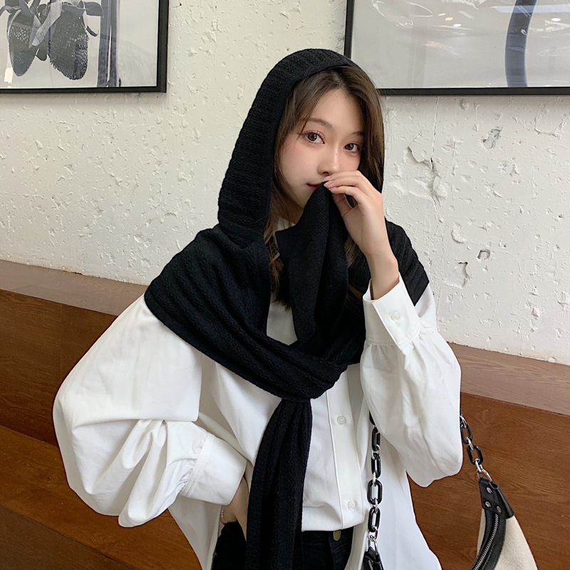 秋冬休闲针织女斗篷薄款外搭套头小披肩外套韩版纯色毛线围巾两用