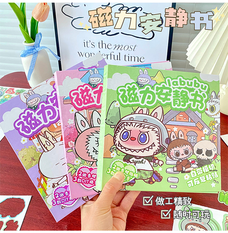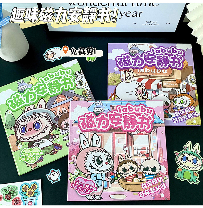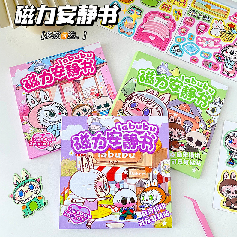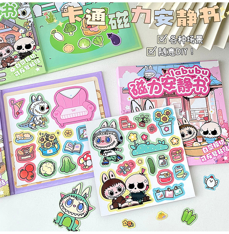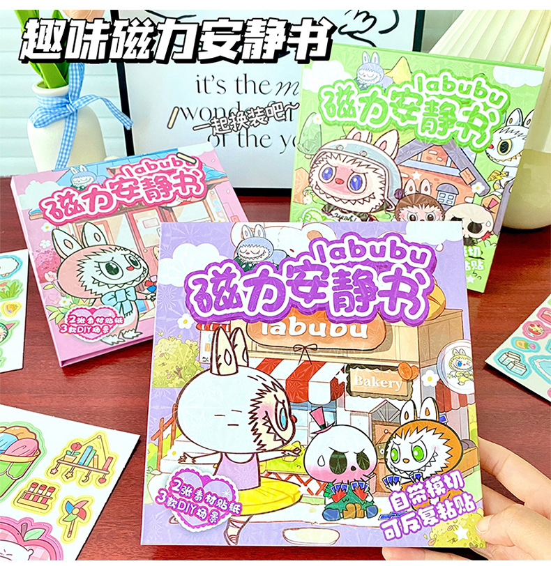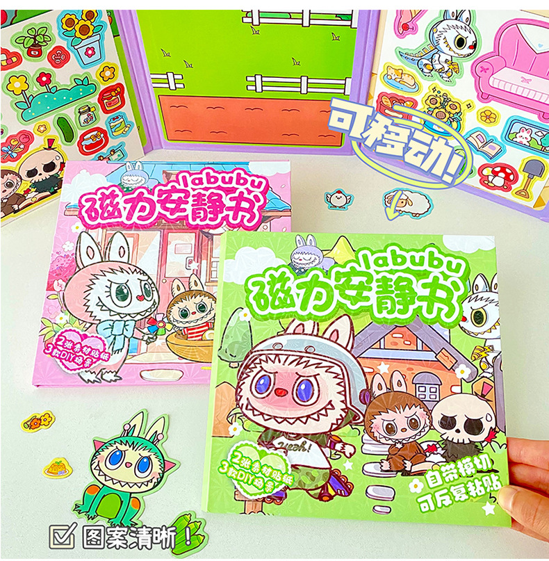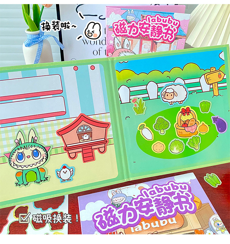 新款拉布布磁力安静书儿童手工创意diy换装贴反复粘女孩玩具贴纸