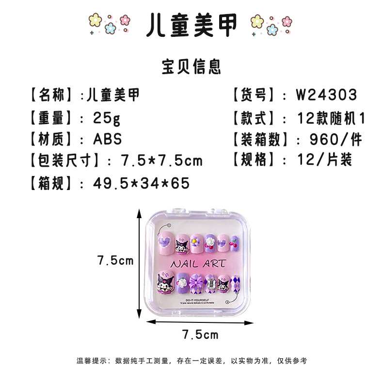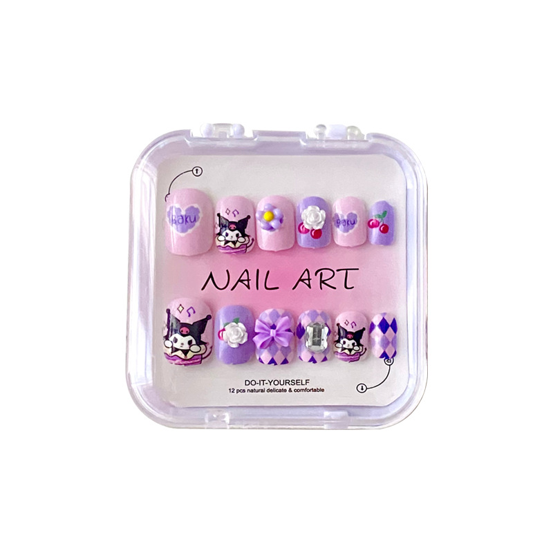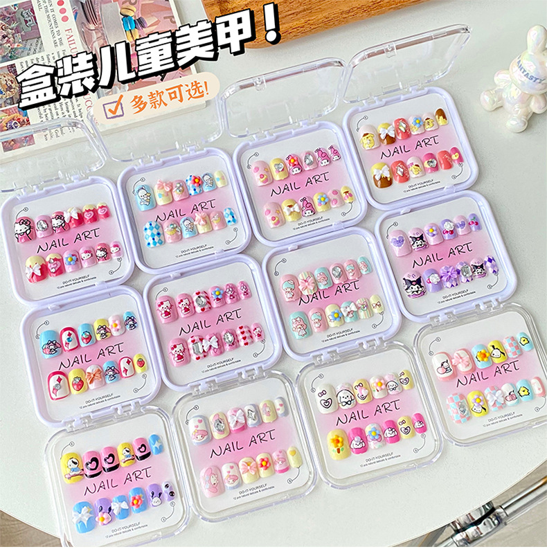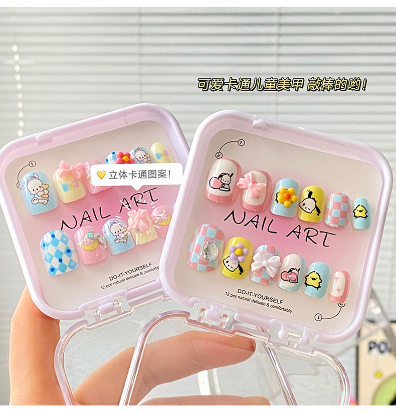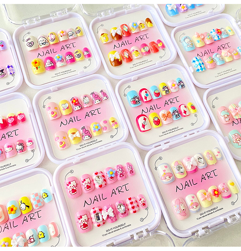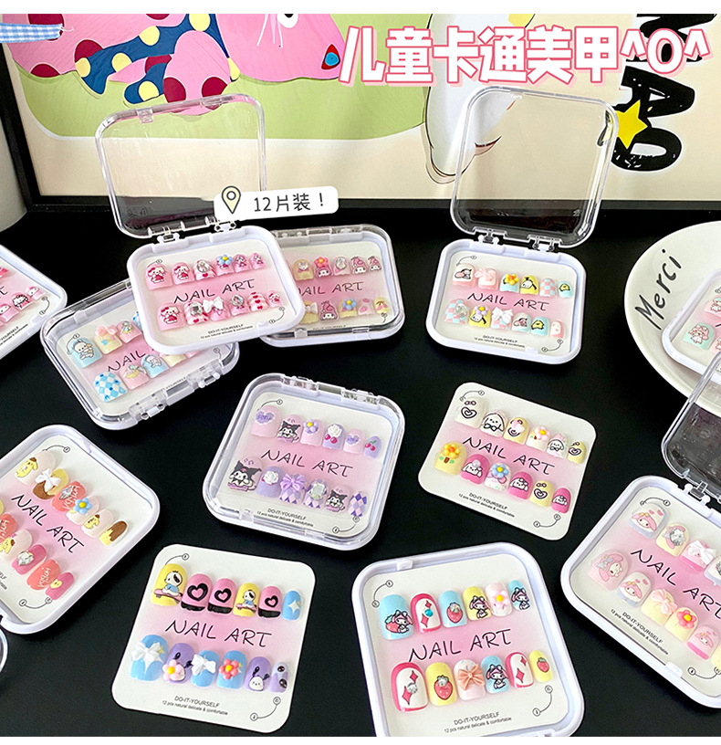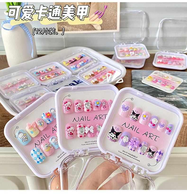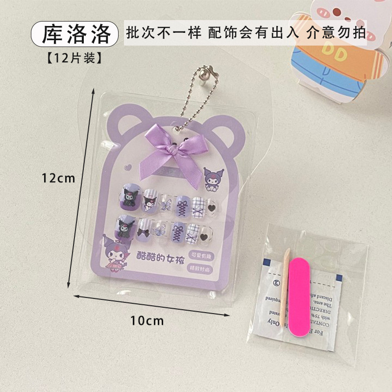 现货批发库洛米儿童指甲贴女孩萌趣美甲可拆卸女孩甜美美甲指甲片