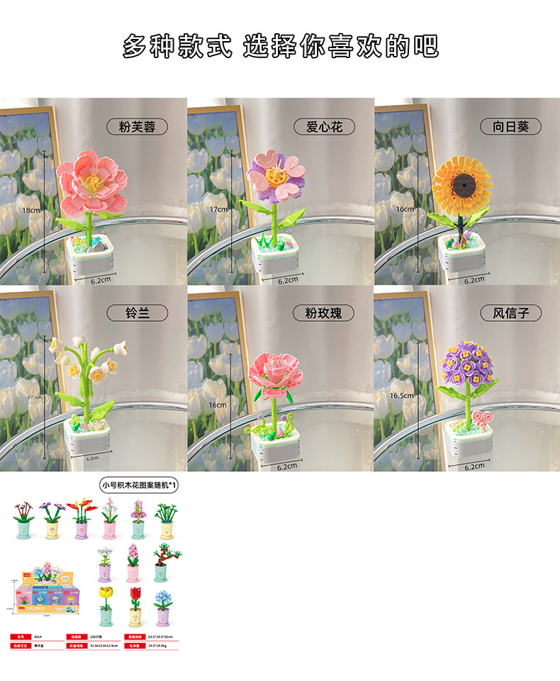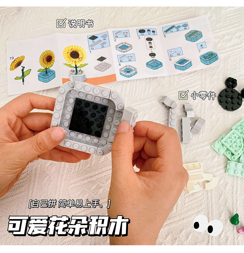儿童diy仿真花朵积木兼容乐高小学生手工拼装卡通益智玩具套装