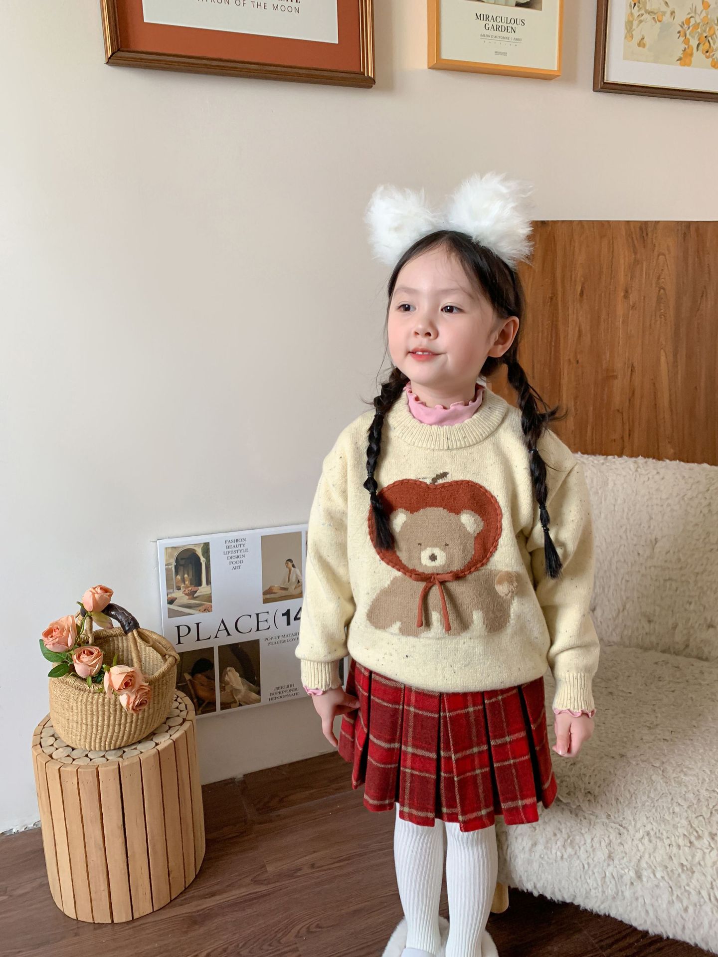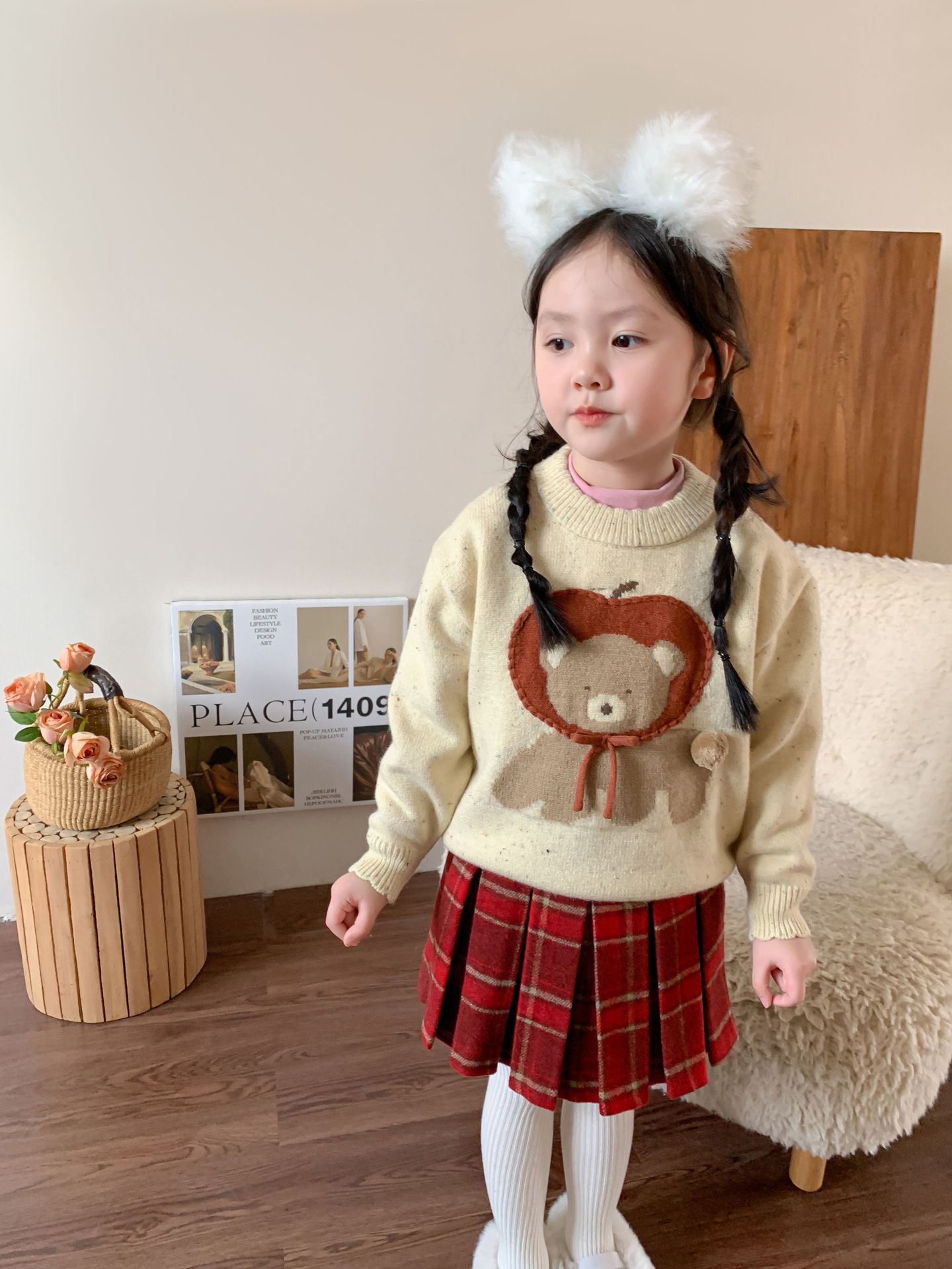 维木童装女童毛衣套装2024秋冬新款儿童韩版针织上衣裙子宝宝衣服
