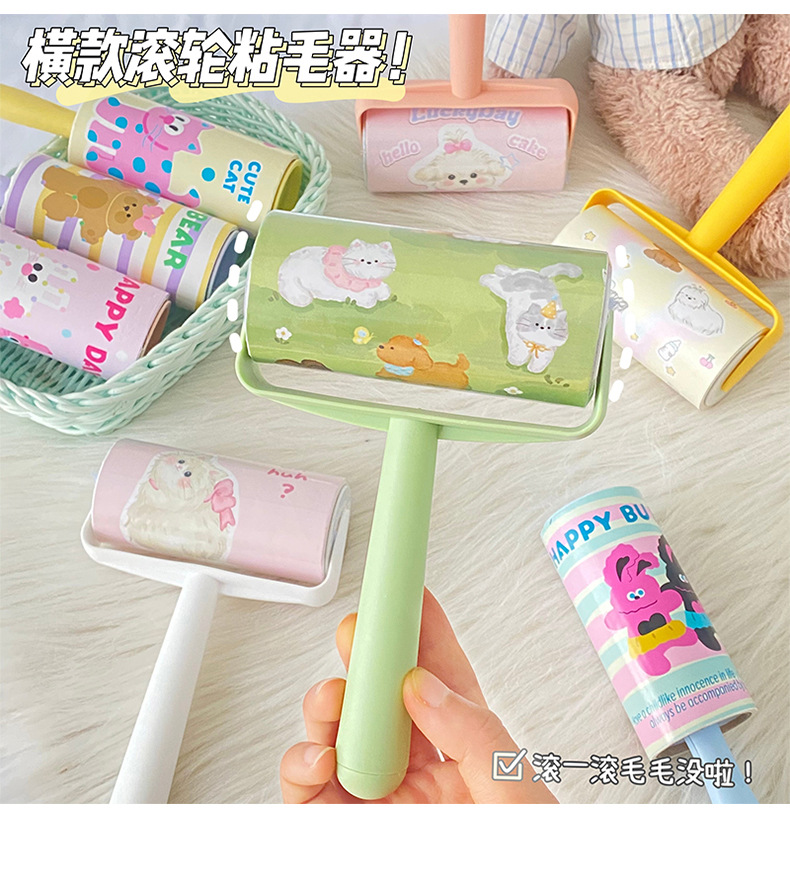 新款可爱卡通粘毛器 居家滚筒式手动粘毛器 冬季衣物可撕粘毛神器