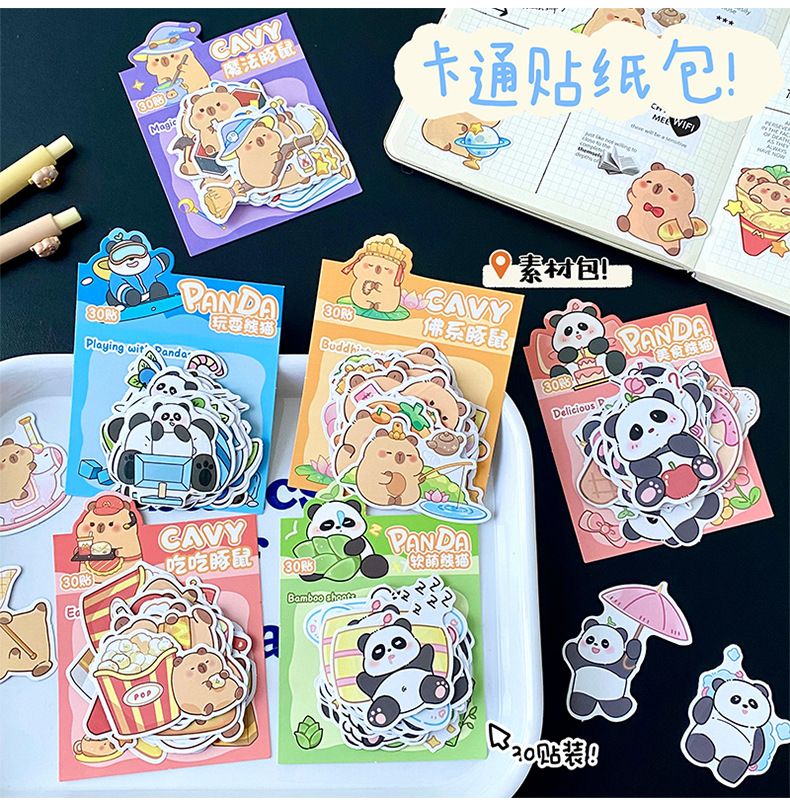 卡通熊猫贴纸 ins高颜值贴纸包学生日记手账装饰素材水杯贴画