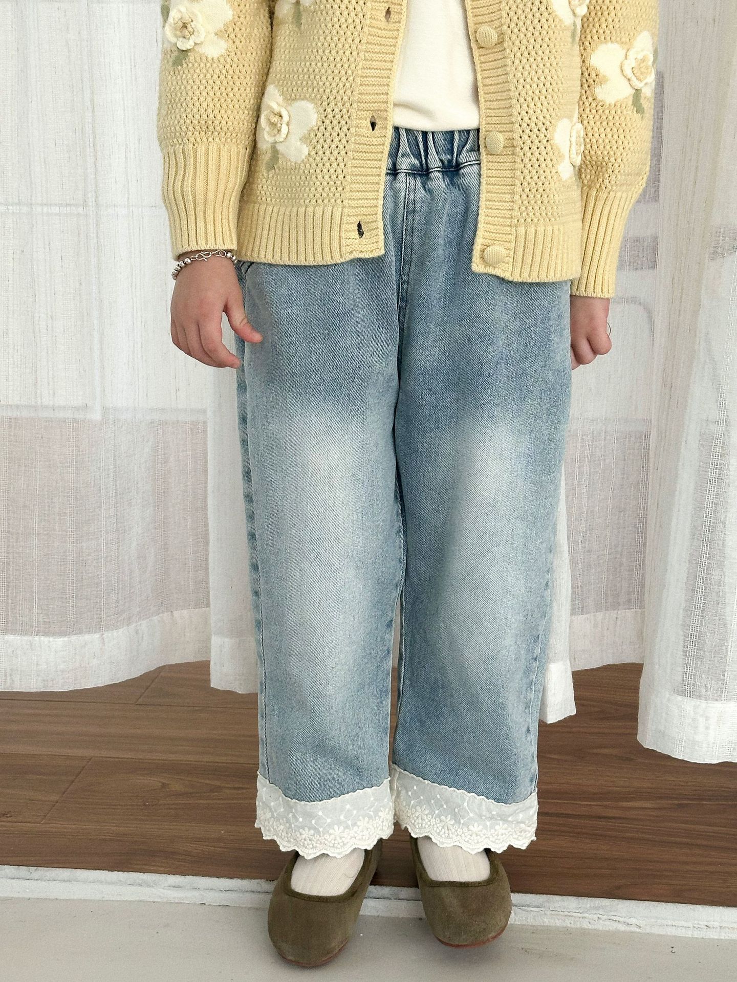维木童装儿童裤子2024秋季新款男女童韩版休闲洋气牛仔裤宝宝长裤