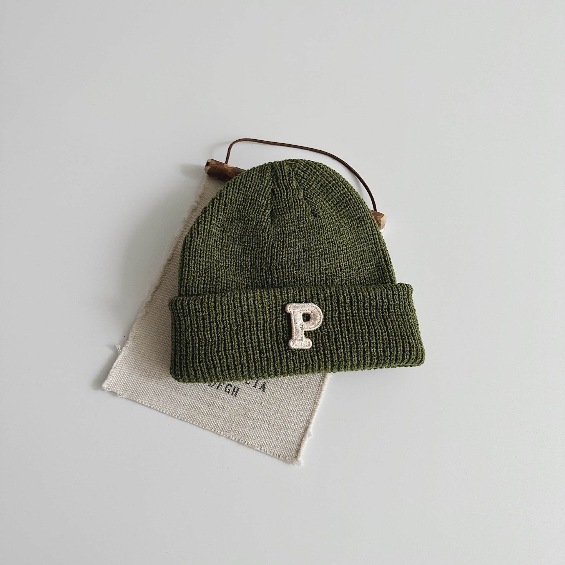 儿童帽子冬款男女童个性字母针织帽2宝宝保暖P字冷帽2023新款批发
