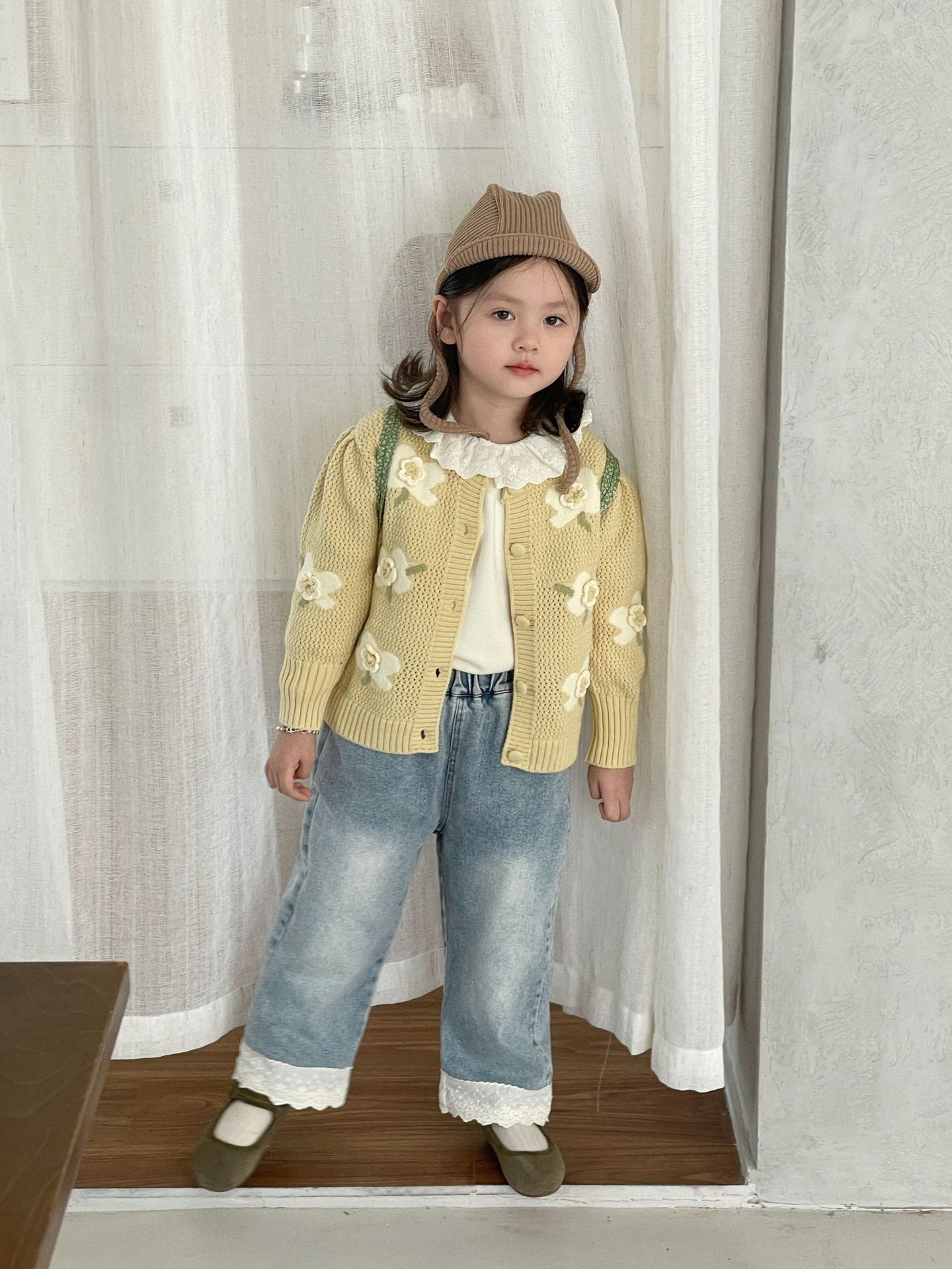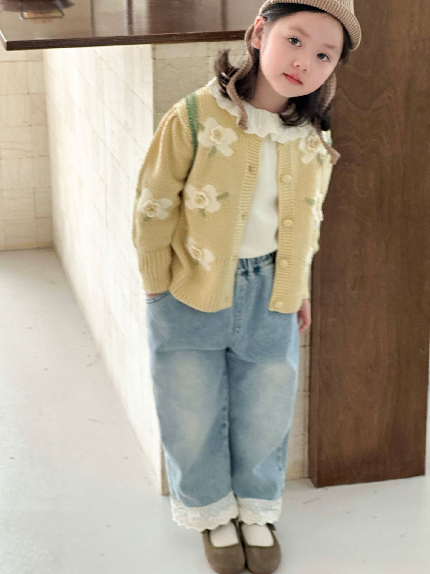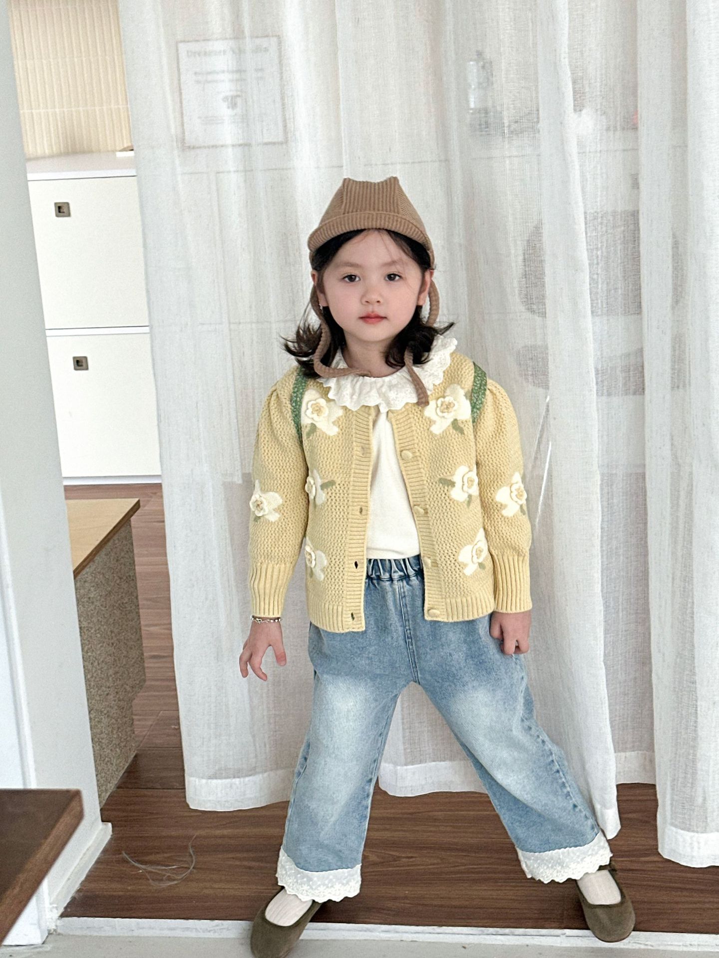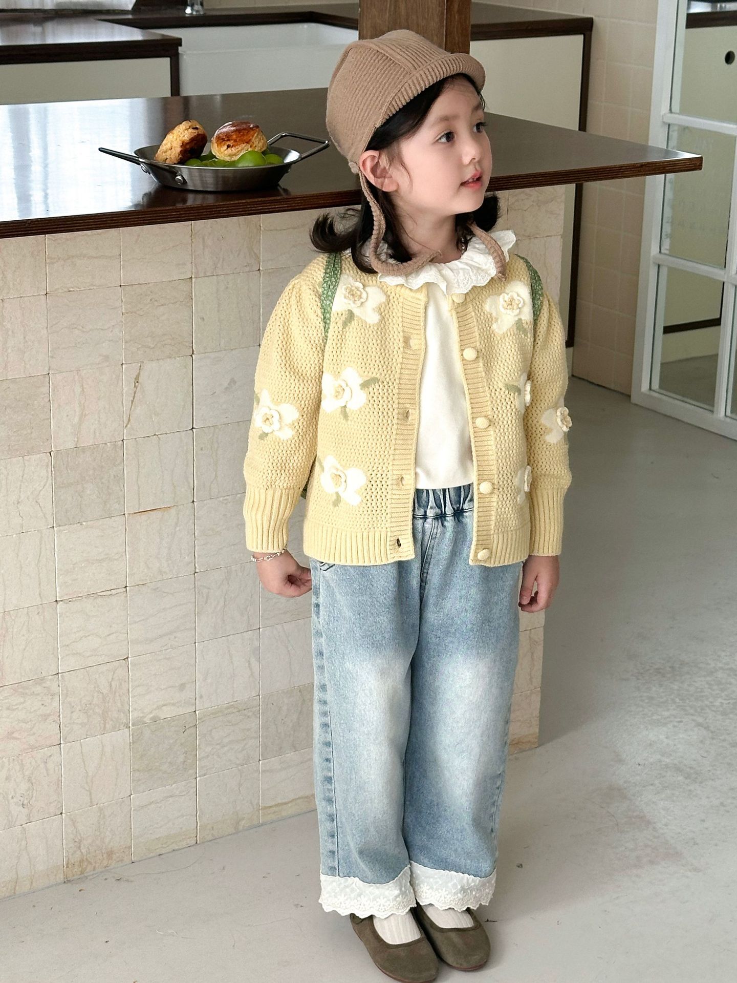 维木童装女童套装2024秋季新款儿童韩版针织外套牛仔裤宝宝上衣服