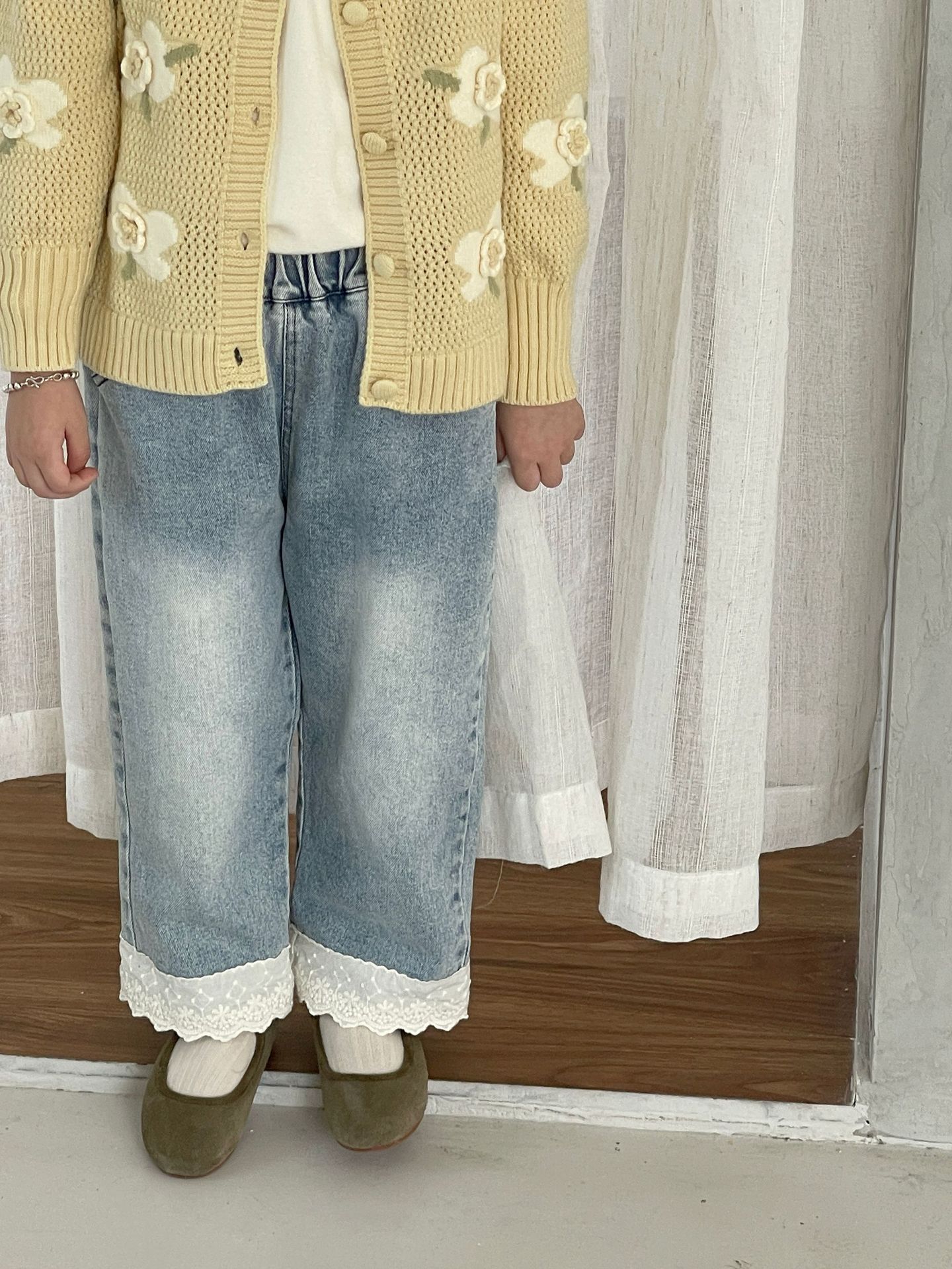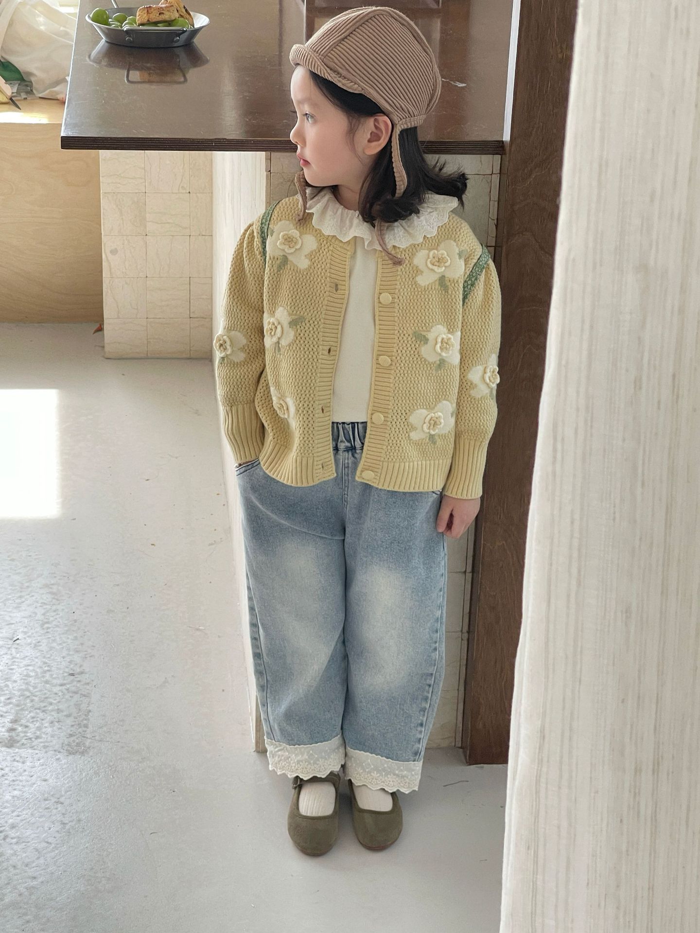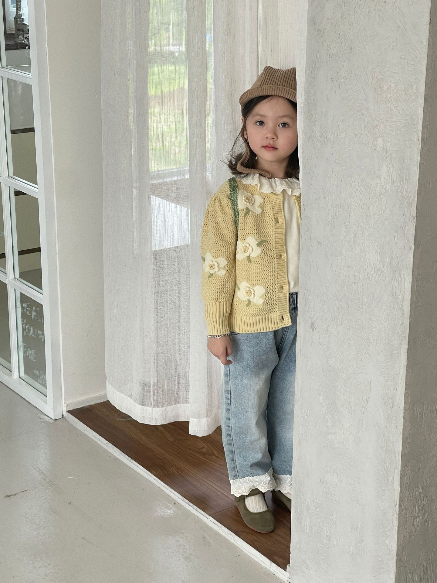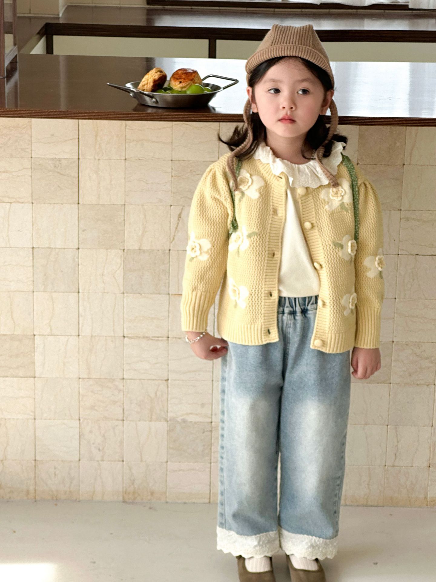 维木童装女童套装2024秋季新款儿童韩版针织外套牛仔裤宝宝上衣服