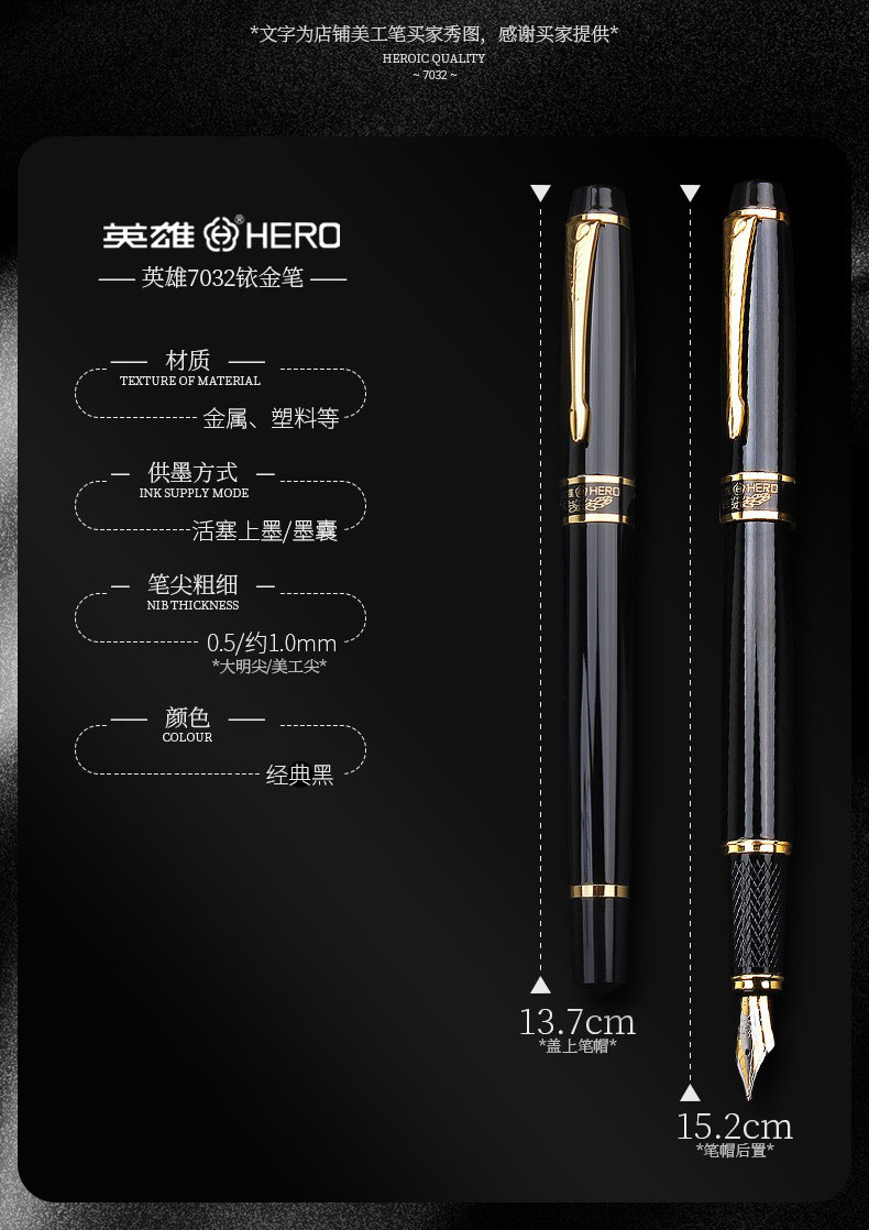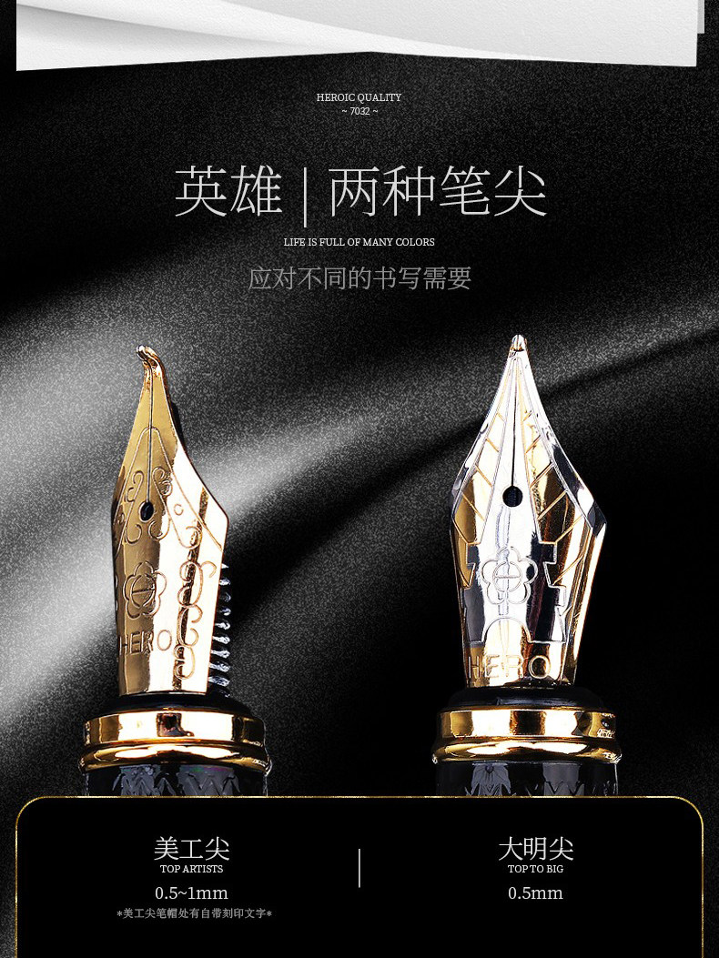 【英雄金属钢笔7032】美工笔签字笔商务办公送男士礼品套装正品