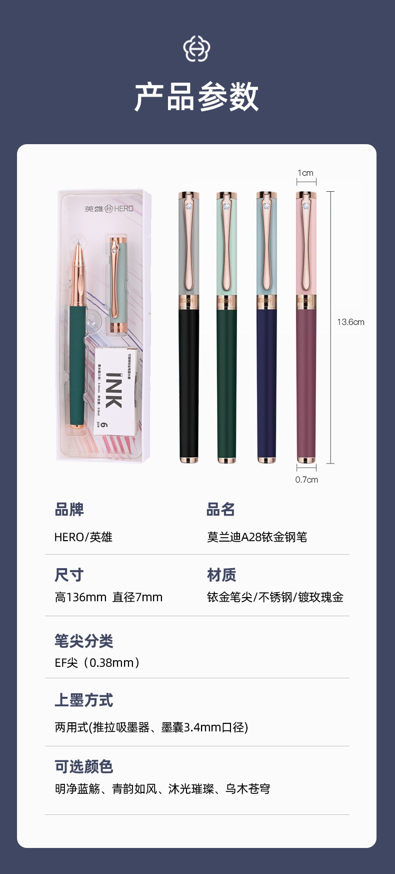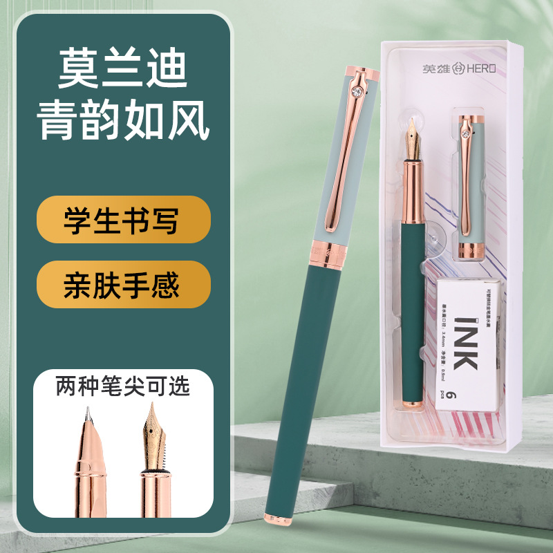 英雄学生金属彩色钢笔A28送小学生初中礼盒套装书写练字厂家正品