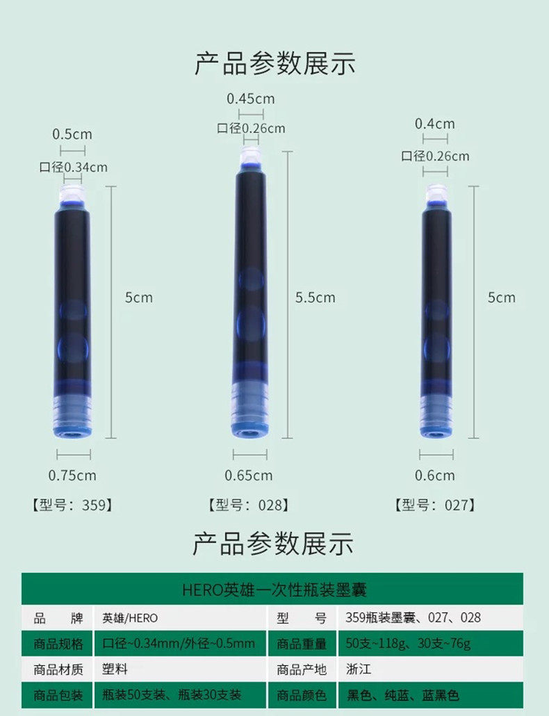 英雄正品 钢笔墨囊359 钢笔水墨囊可替换3.4mm口径墨囊 厂家直销
