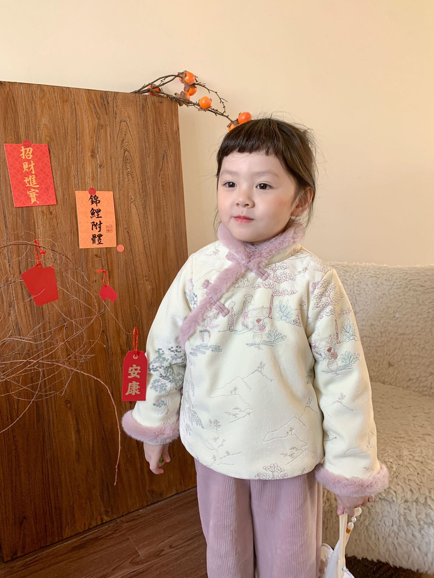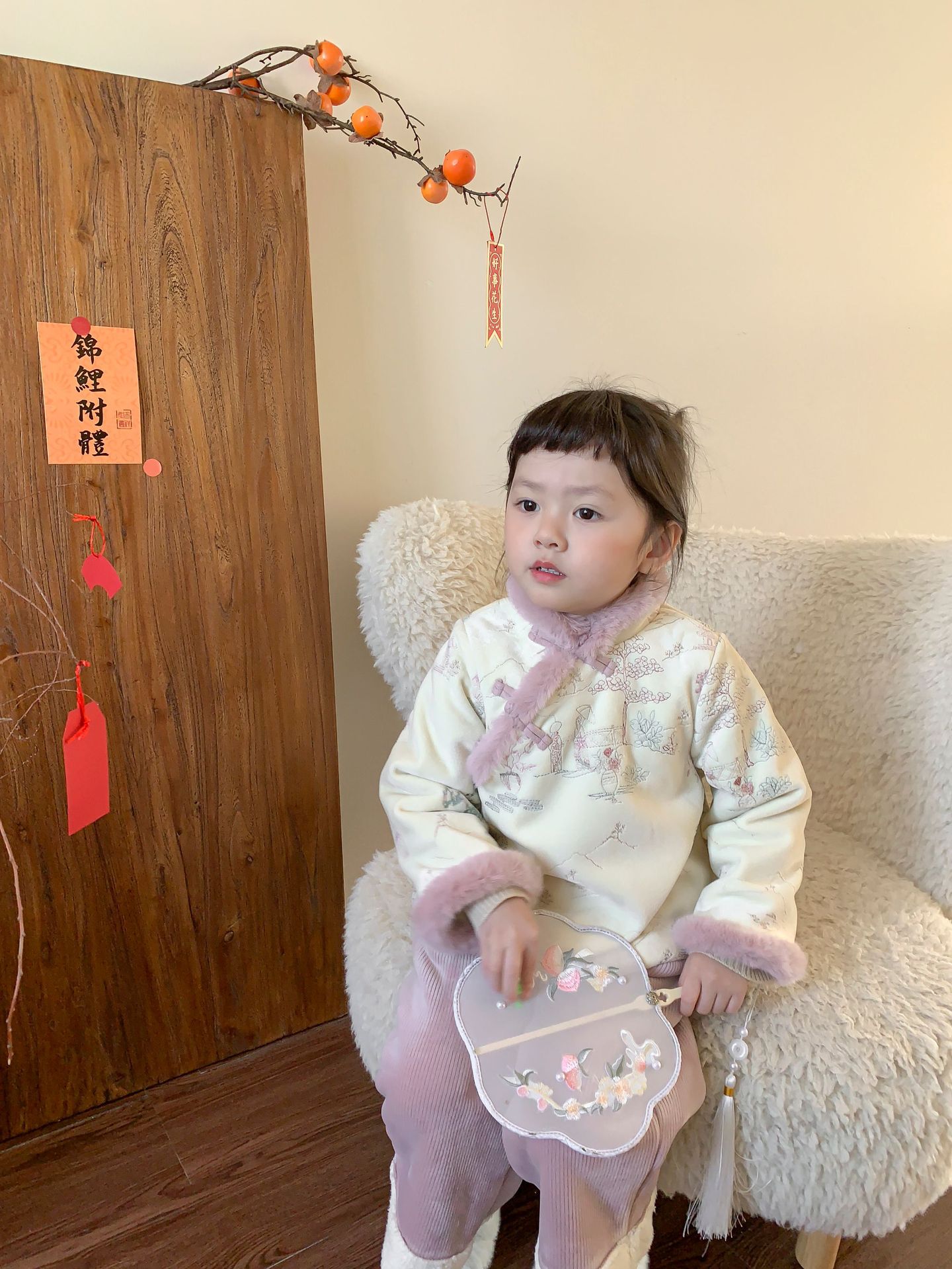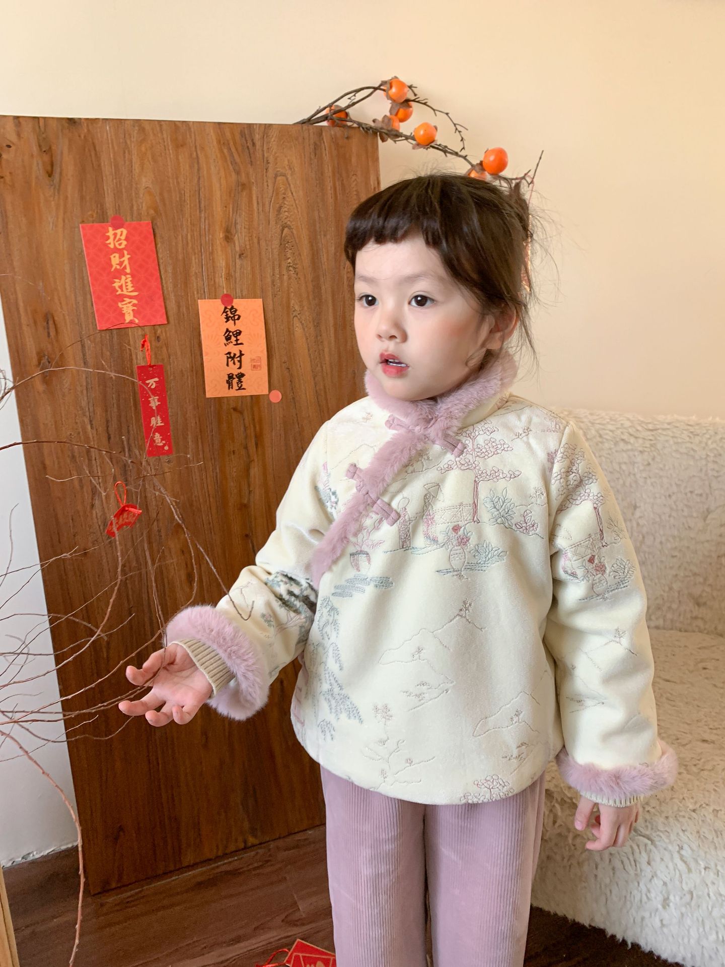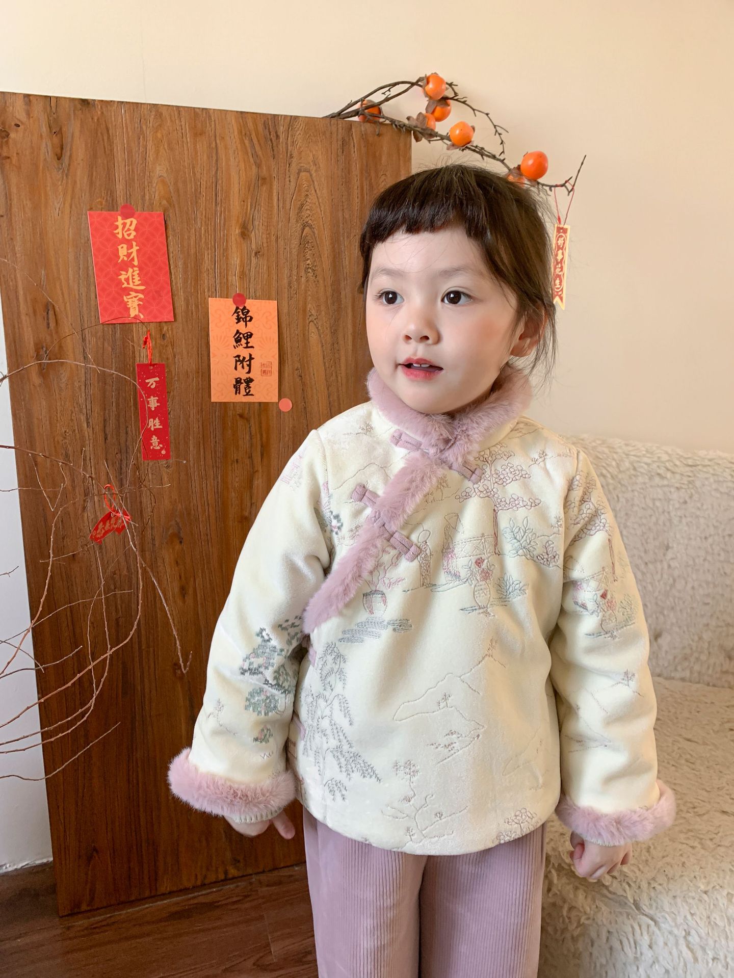 严选维木童装女童新年旗袍加绒冬装儿童中国风外套宝宝衣服拜年服
