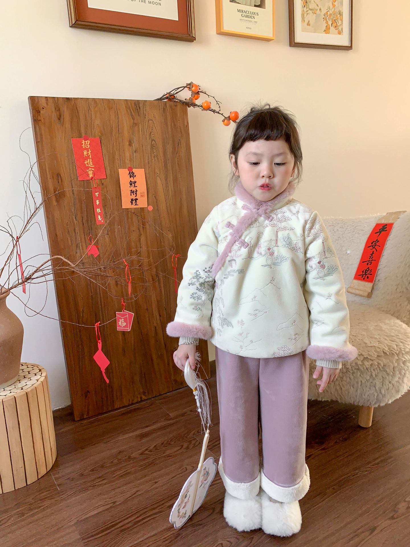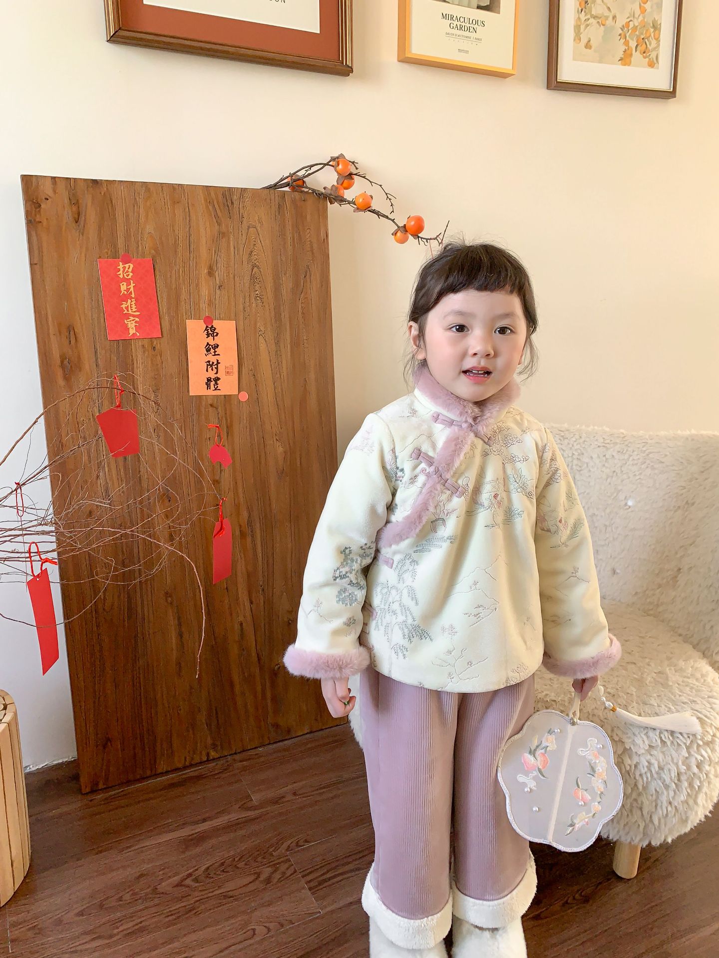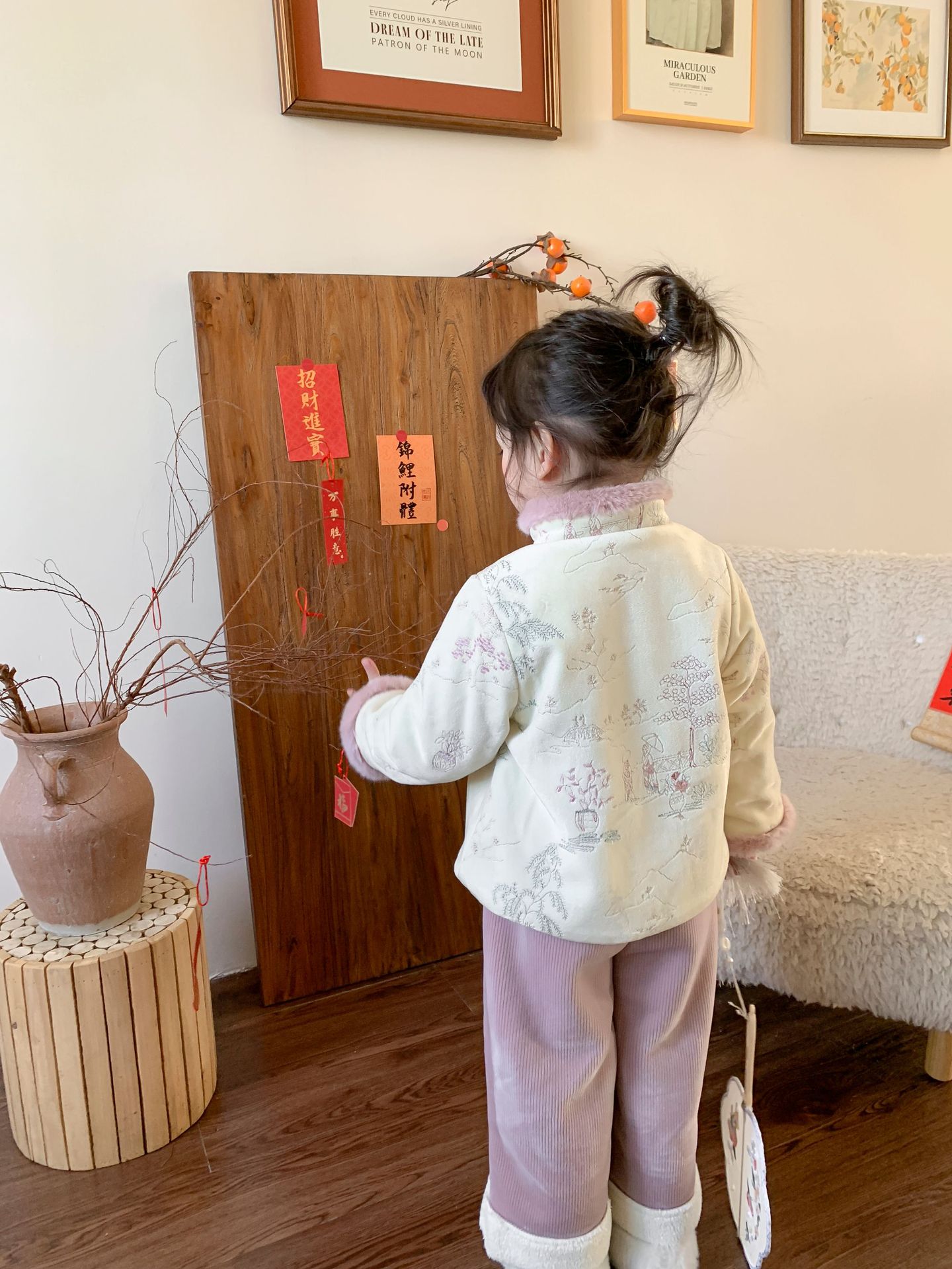 严选维木童装女童新年旗袍加绒冬装儿童中国风外套宝宝衣服拜年服