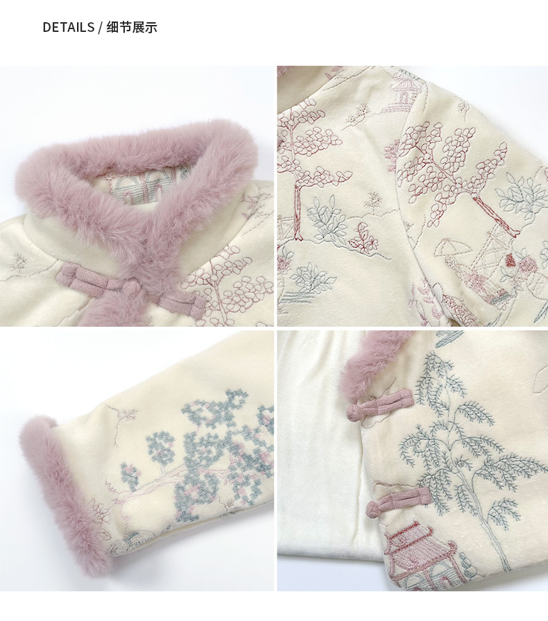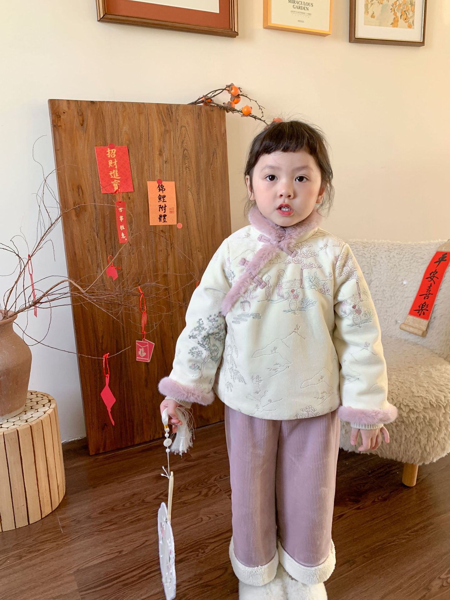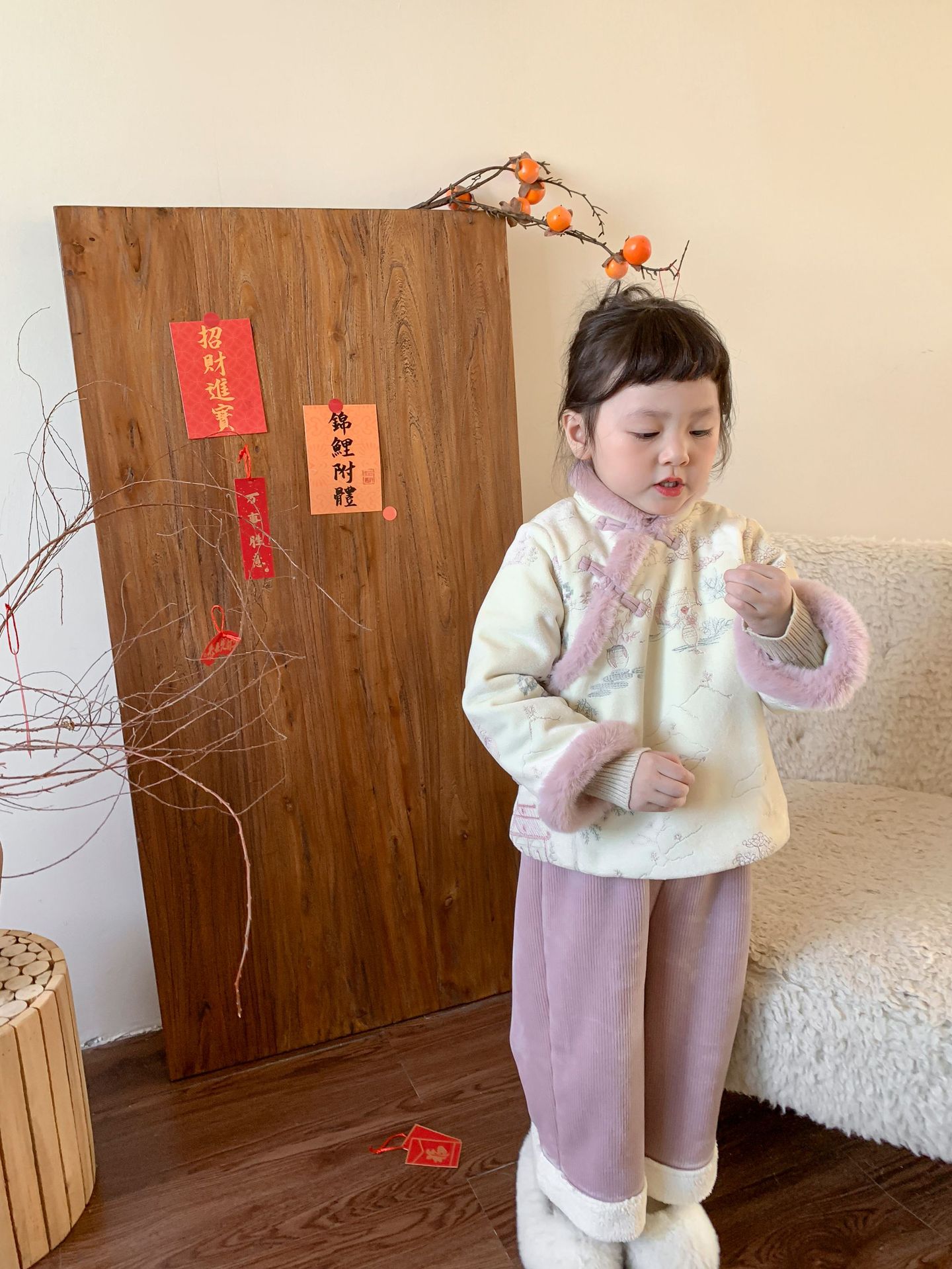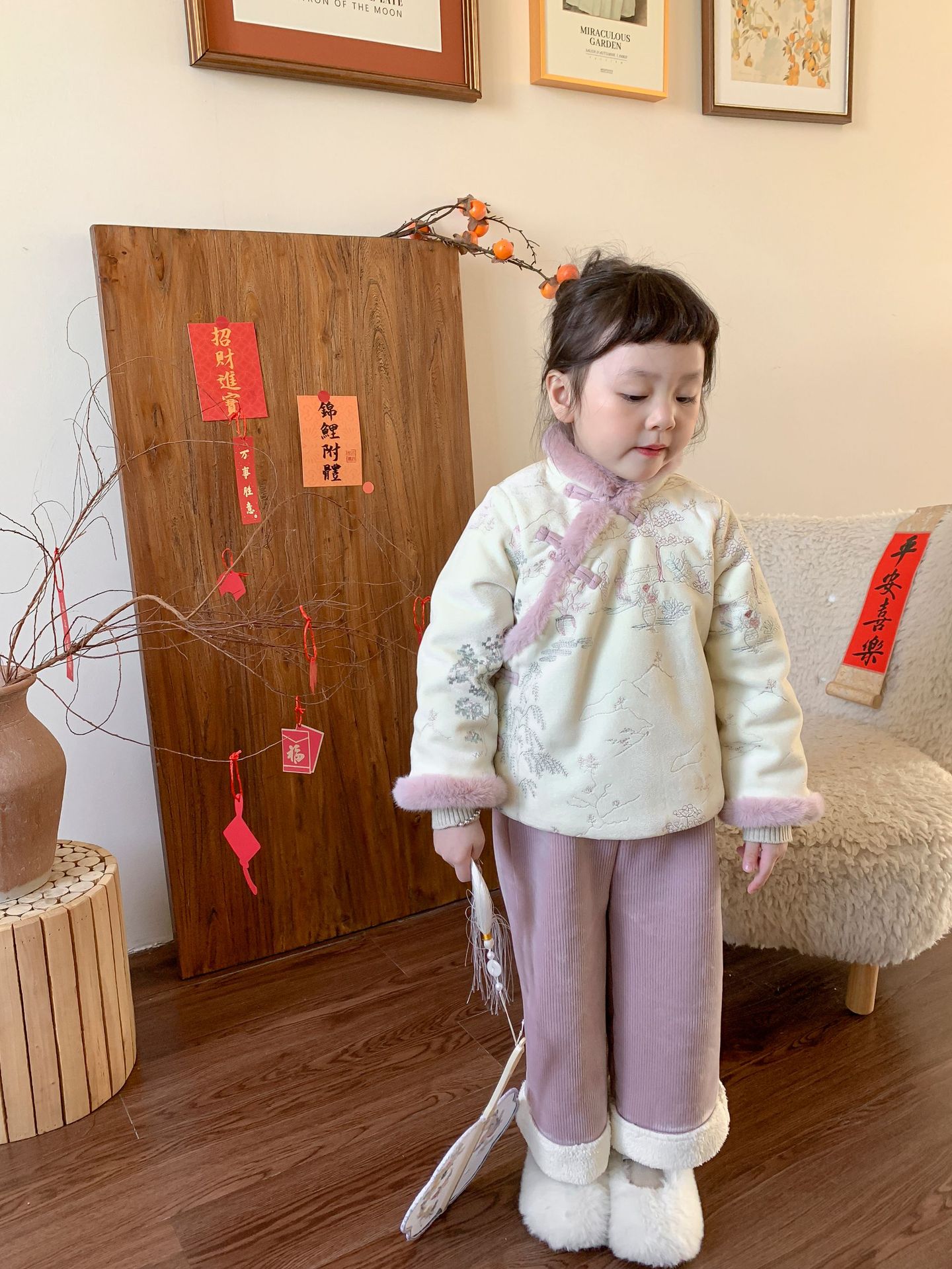 严选维木童装女童新年旗袍加绒冬装儿童中国风外套宝宝衣服拜年服