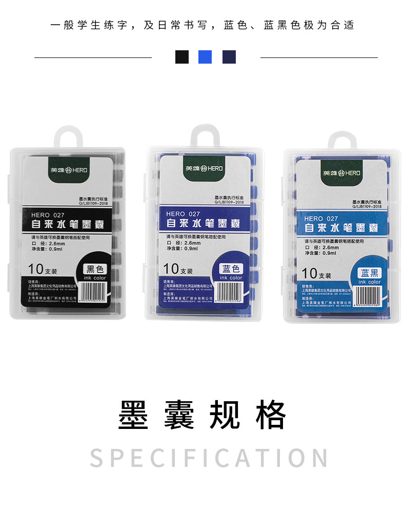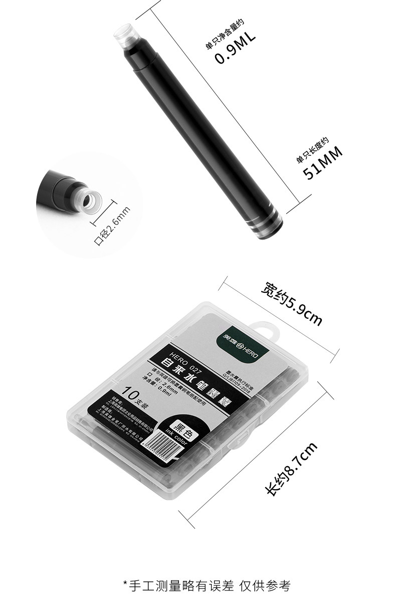【2.6mm口径墨囊】英雄墨水胆027墨囊配套方便携带专用厂家直销