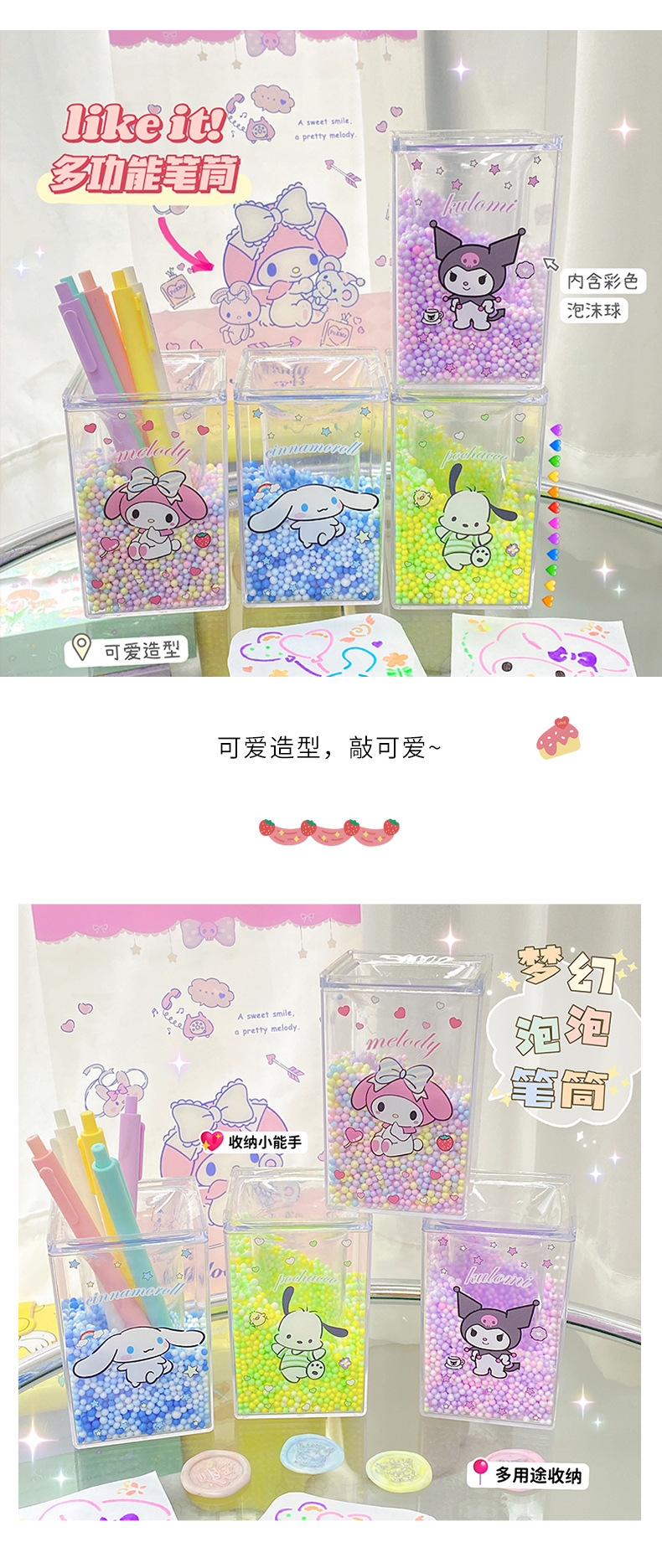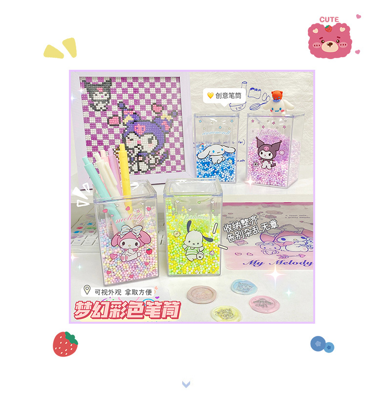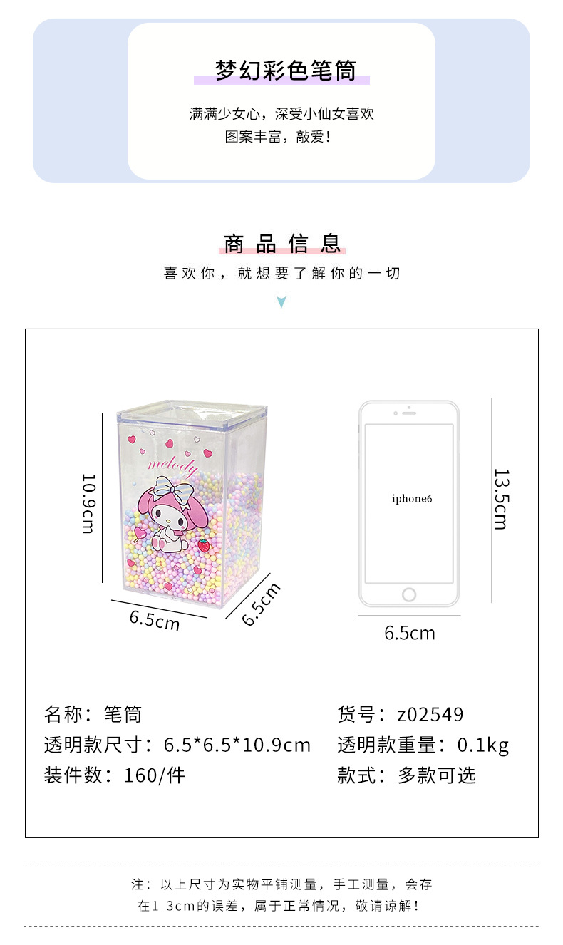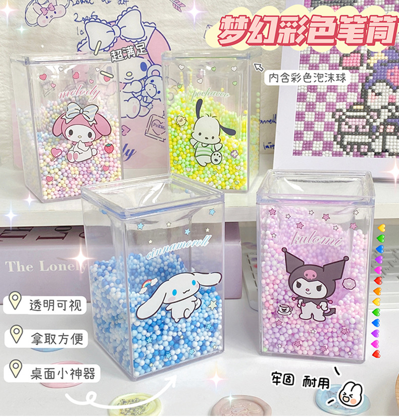 厂家直销可爱卡通笔筒方形透明学生儿童桌面收纳文具笔筒摆件批发