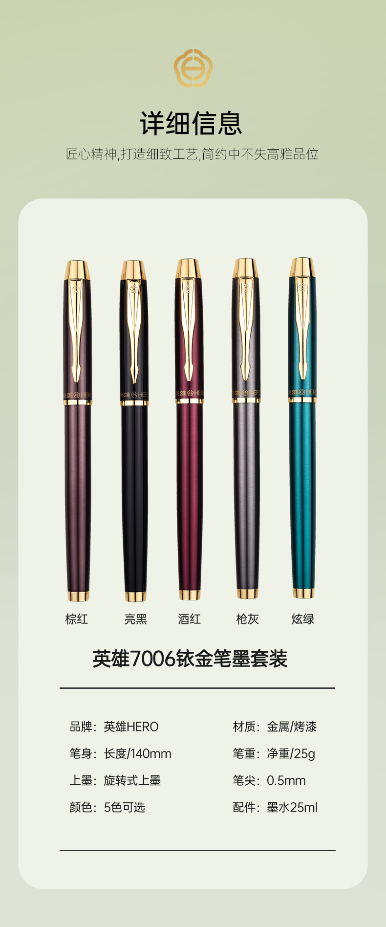 【英雄金属钢笔7006商务办公礼品】企业团购送男士礼盒套装官方正