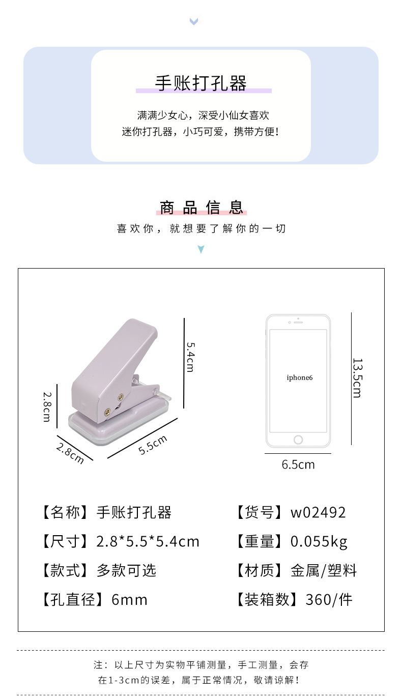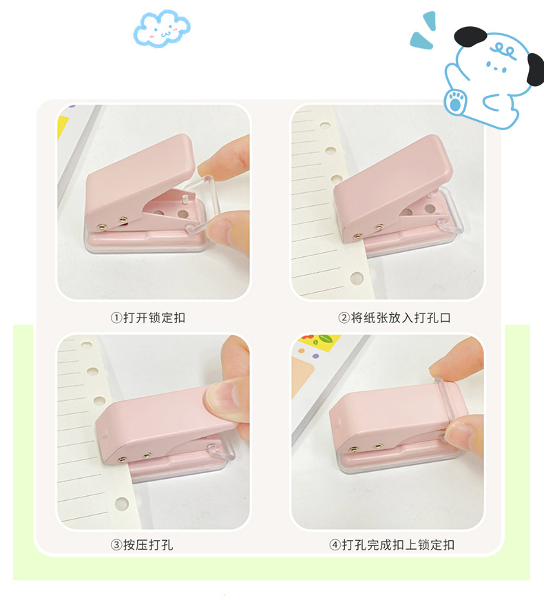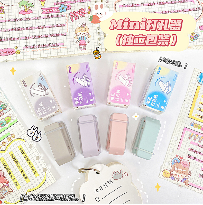 卡通迷你打孔器便携式 diy手账活页本装订工具学生纸张打孔机批发