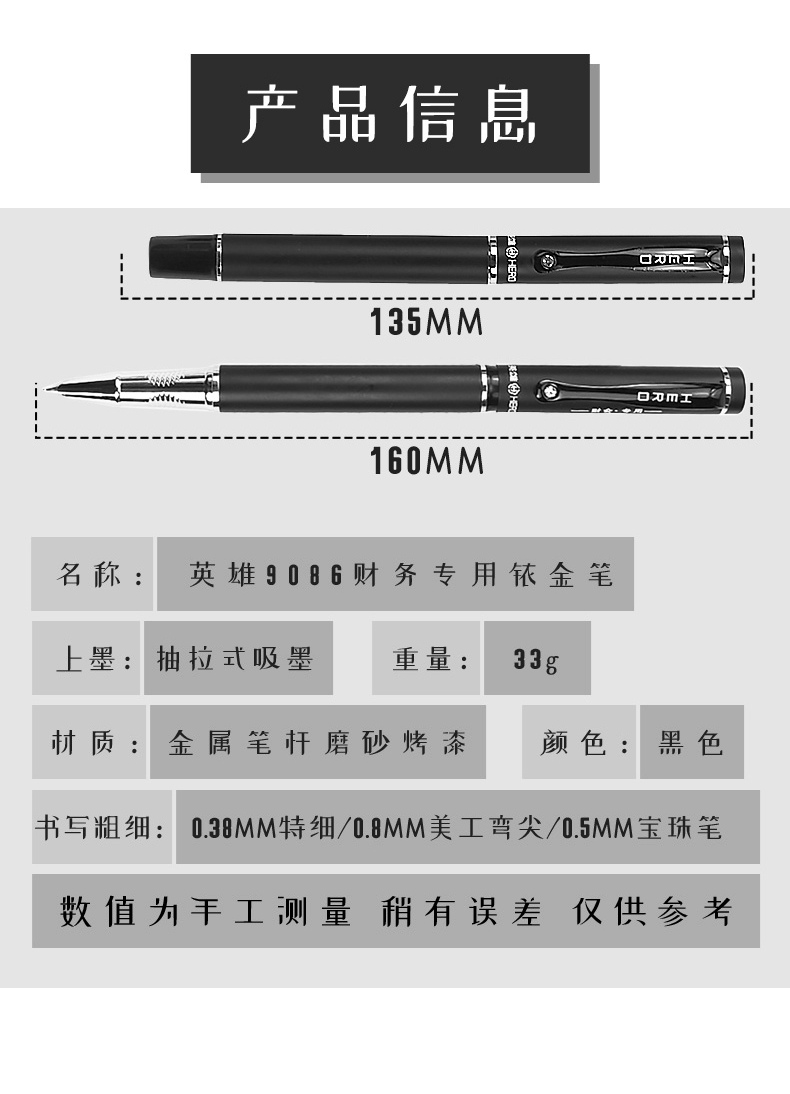 英雄钢笔9086暗尖铱金笔 细尖财会书写办公练字书法美工笔 厂直销