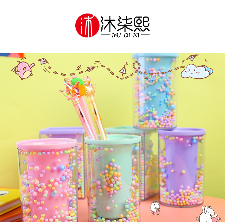 创意彩色泡沫笔筒透明学生儿童diy桌面收纳笔筒文具摆件用品批发