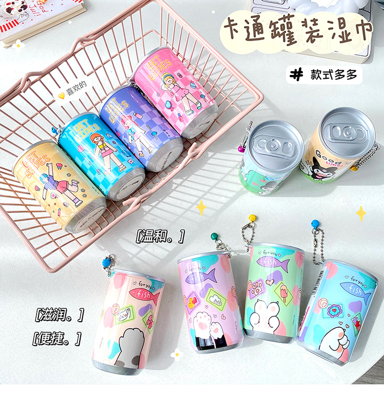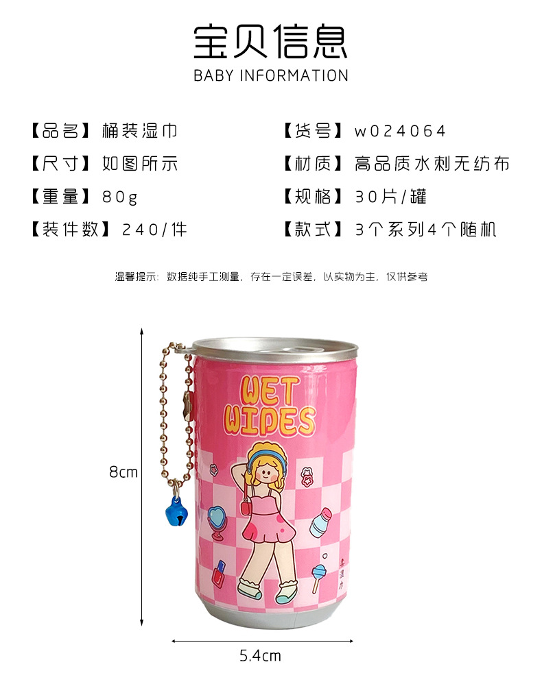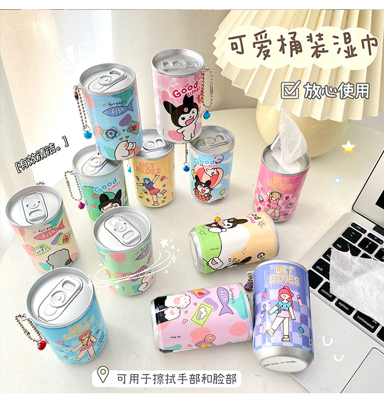 可爱卡通罐装湿巾30抽旅行便携迷你一次性湿纸巾桶装清洁卫生湿巾