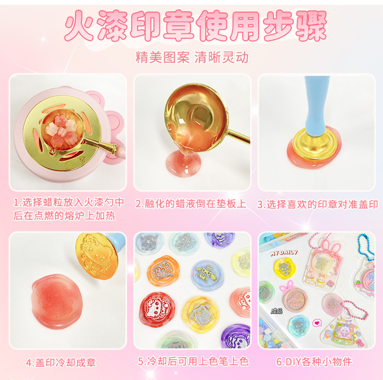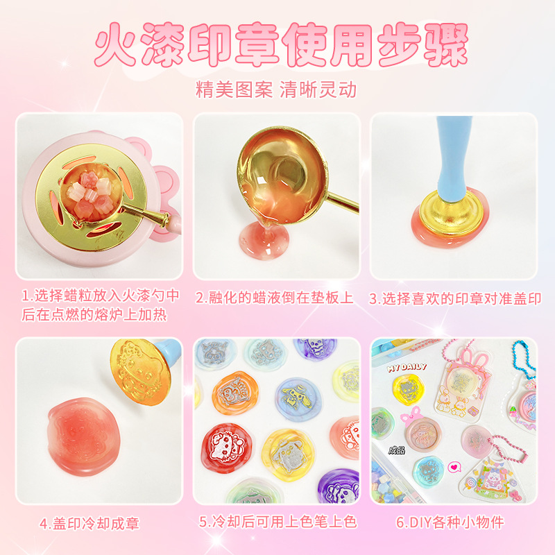 厂家直销火漆印章全套diy工具 儿童卡通蜡粒章头熔炉礼盒套装批发