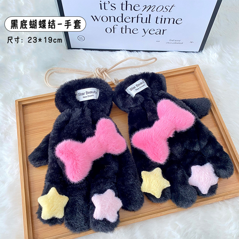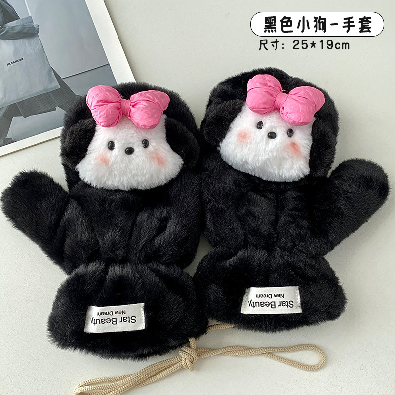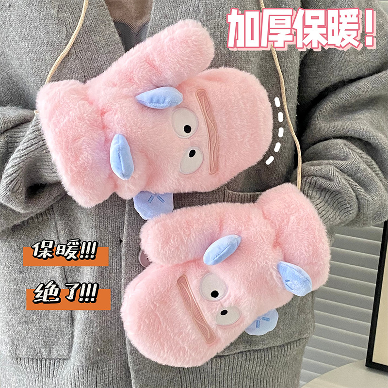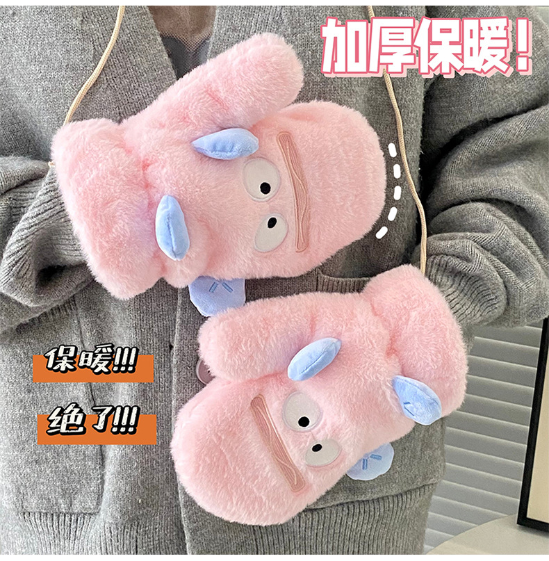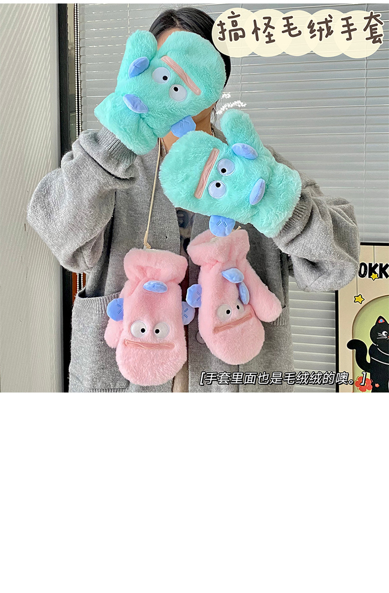 搞怪手套女骑车保暖冬天韩版学生加绒加厚卡通防寒手套女冬季可爱