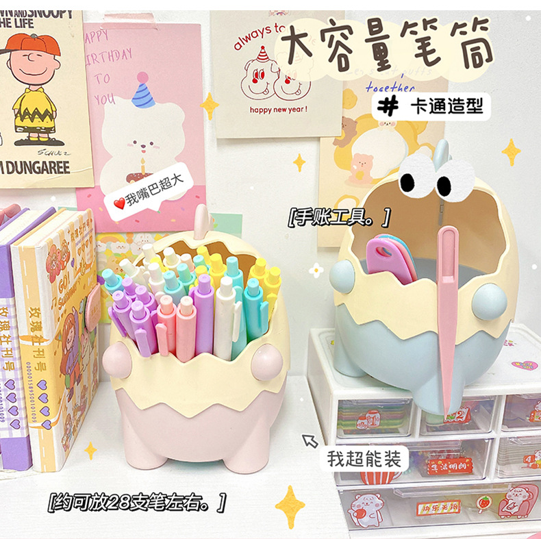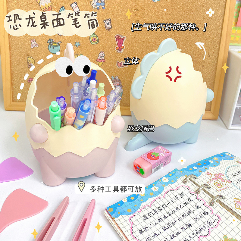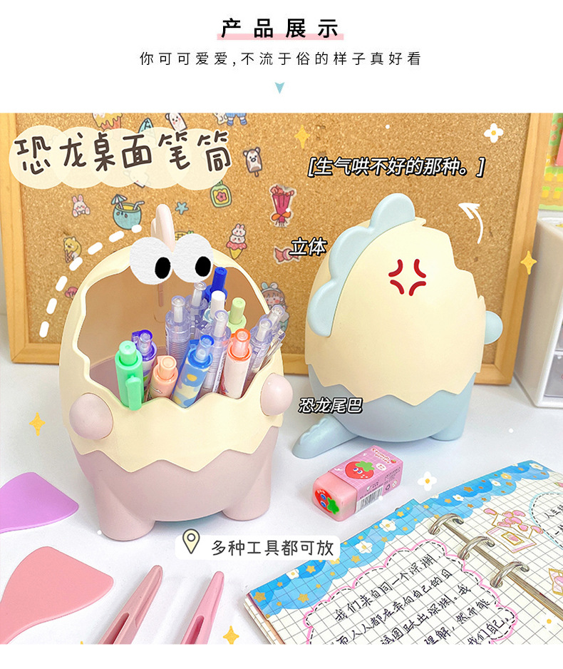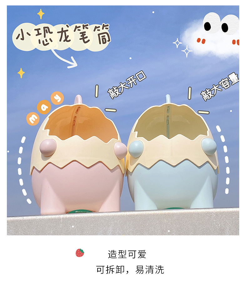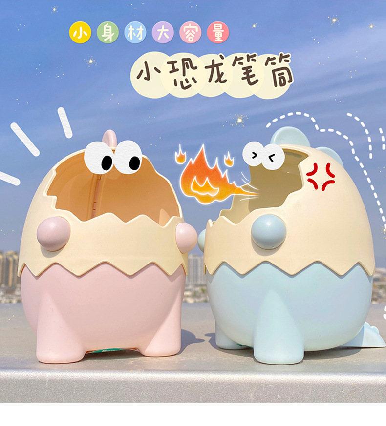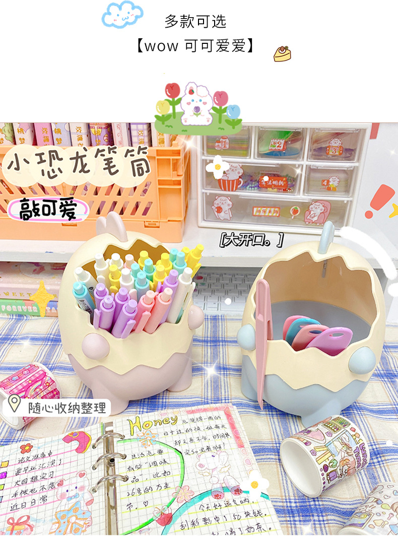 可爱儿童小恐龙笔筒文具收纳桶桌面摆件创意大容量化妆刷筒批发