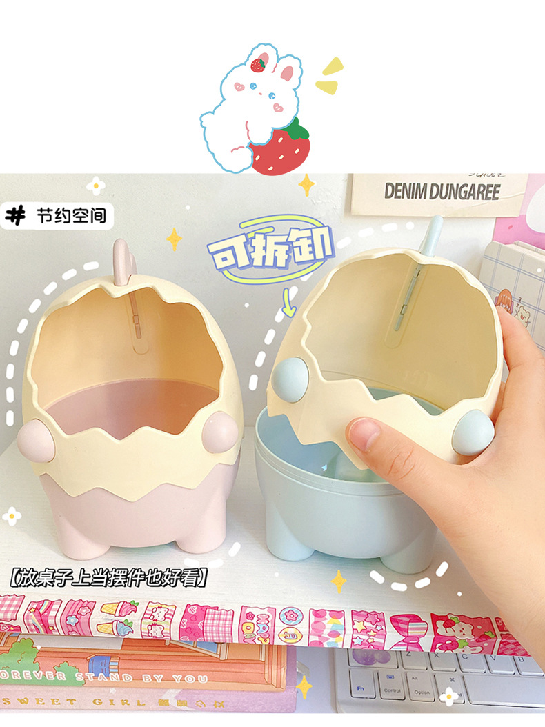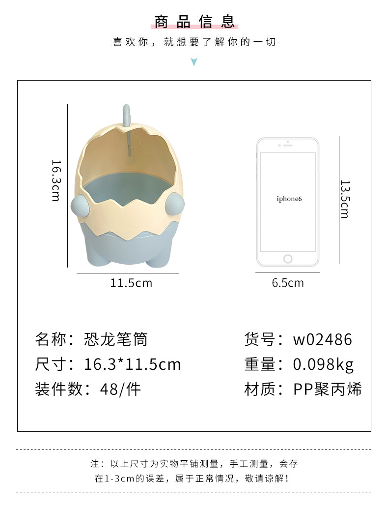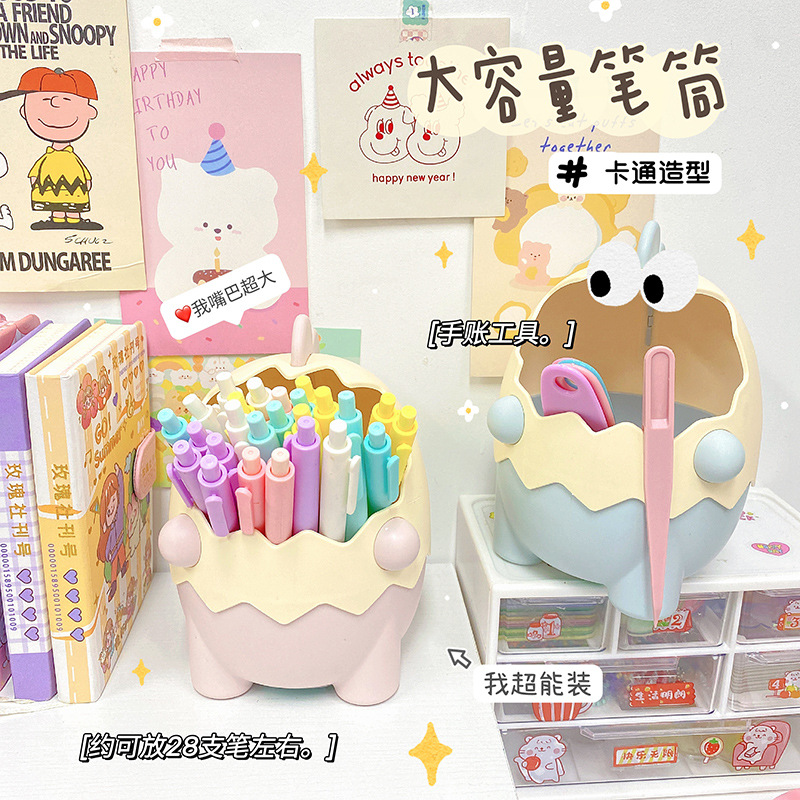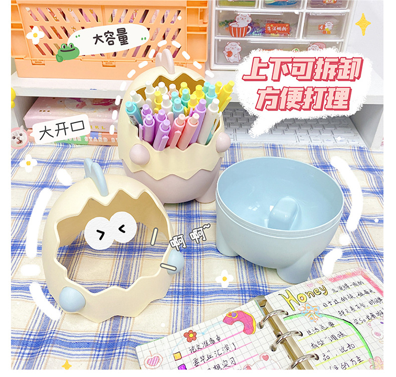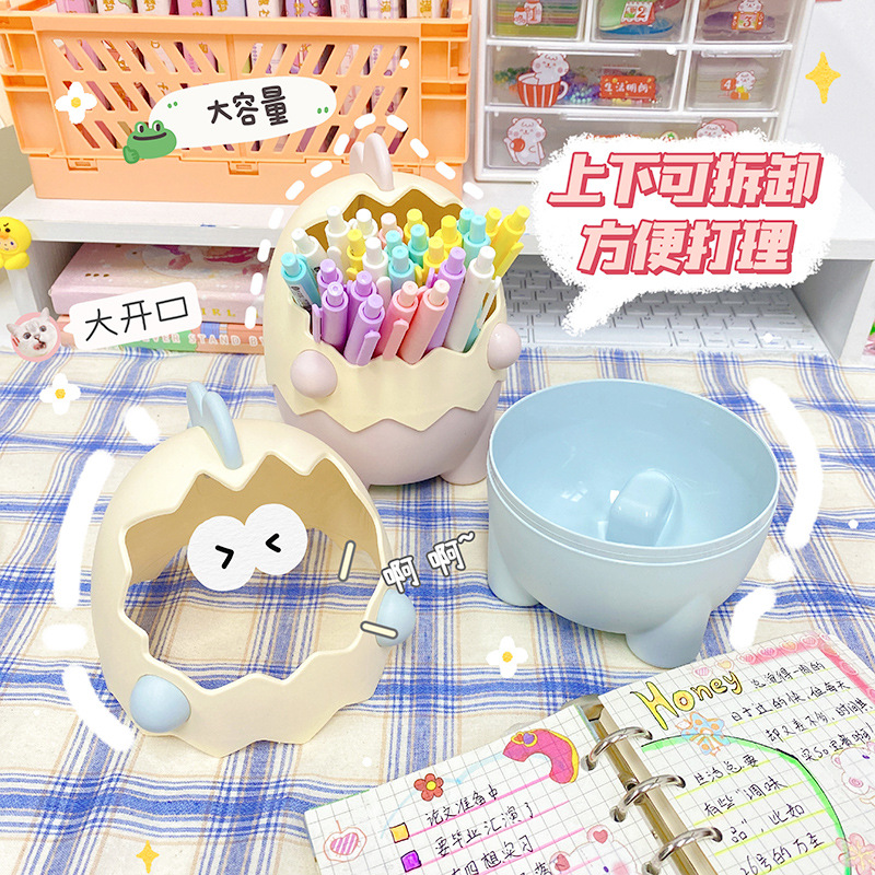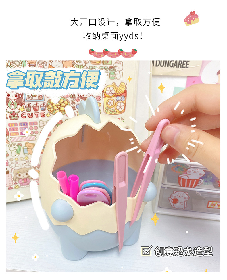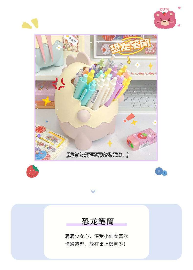 可爱儿童小恐龙笔筒文具收纳桶桌面摆件创意大容量化妆刷筒批发