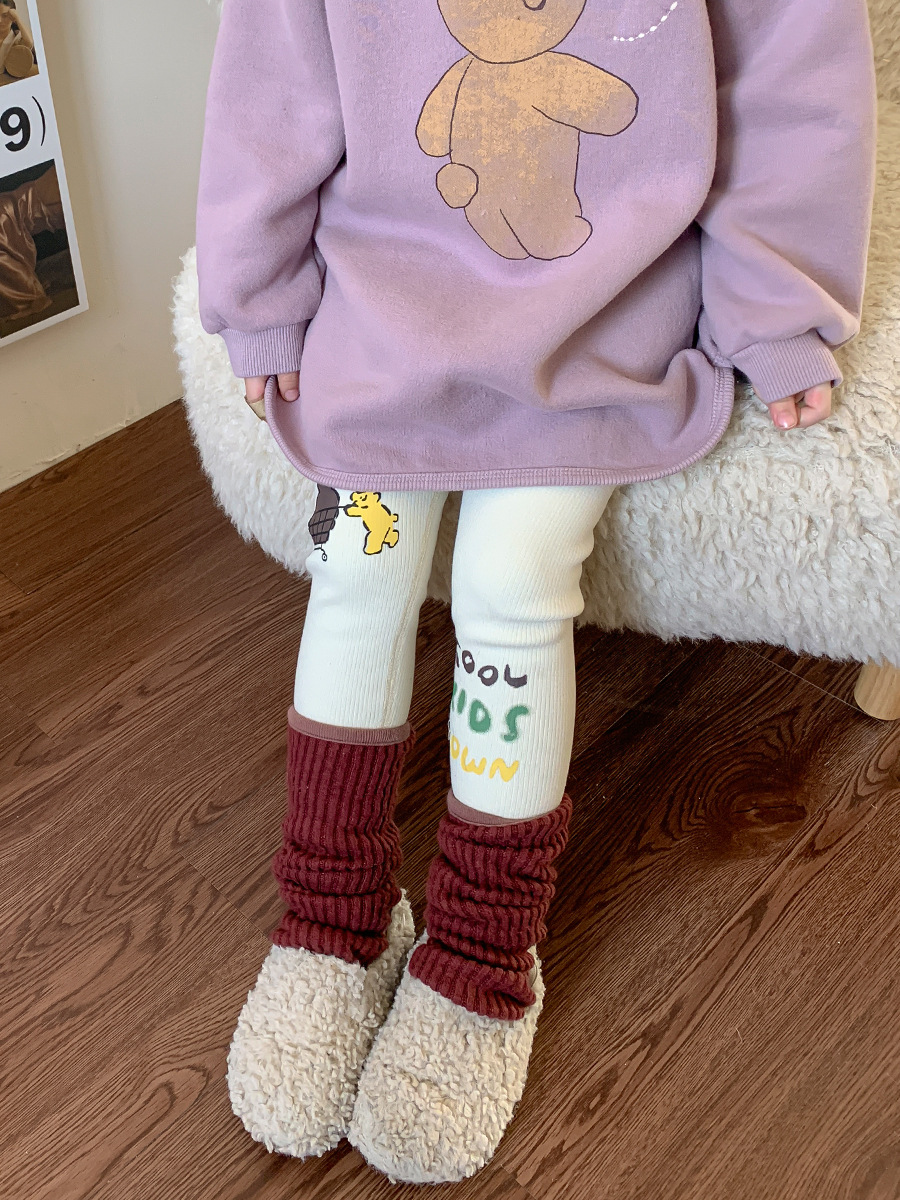 维木童装女童加绒打底裤秋冬新款儿童韩版秋裤卡通长裤女宝宝裤子