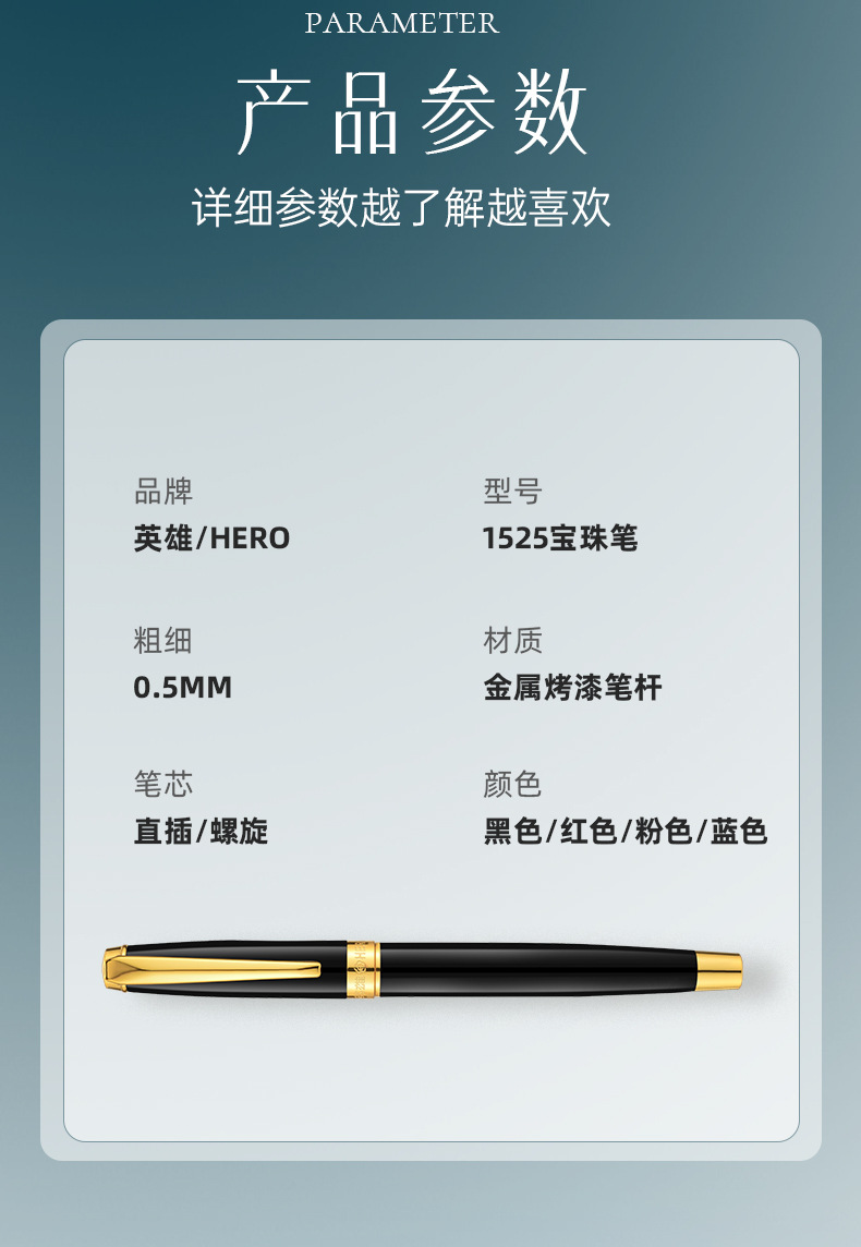 【英雄金属宝珠笔1525签字笔】送男士商务办公高档礼品套装厂家正