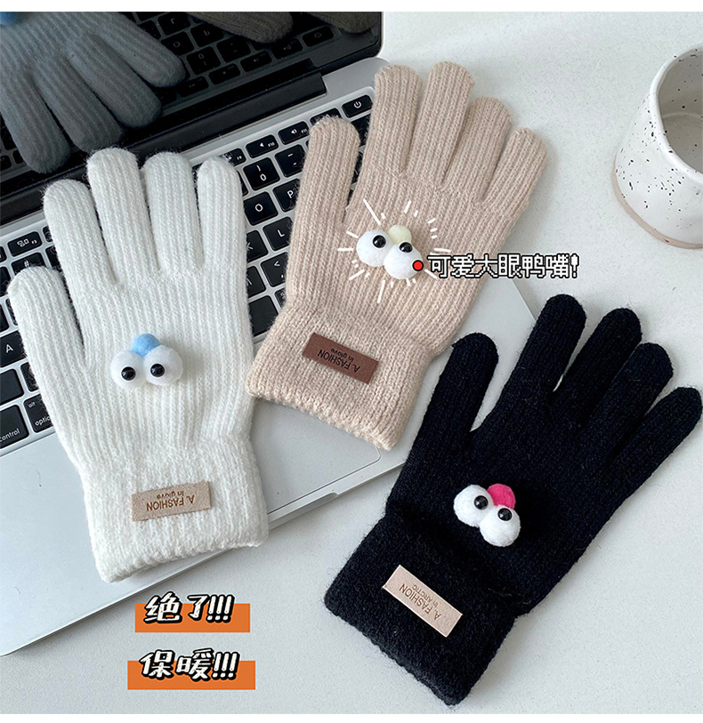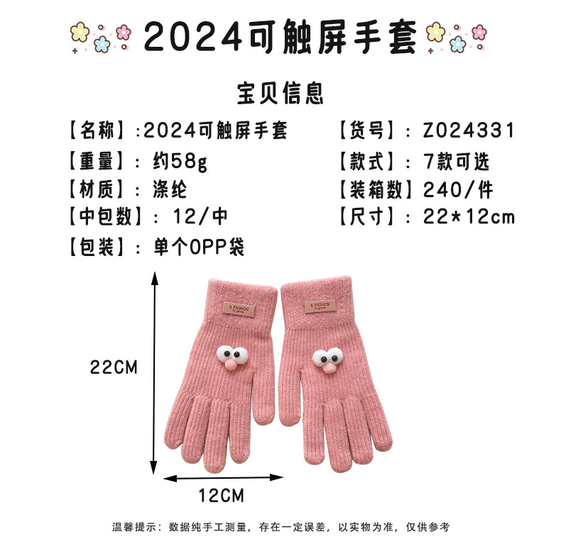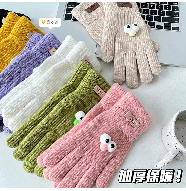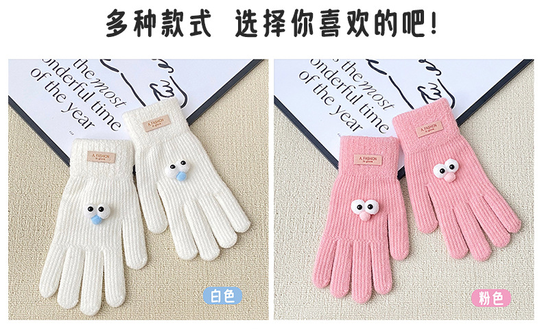 现货2024手套冬季女骑车加绒加厚可爱ins保暖触屏防寒五指冬批发
