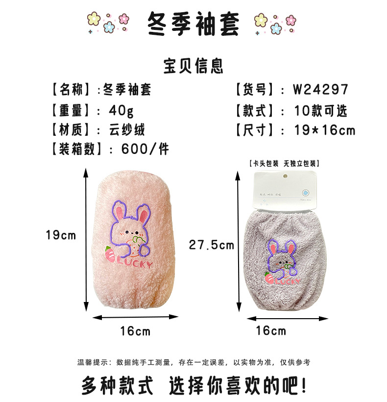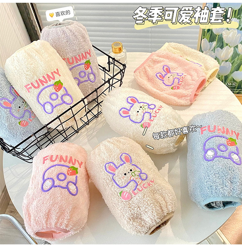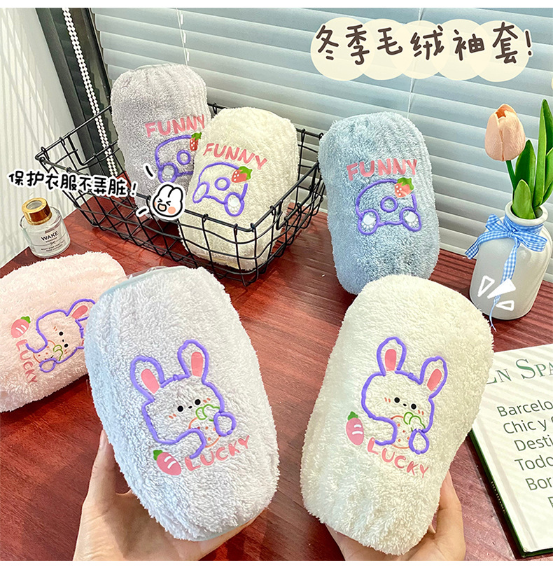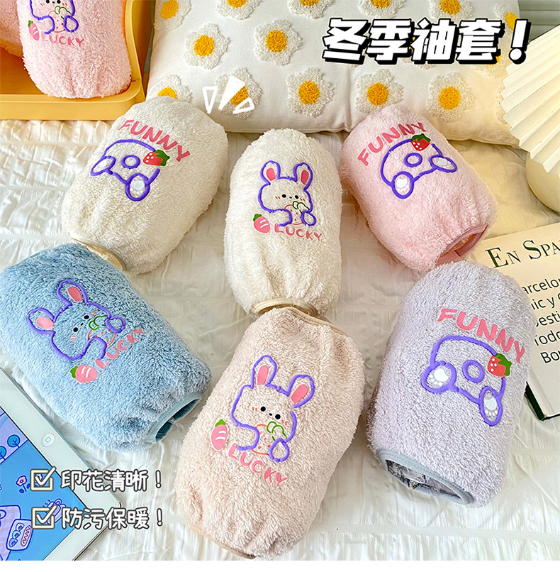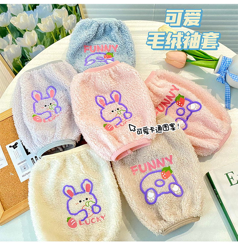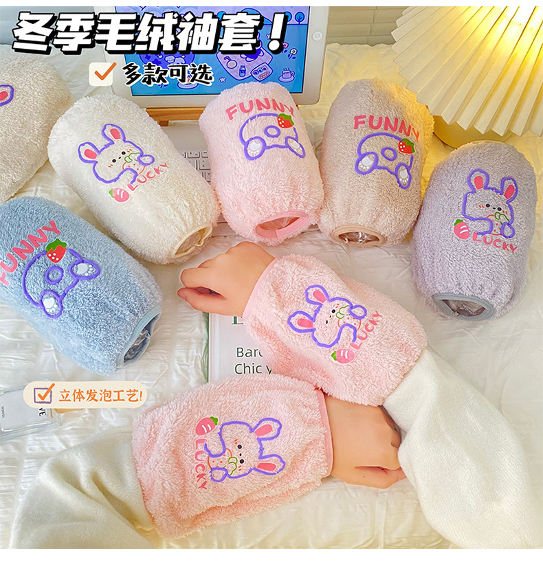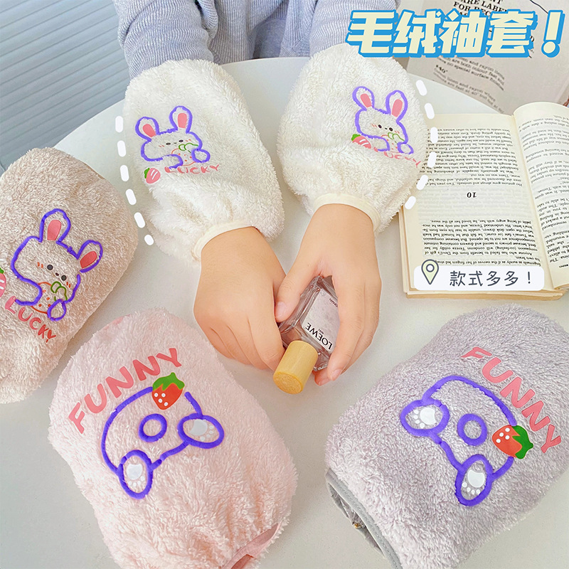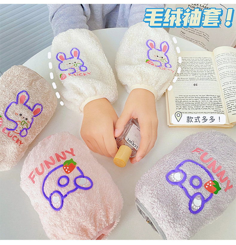 秋冬新款毛绒袖套 可爱卡通防污袖套 少女心居家办公长款套袖保暖
