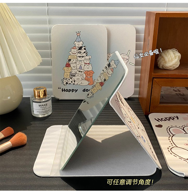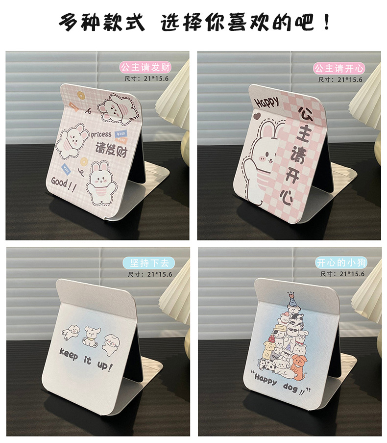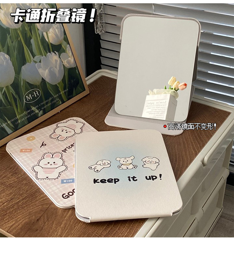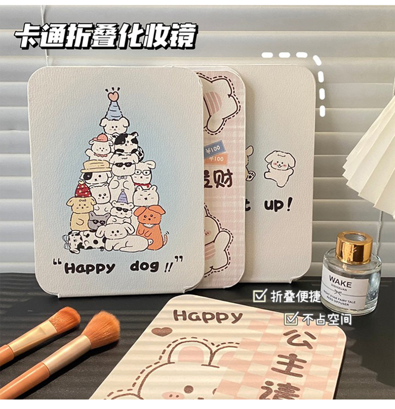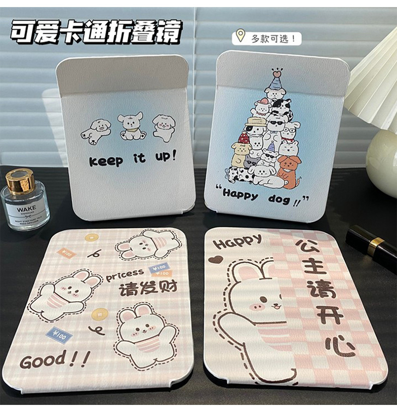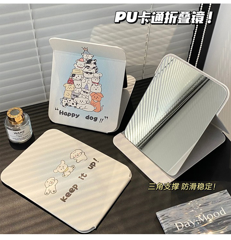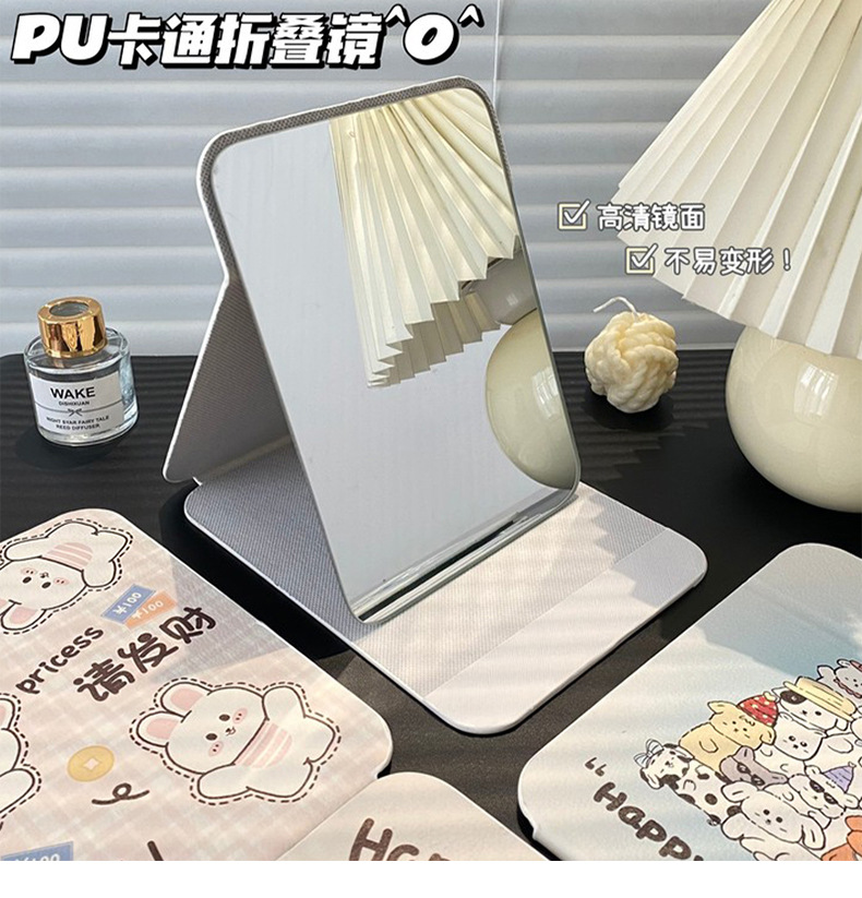 ins全屏折叠镜PU面化妆镜学生宿舍梳妆镜台式桌面可立家用镜批发
