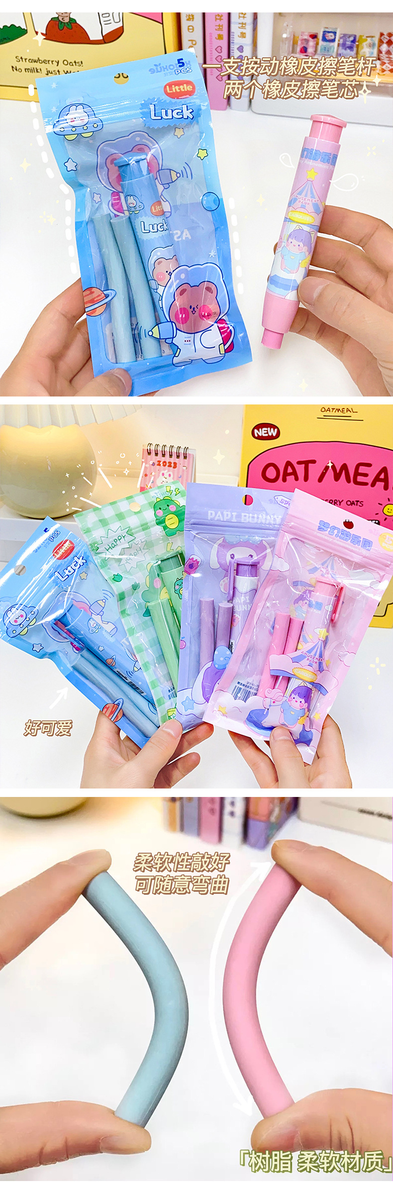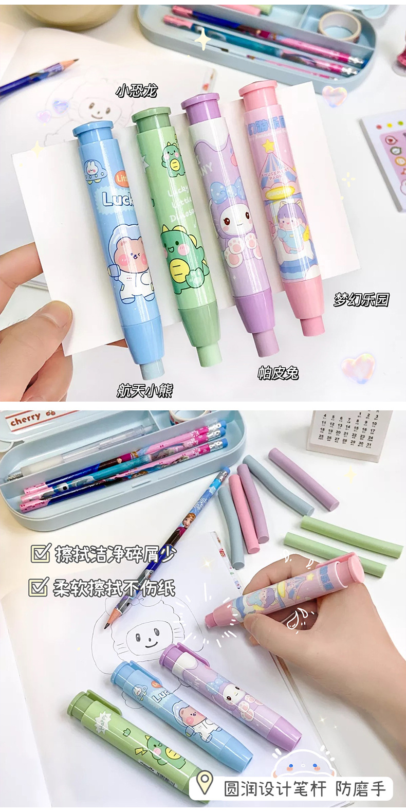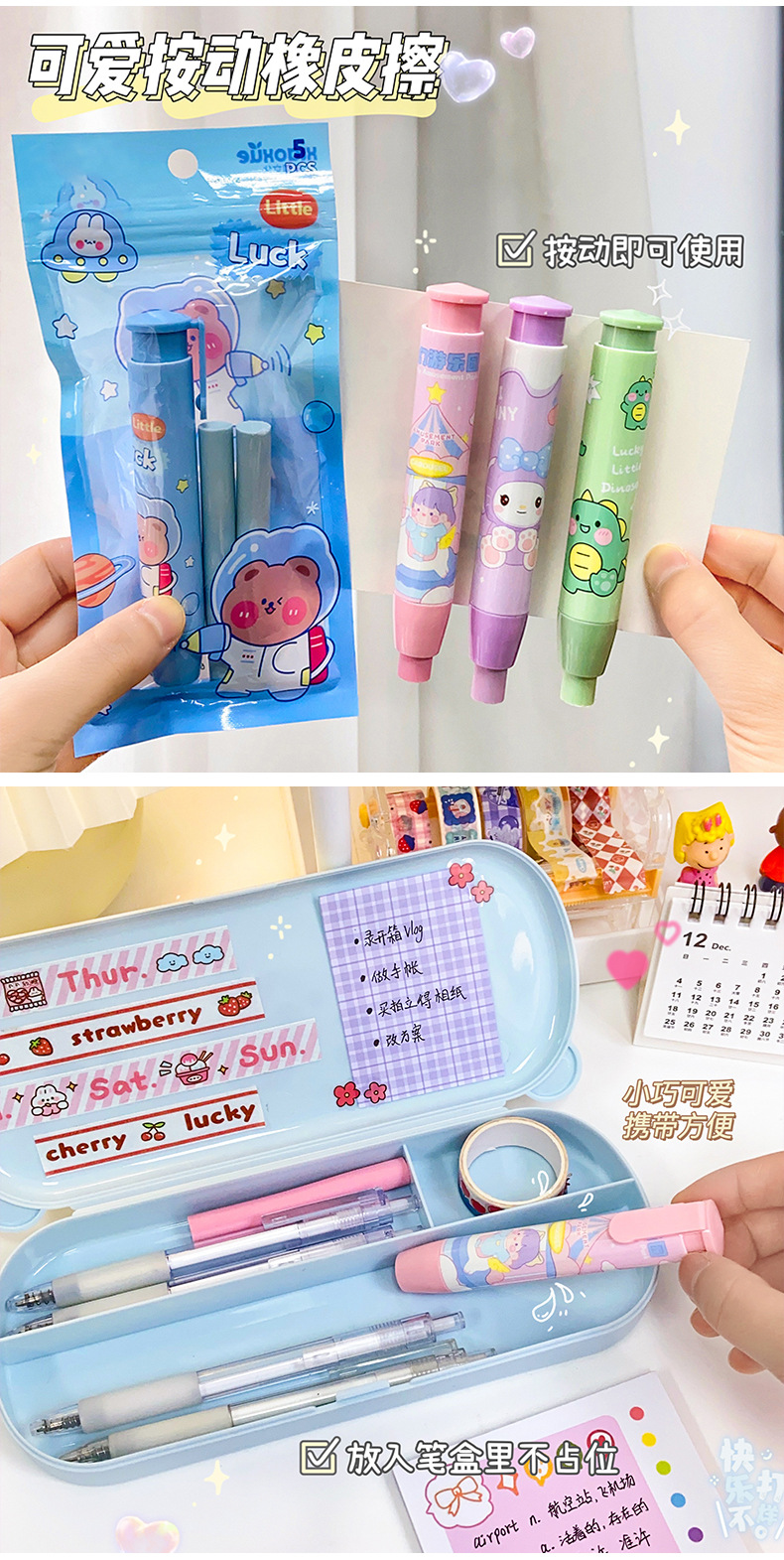 创意新款按动橡皮擦卡通可爱像皮擦文具奖品美术生专用素描橡皮擦