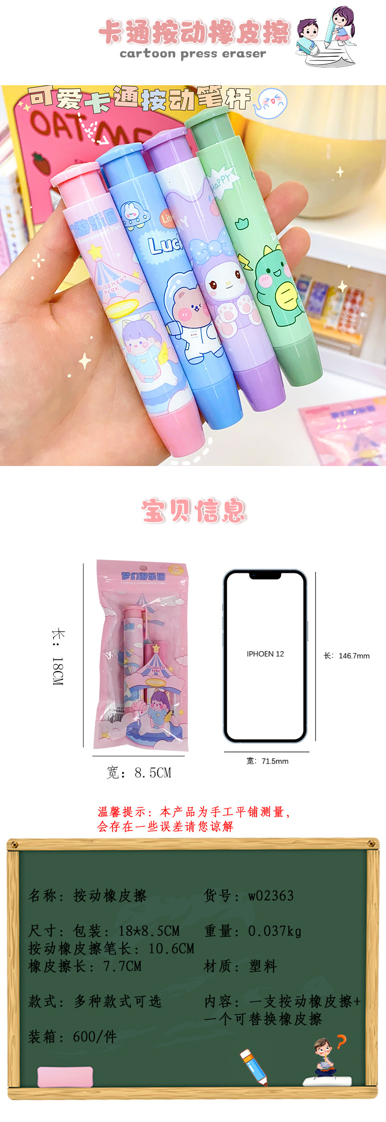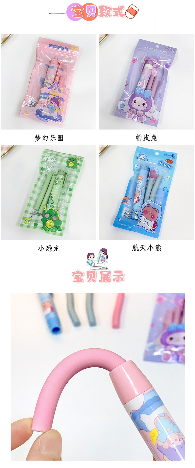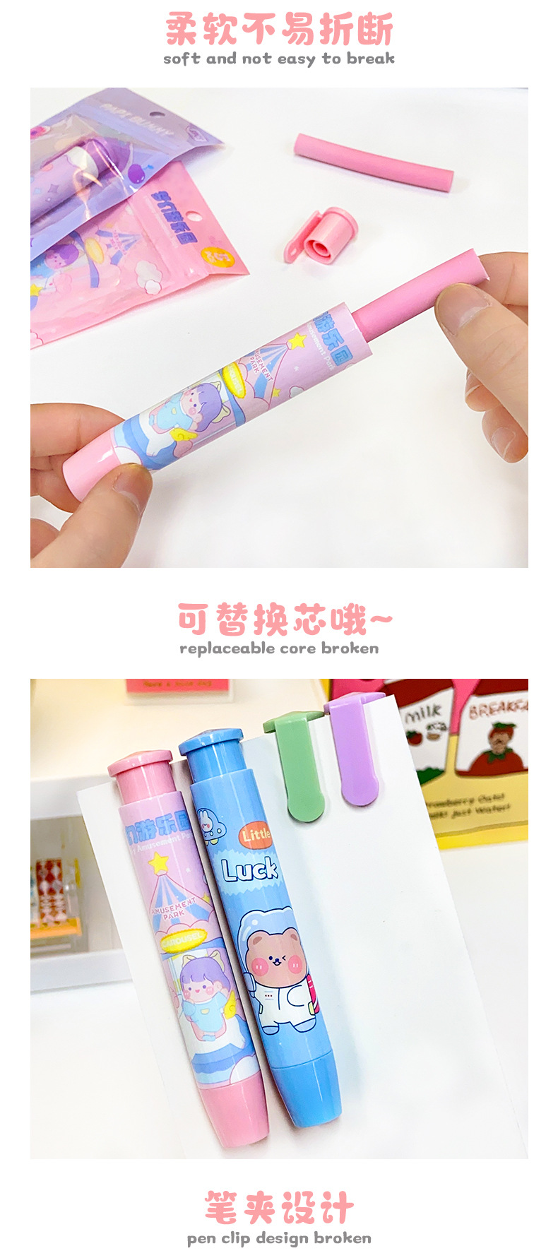 创意新款按动橡皮擦卡通可爱像皮擦文具奖品美术生专用素描橡皮擦