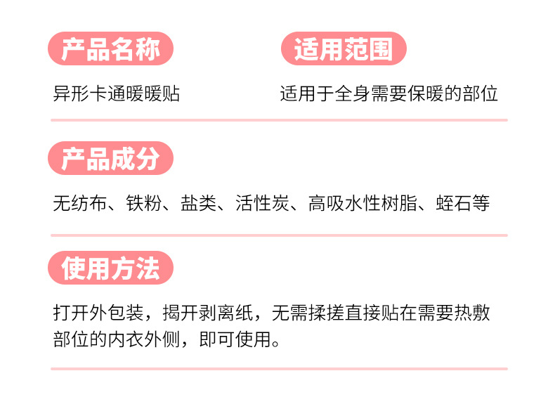 冬季新款异形暖贴可爱印花暖宝宝贴 保暖自发热女生暖足贴暖身贴