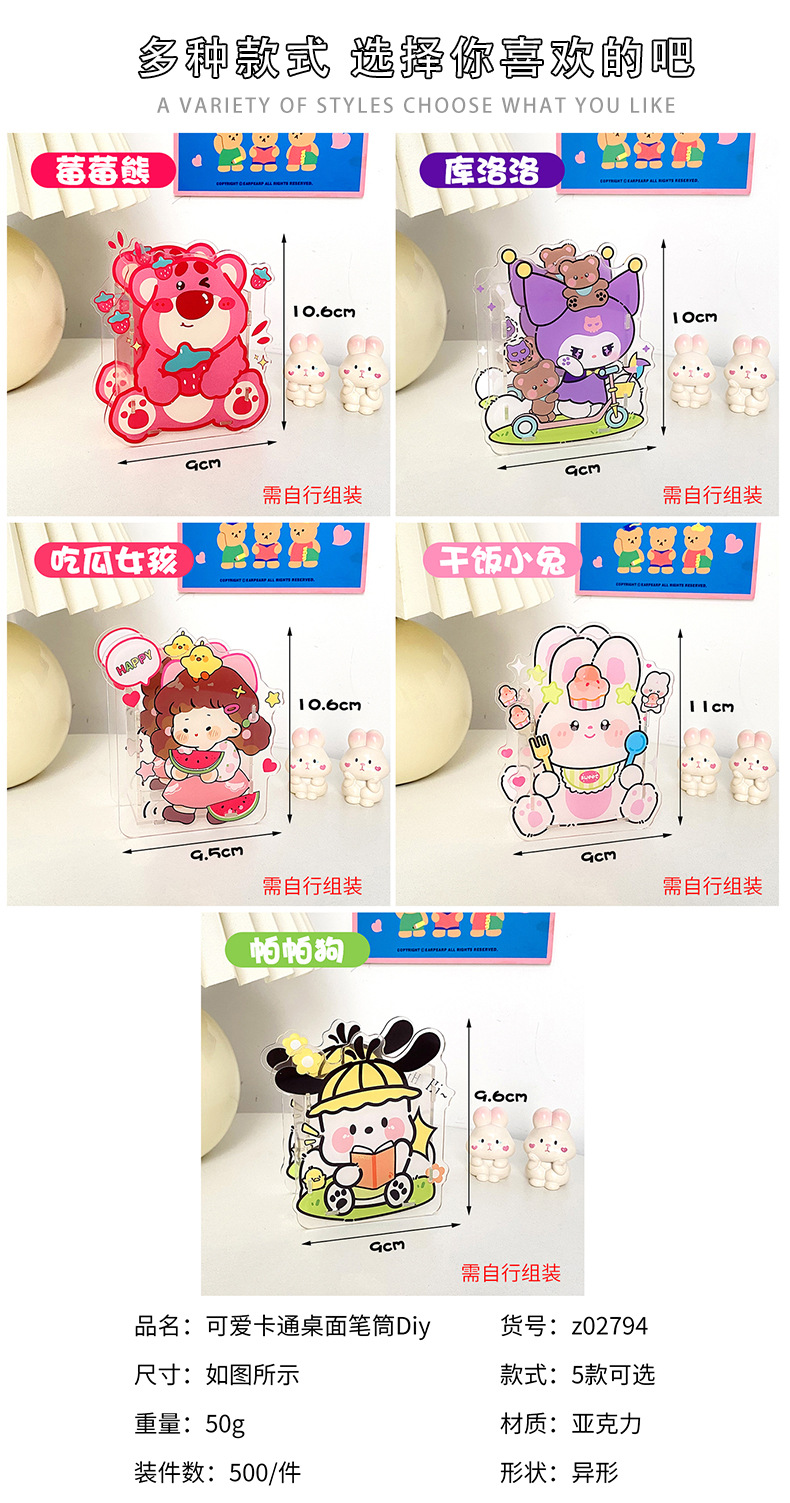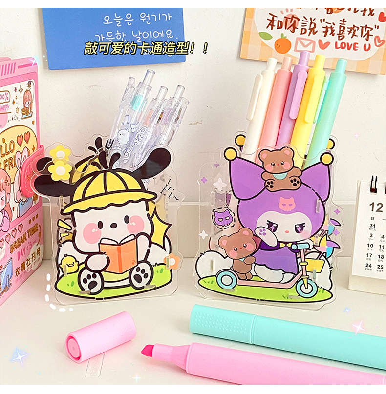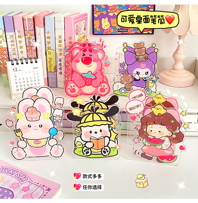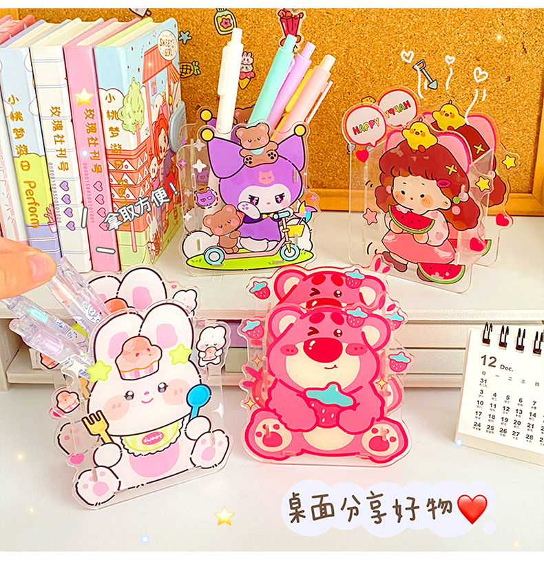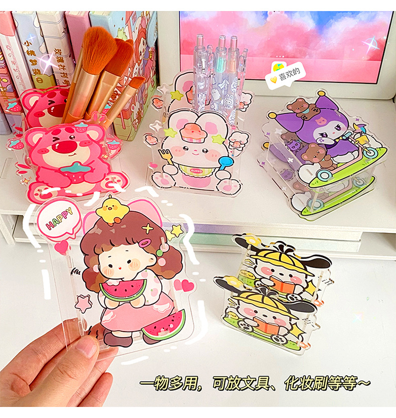 可爱卡通ins亚克力笔筒 学生桌面文具收纳盒 创意diy时尚笔桶摆件