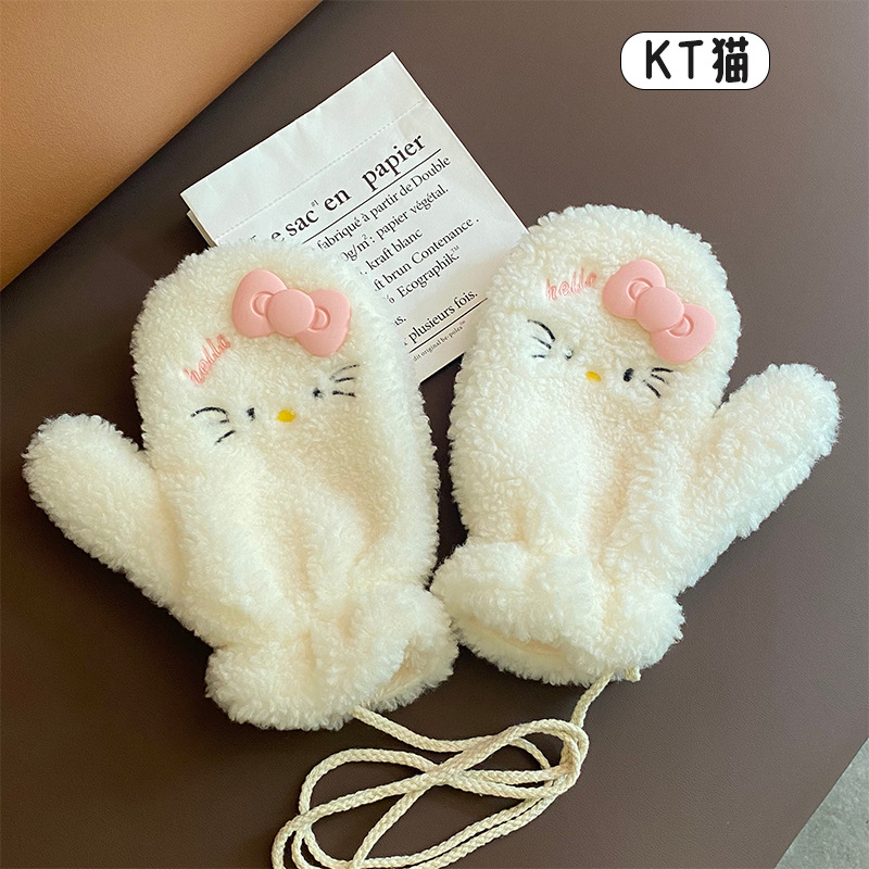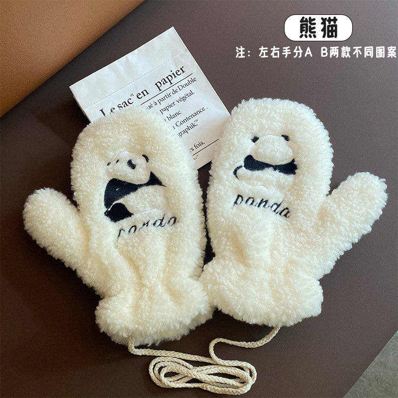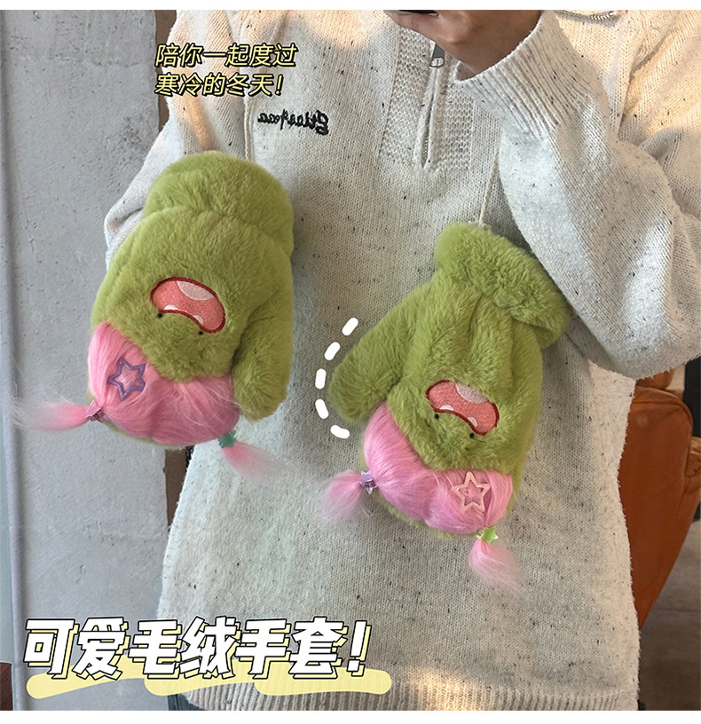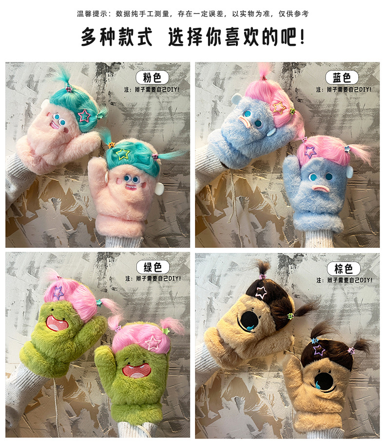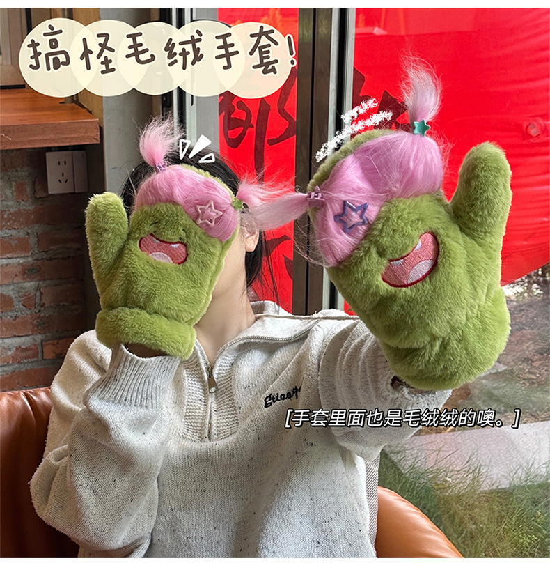 ins风卡通可爱糖果色五指手套搞怪丑娃珊瑚绒冬款保暖骑行手套女